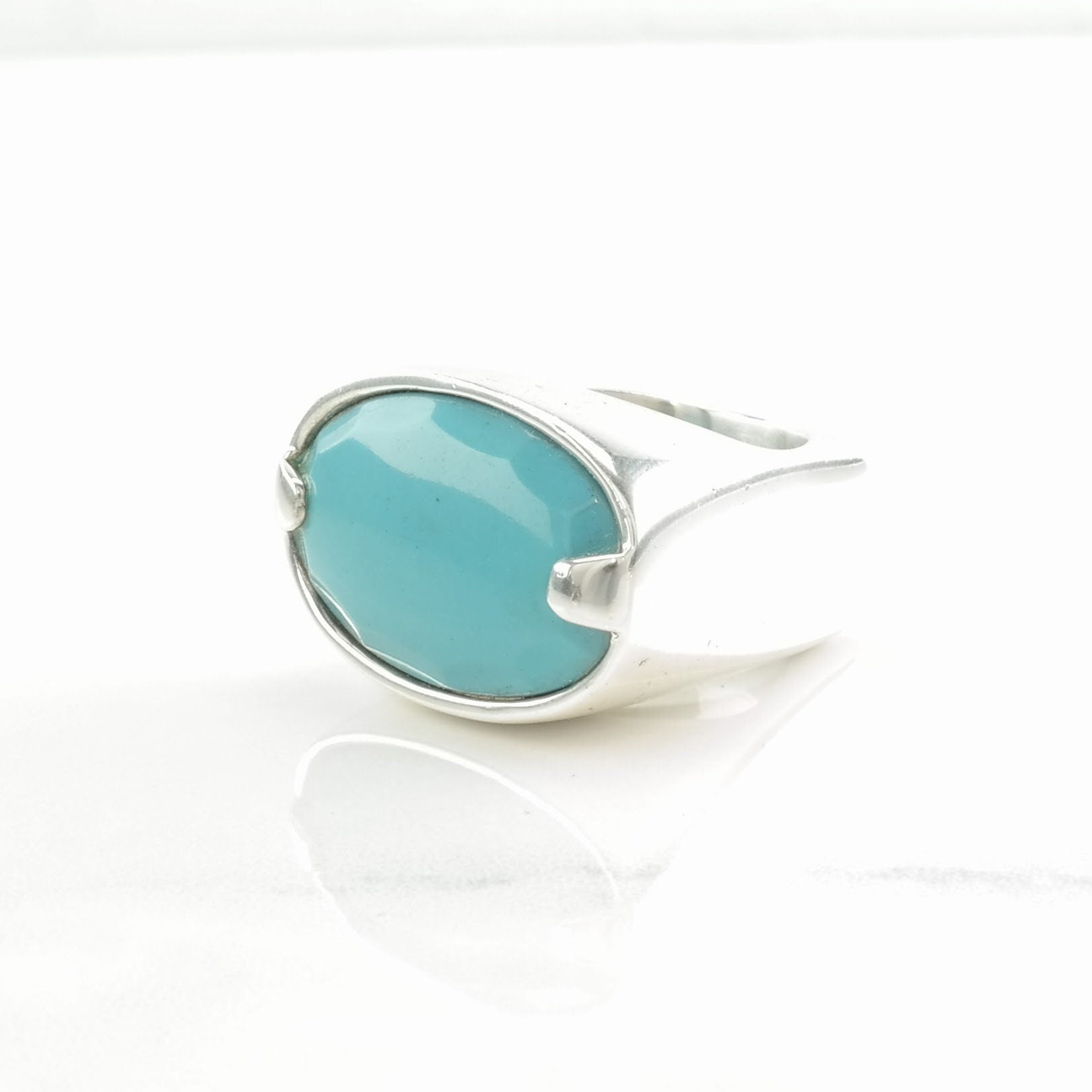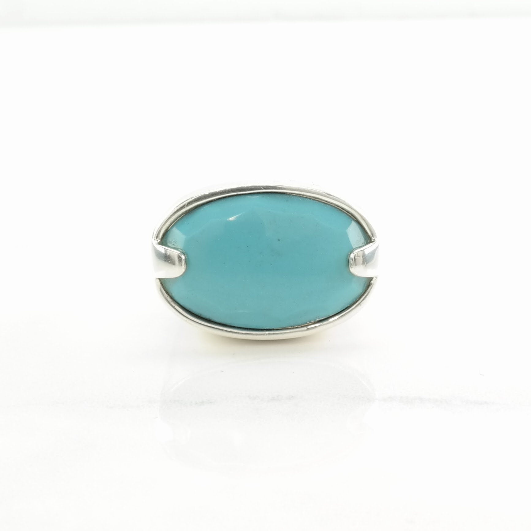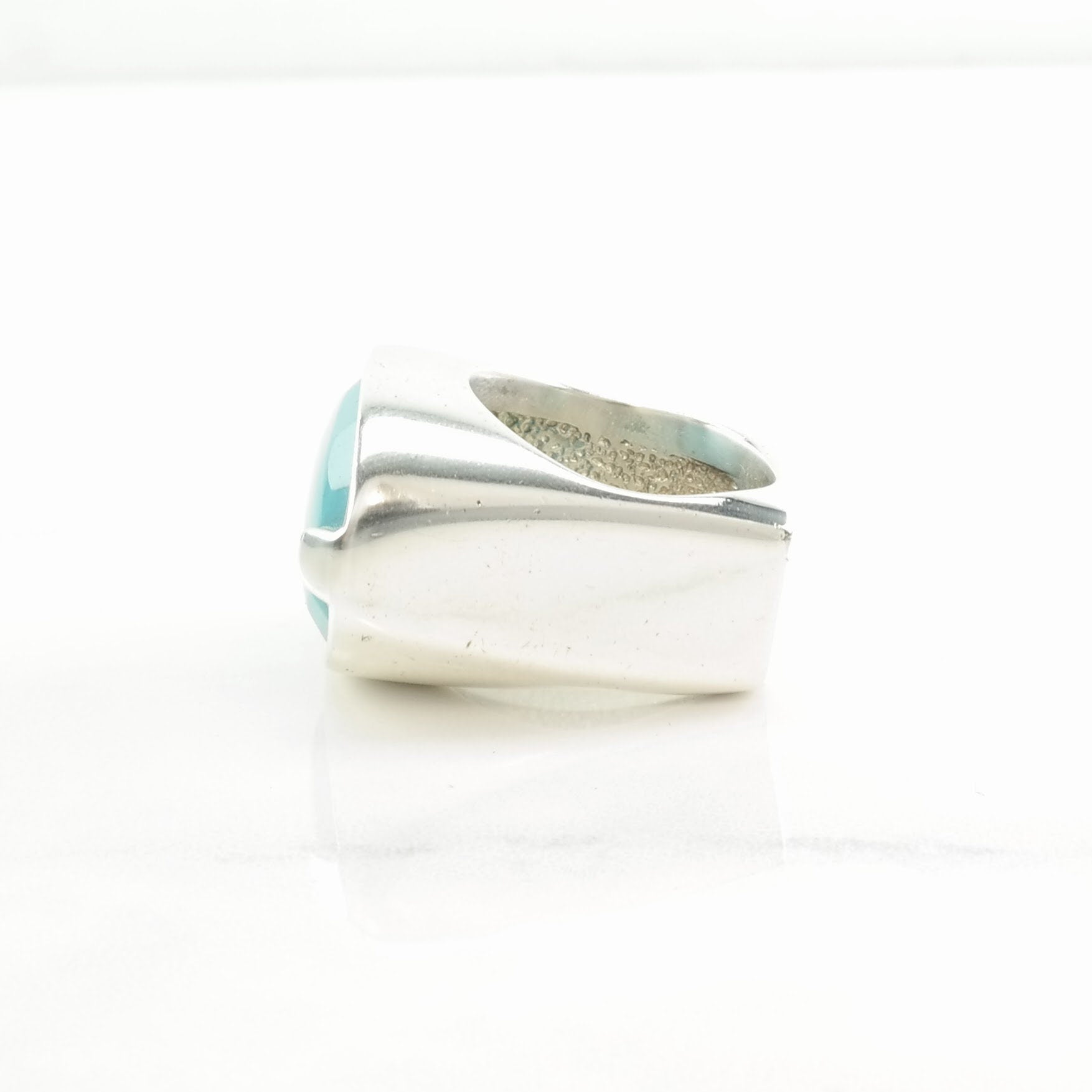 Vintage Heavy, Designer Silver Ring Created Turquoise Square Band Sterling Blue Size 7 1/2