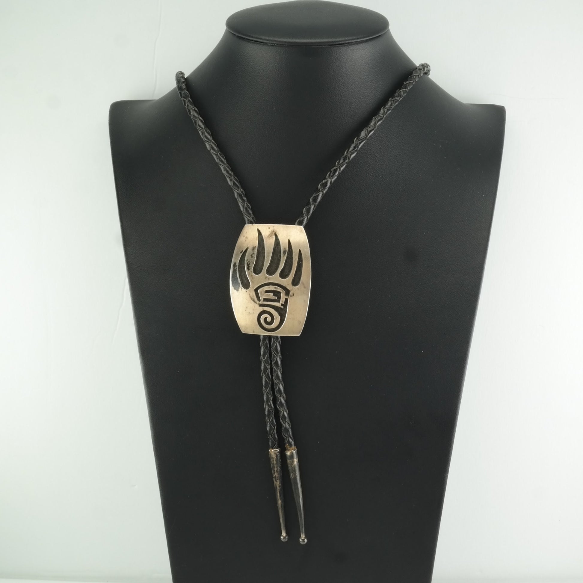 Vintage Hopi, Native American Sterling Silver Overlay Bear Claw Necklace