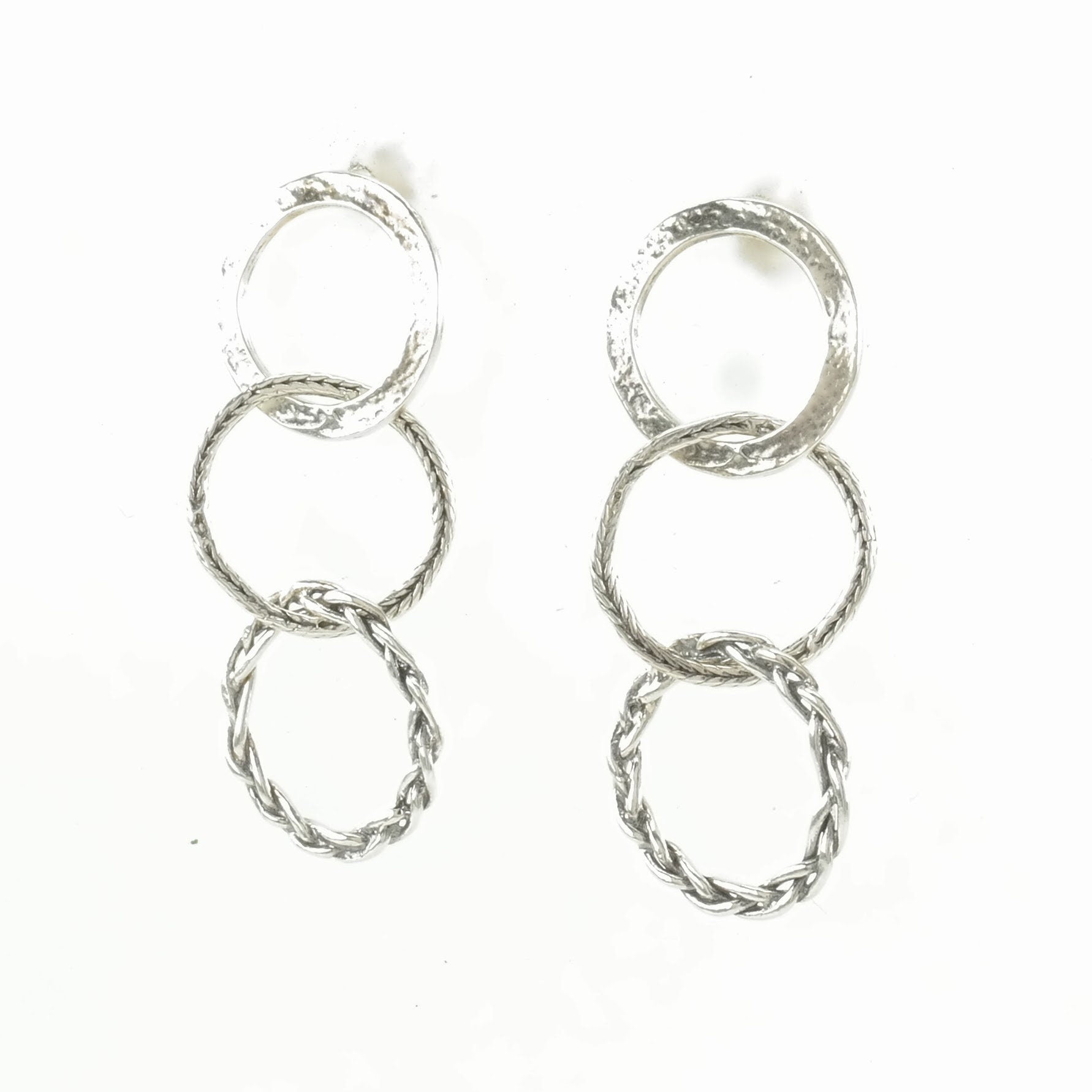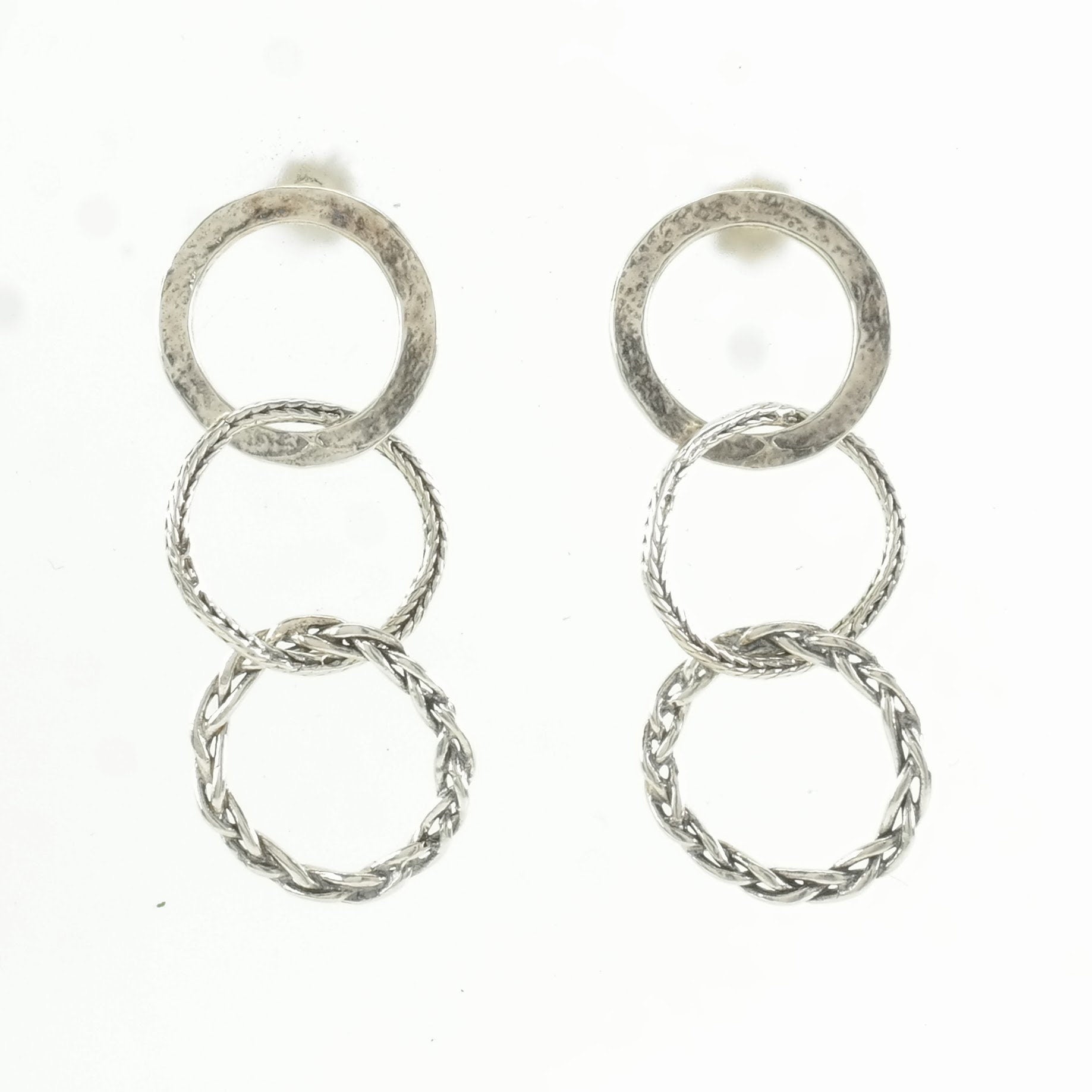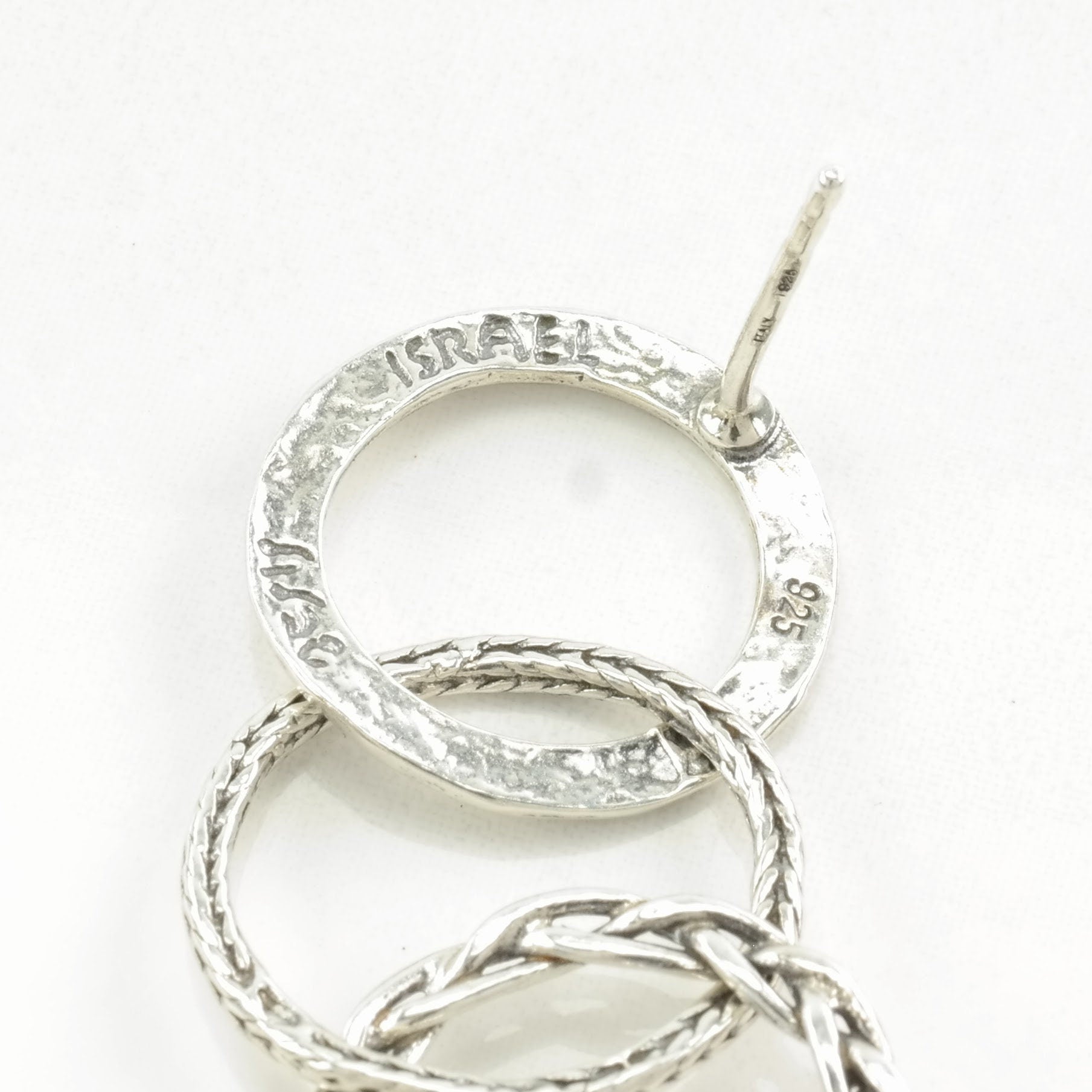Vintage Israel Interlocking Hoops Sterling Silver Stud Dangle Earrings
