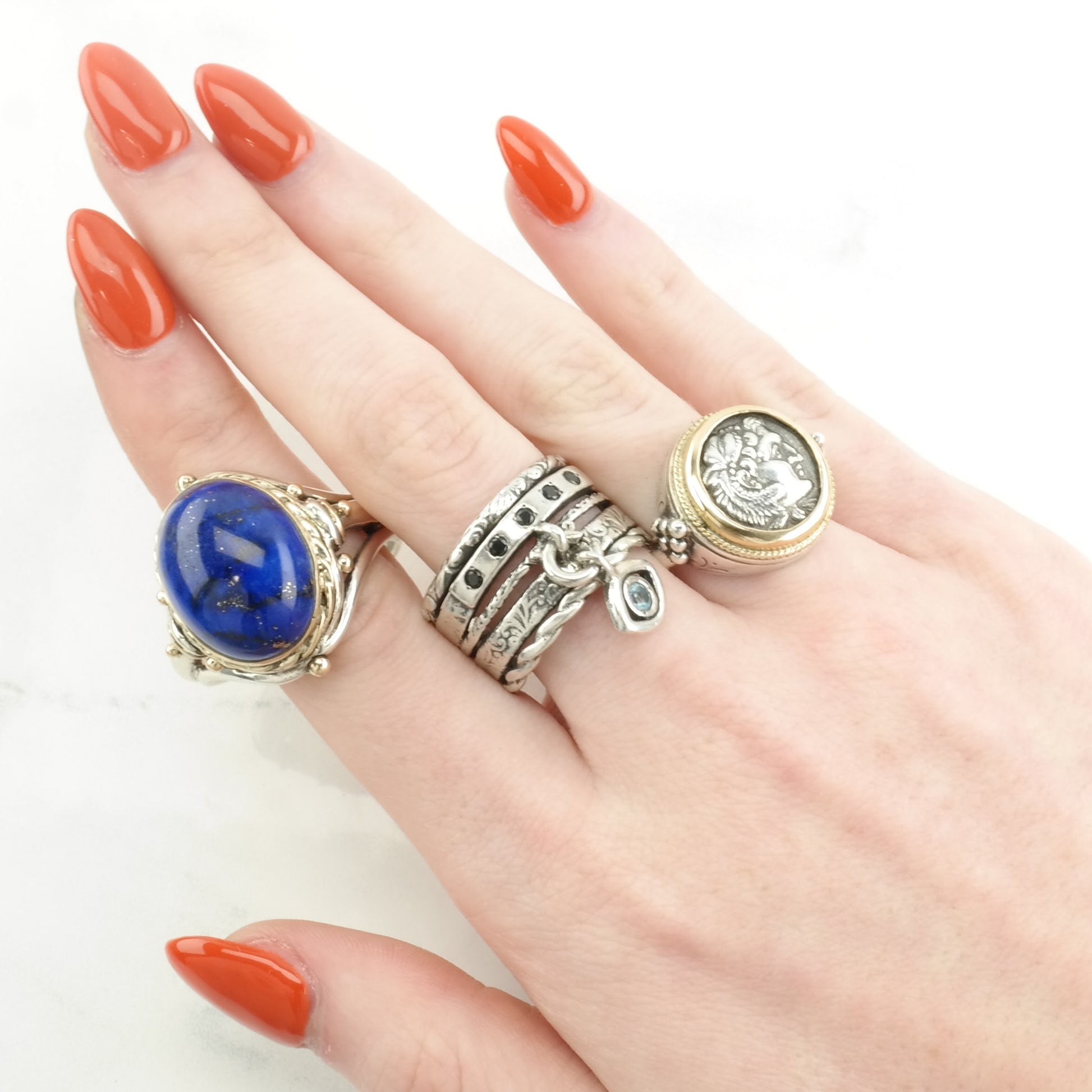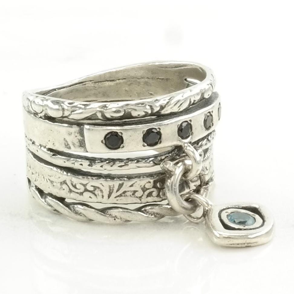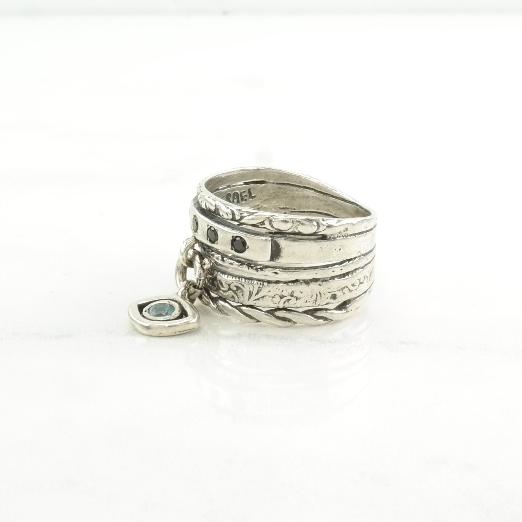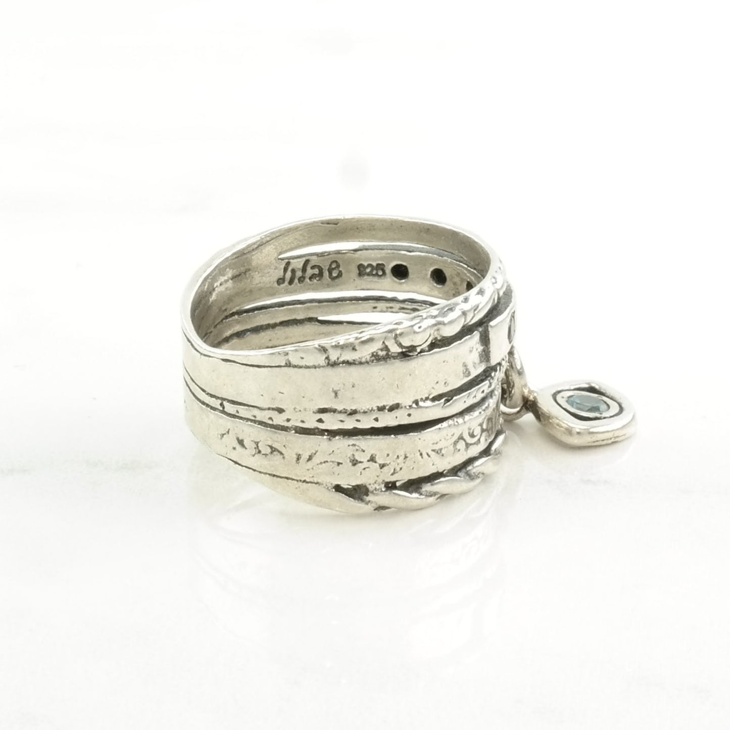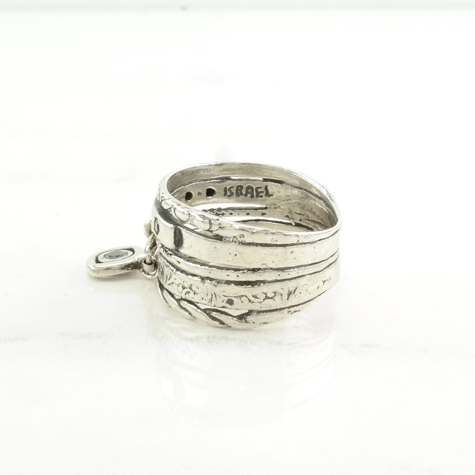 Vintage Israel Silver Ring Topaz, Evil Eye Removeable Hanging Charm Sterling Blue Size 9 1/4