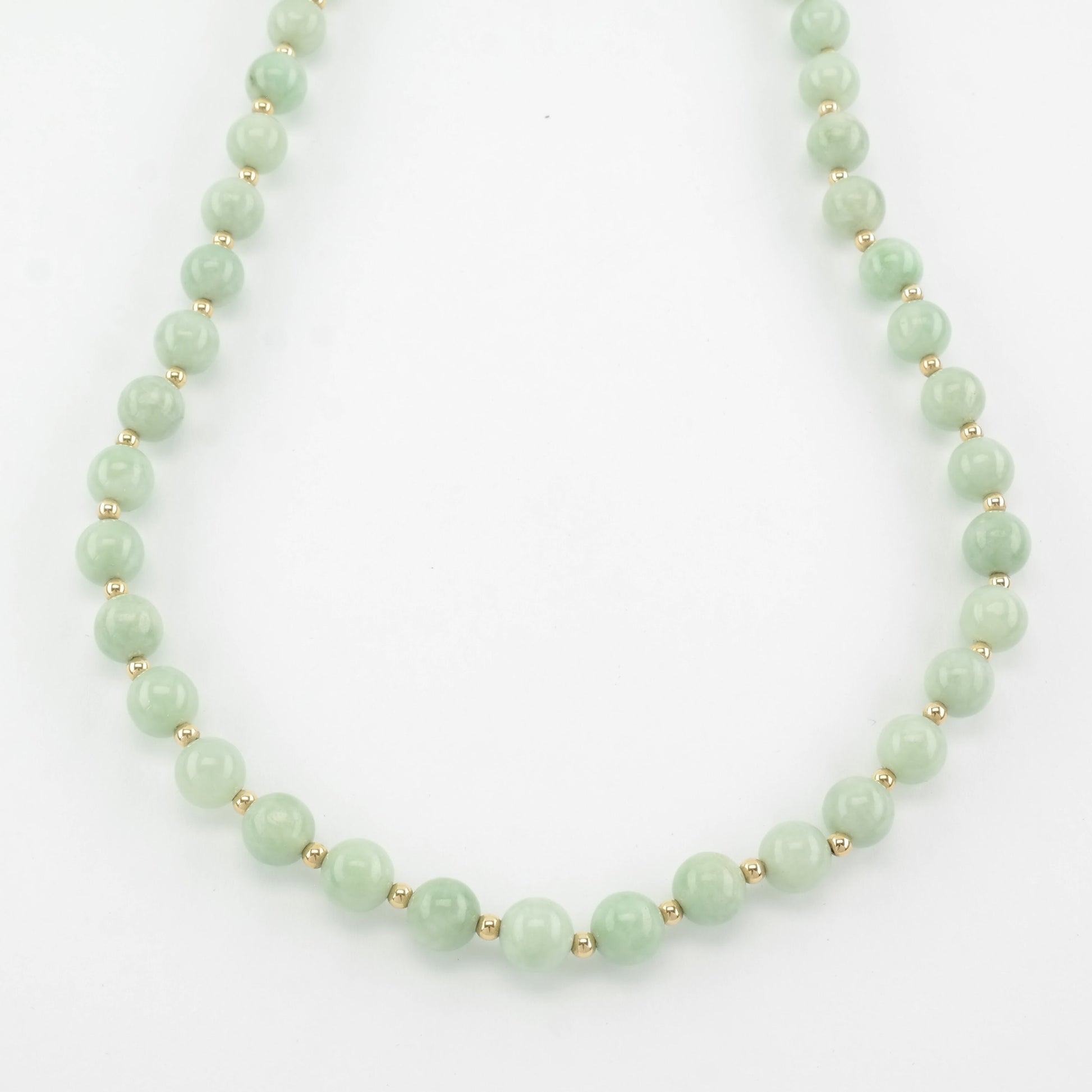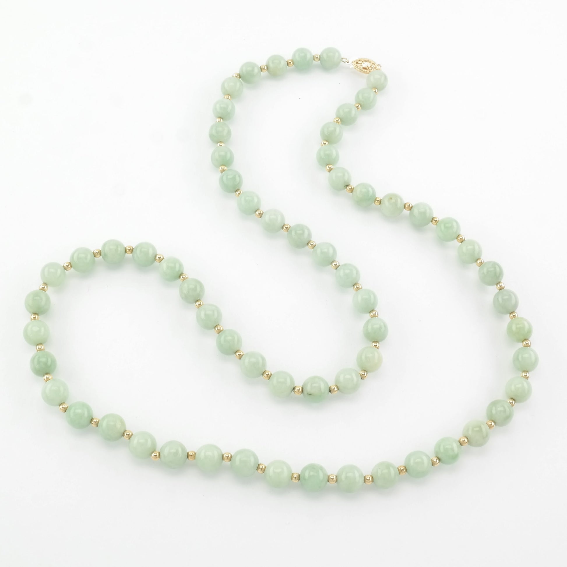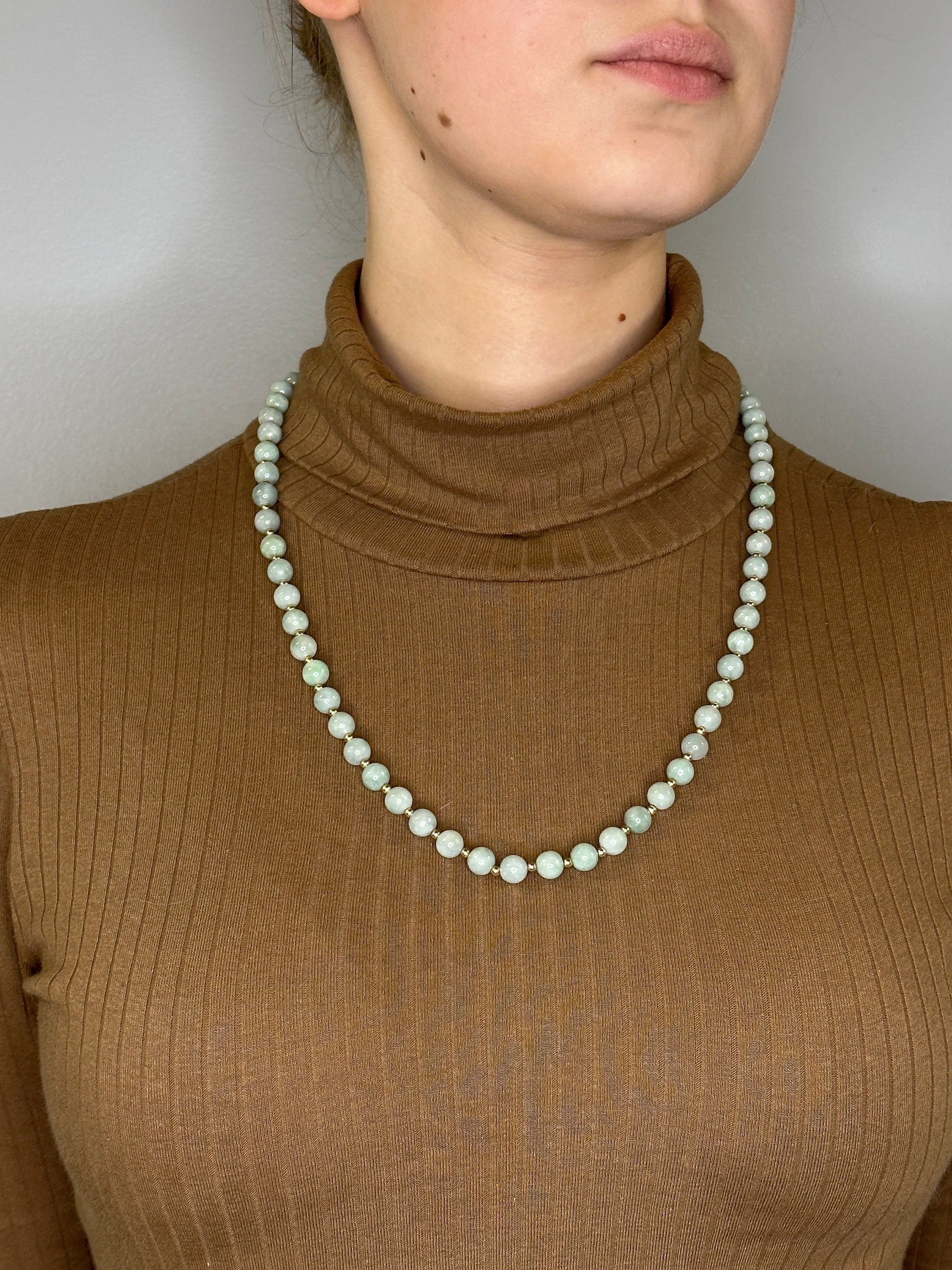 Vintage Green Jade 8mm, Bead, 14K Gold Necklace