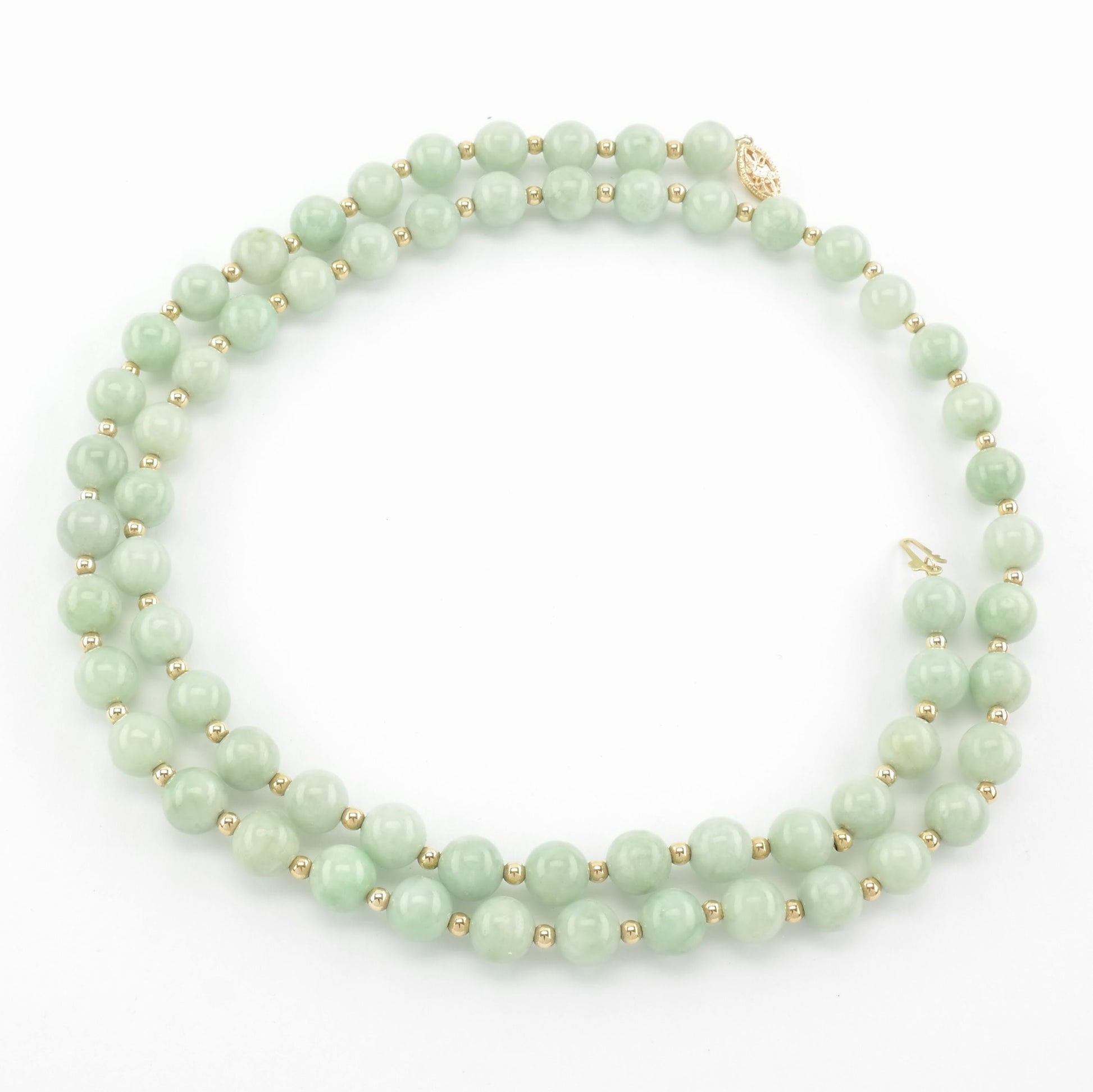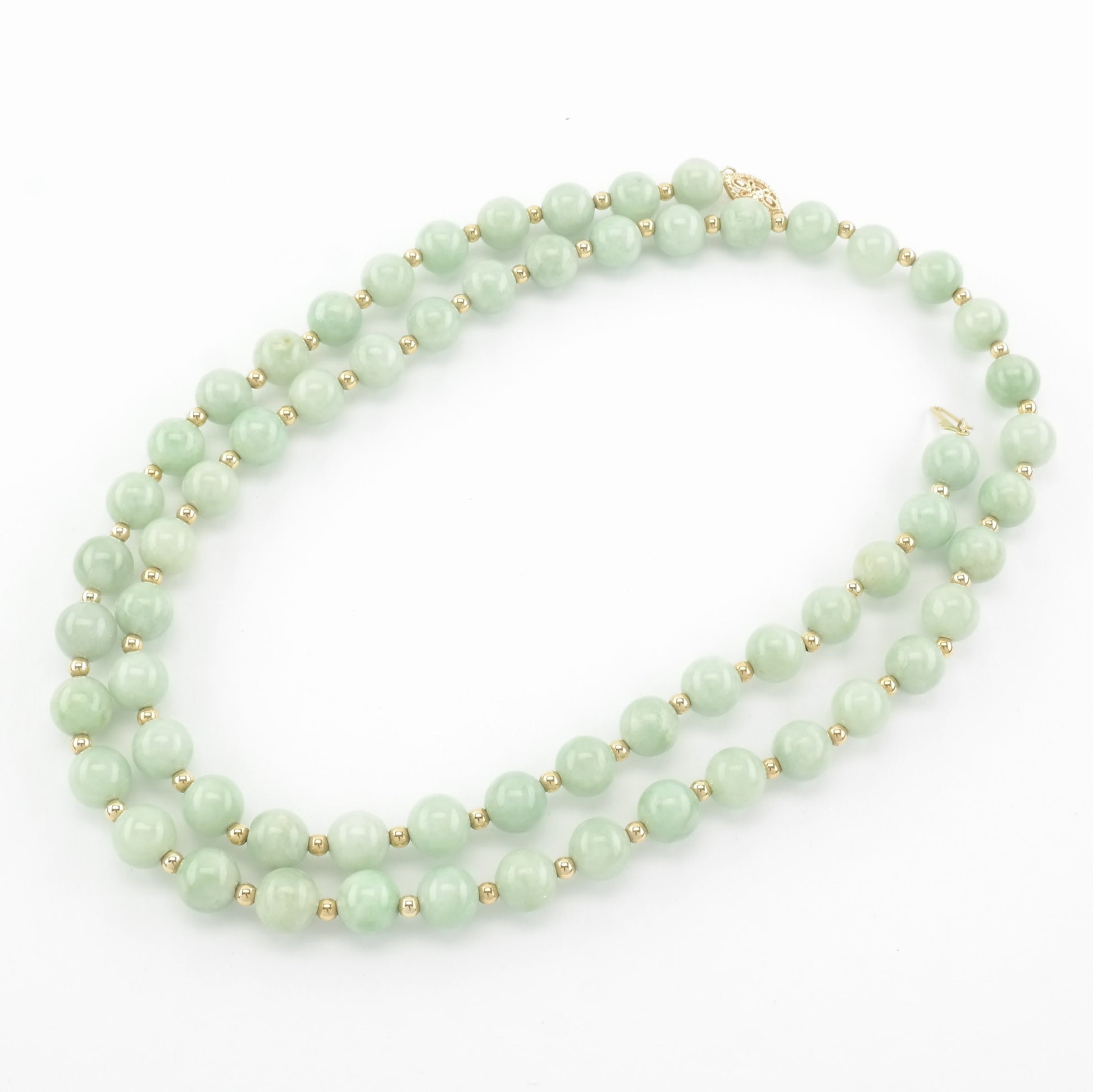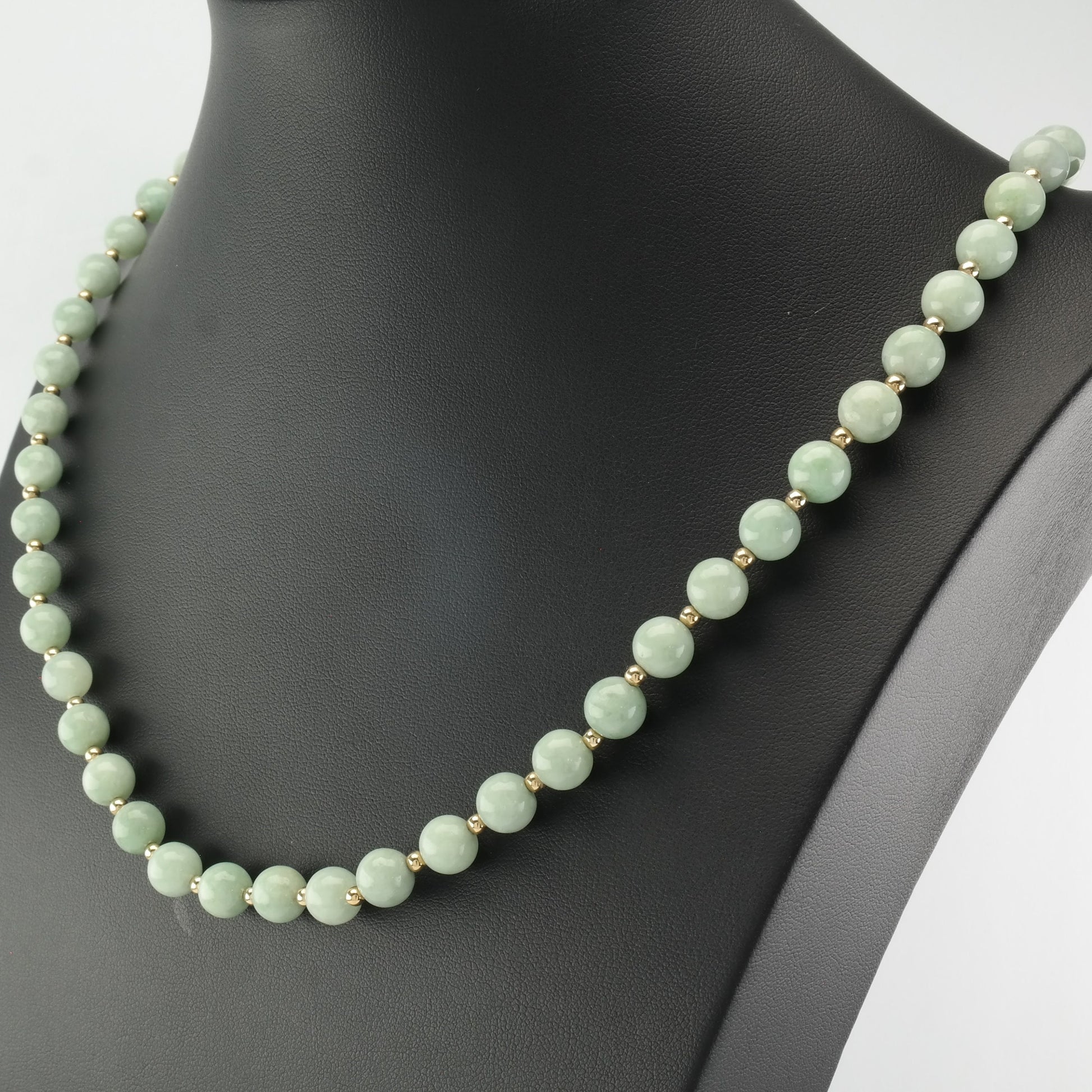 Vintage Green Jade 8mm, Bead, 14K Gold Necklace
