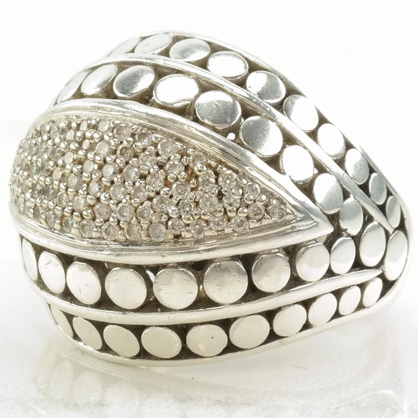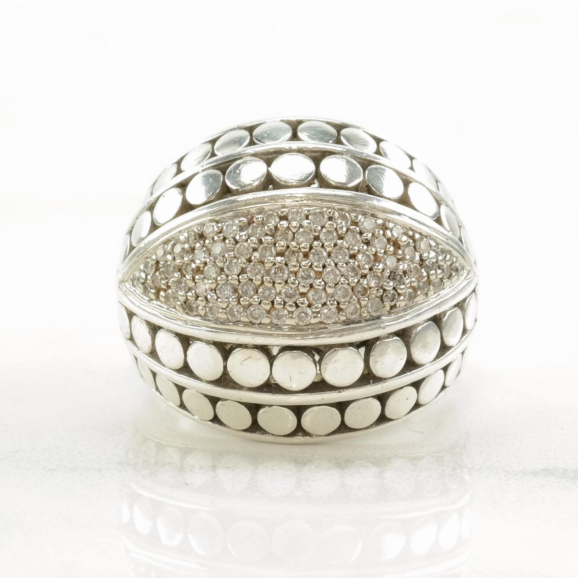 Vintage John Hardy Silver Ring Pave Diamond 18K Gold Sterling Size 7