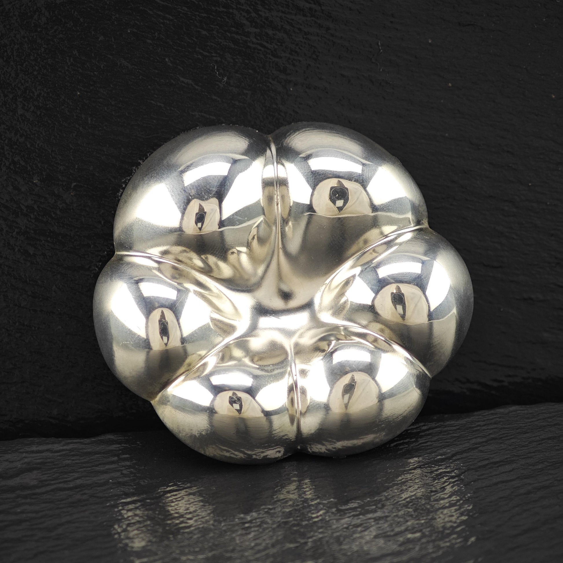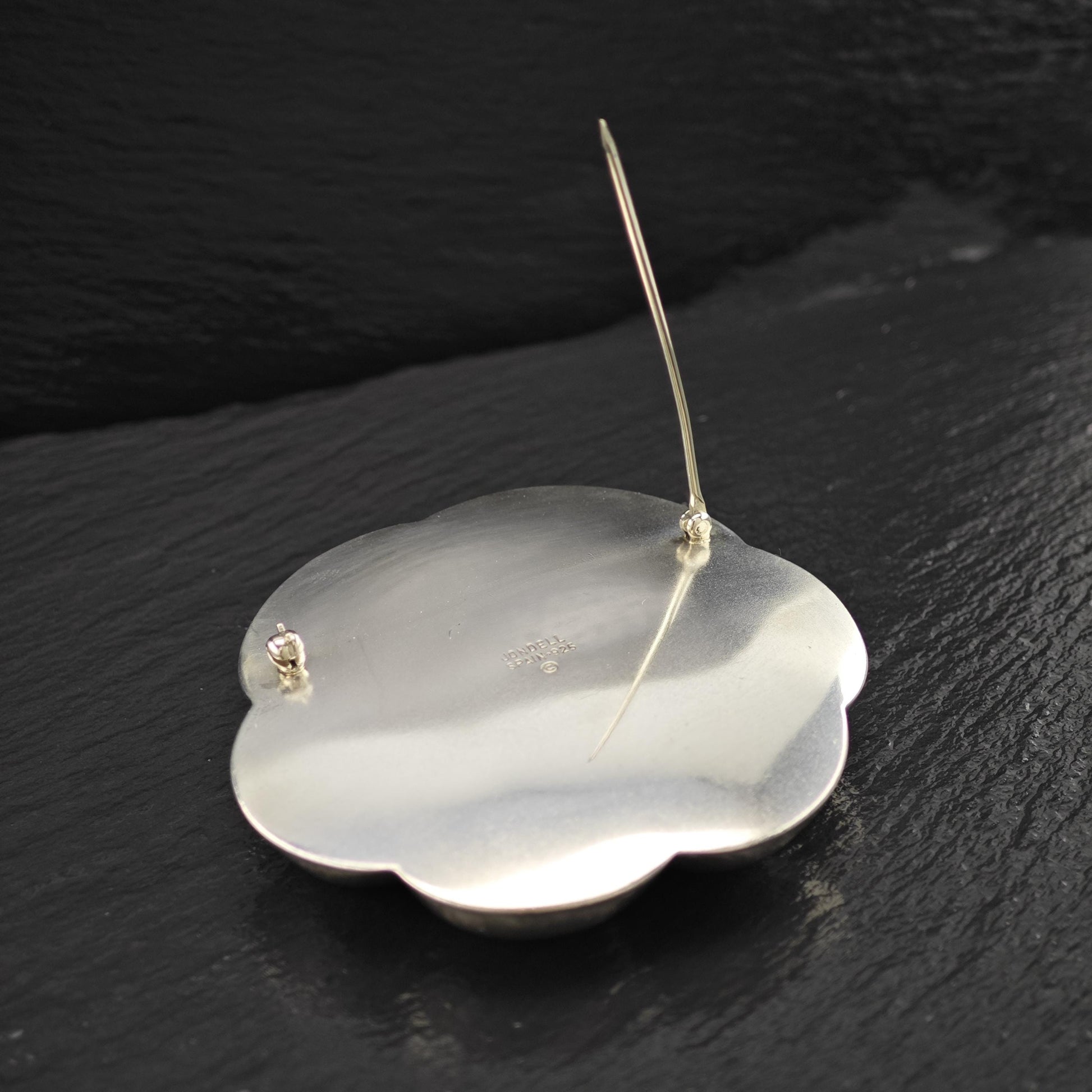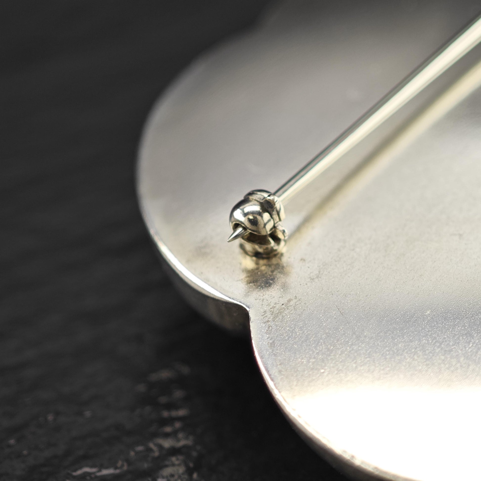 Please note that color variations in photos are due to reflections; the brooch displays a beautiful, even silver tone in person.