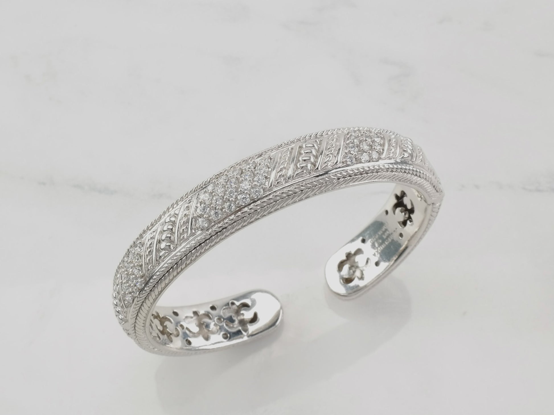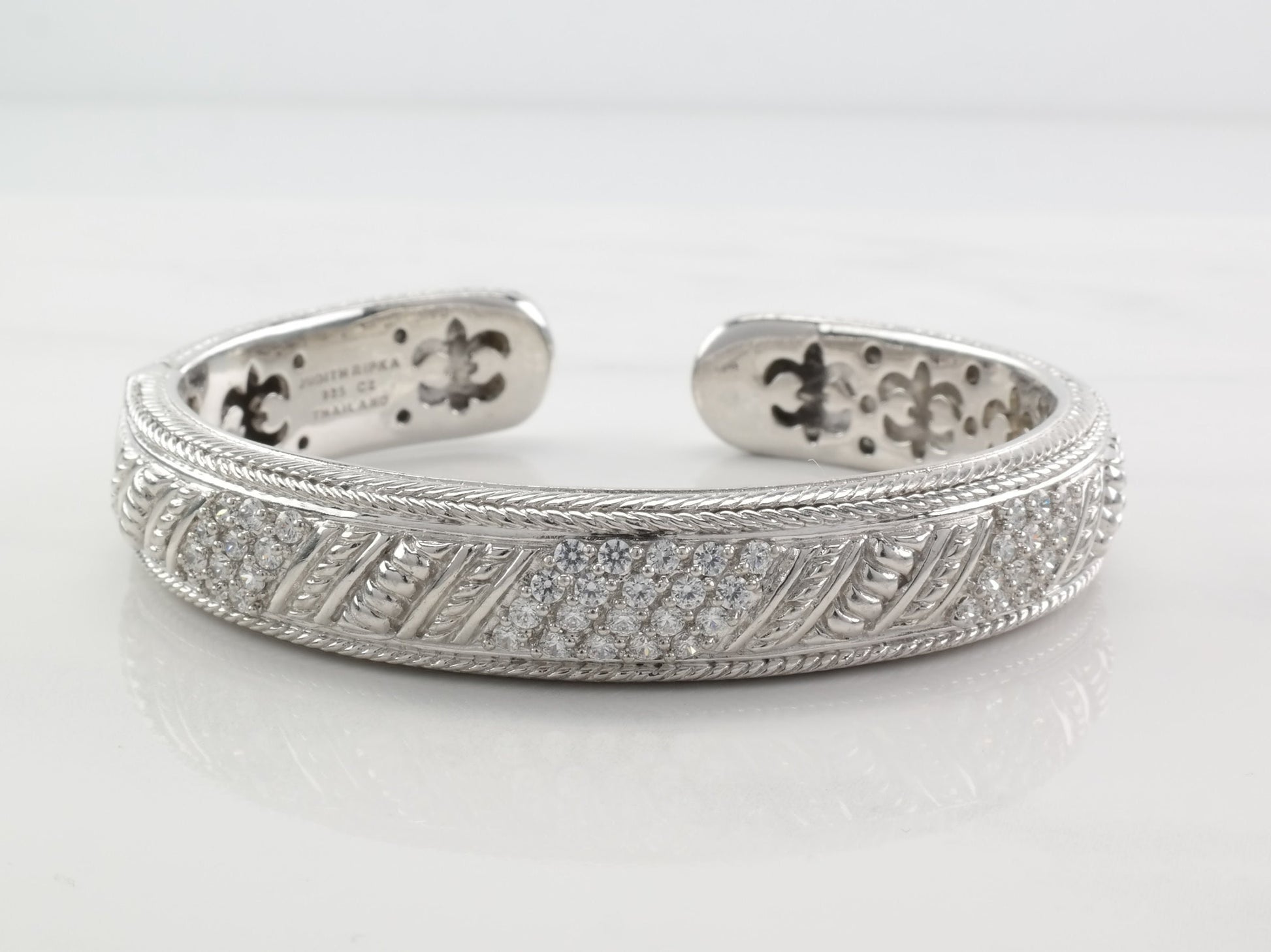 Vintage Judith Ripka Sterling Silver Cuff Bracelet CZ