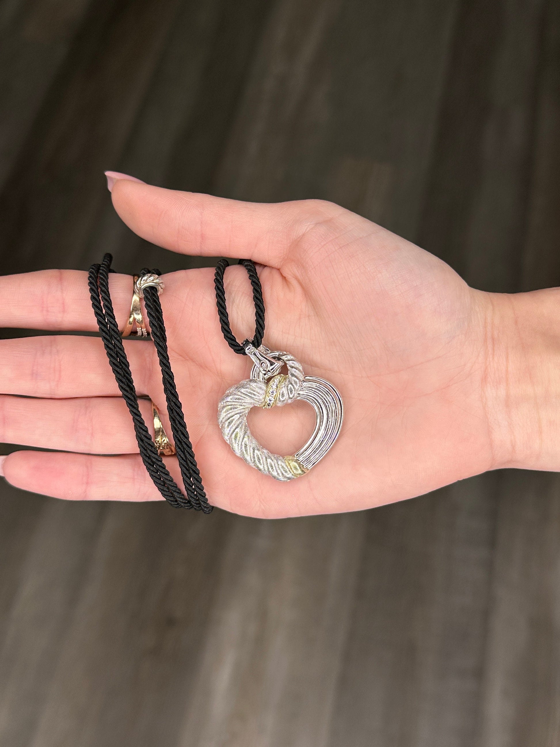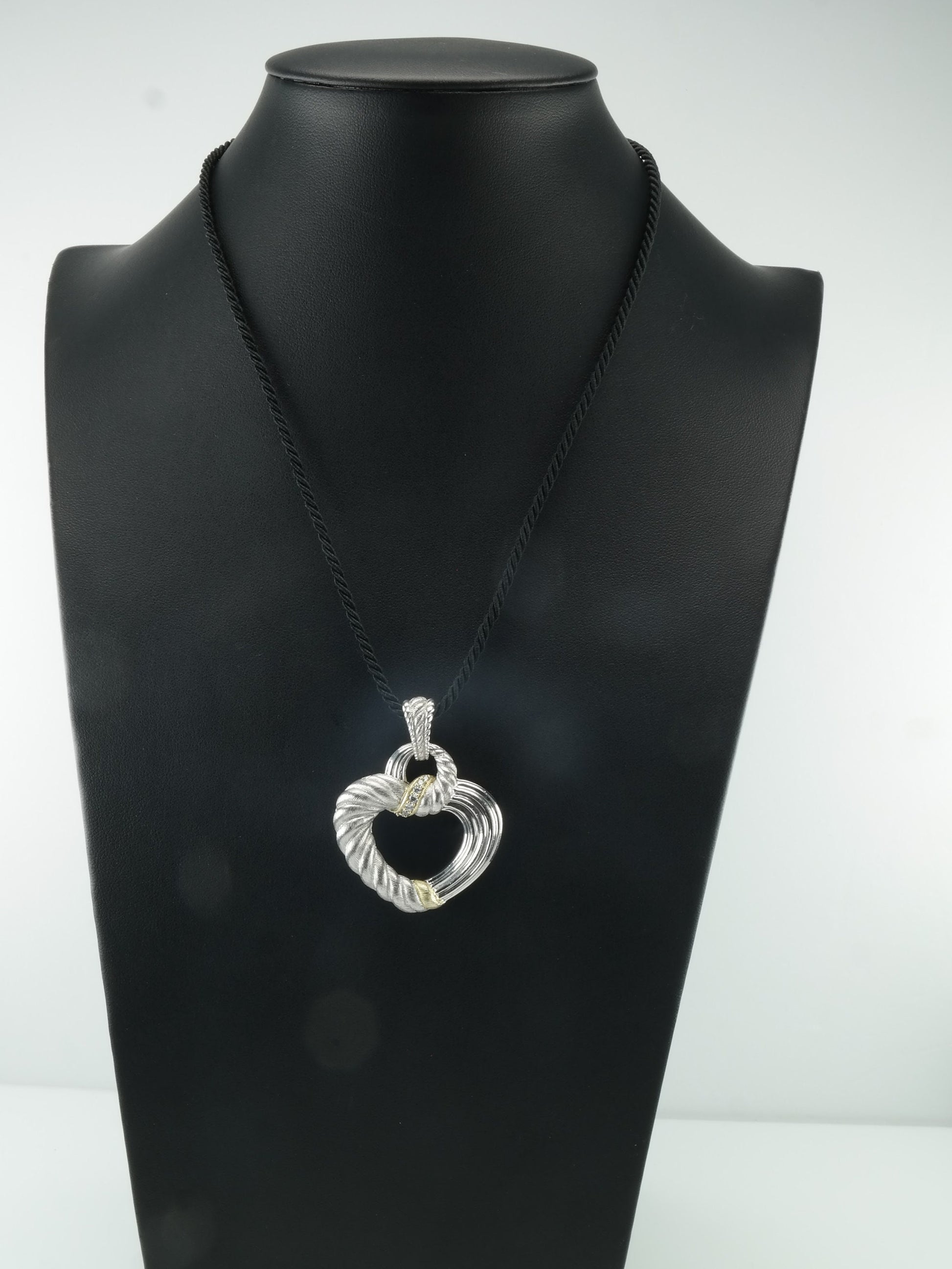 Vintage Judith Ripka Sterling Silver White CZ Heart Necklace