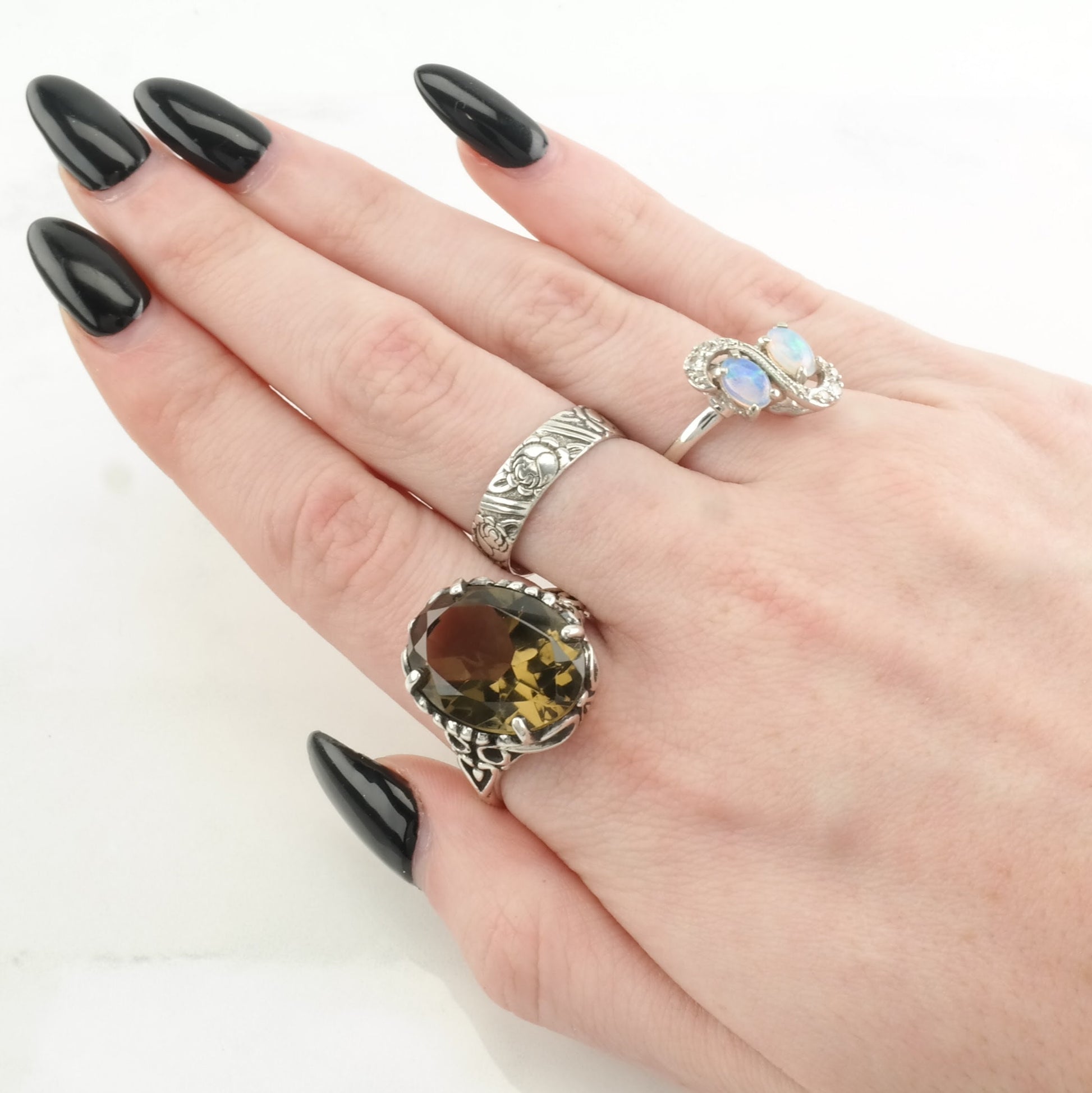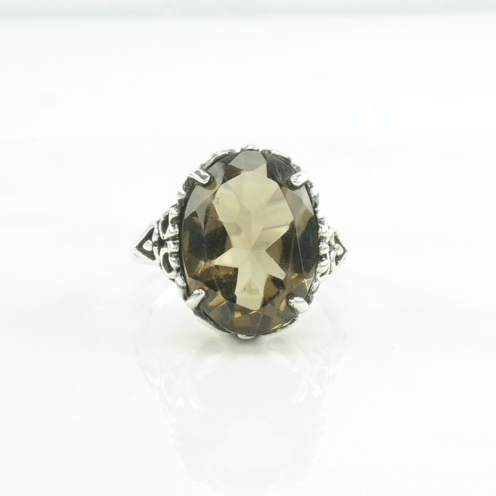 Vintage Kabana Silver Ring Smokey Quartz Sterling Size 10 1/4