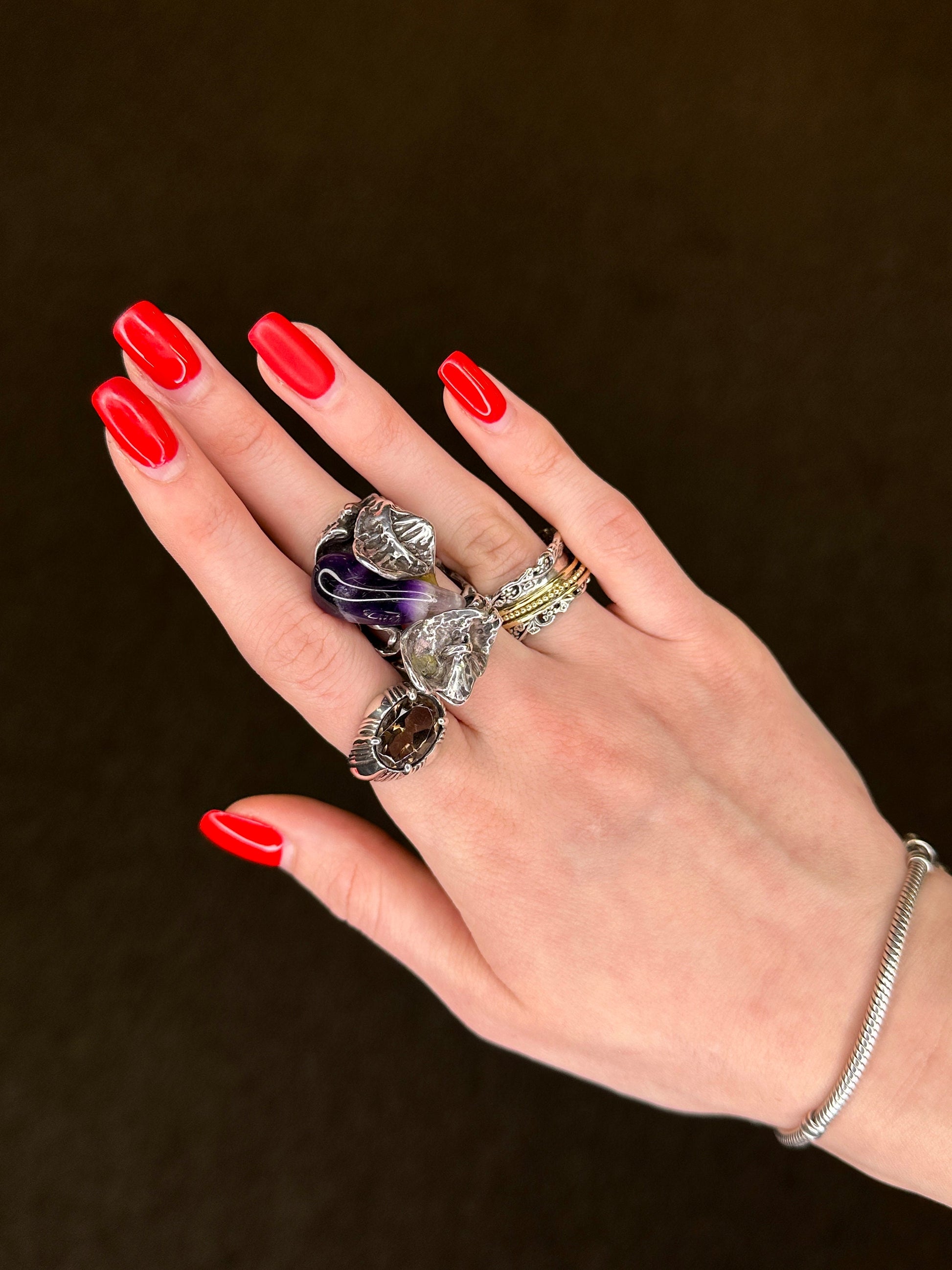 Vintage Kabana Silver Ring Smoky Quartz Sterling Size 5 3/4