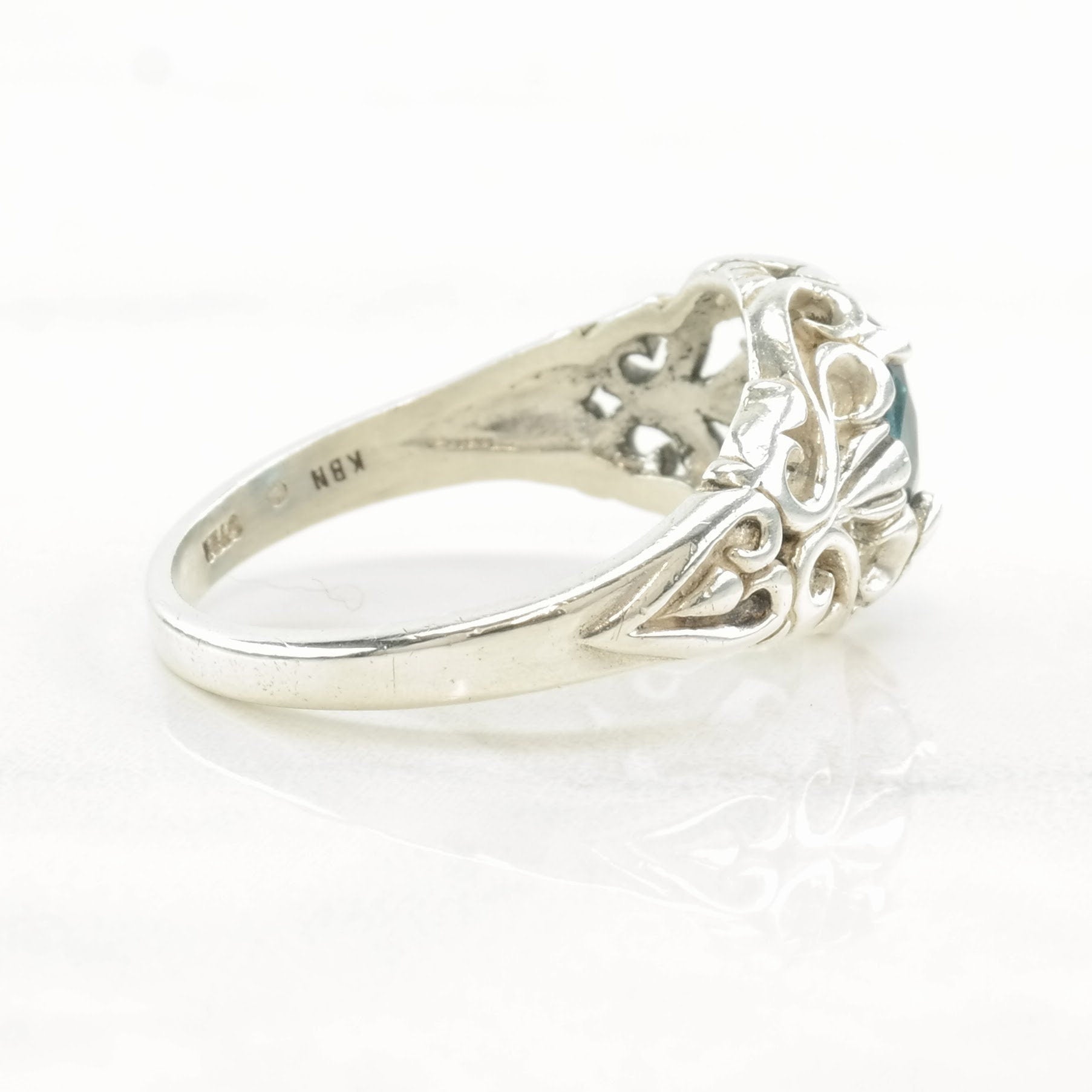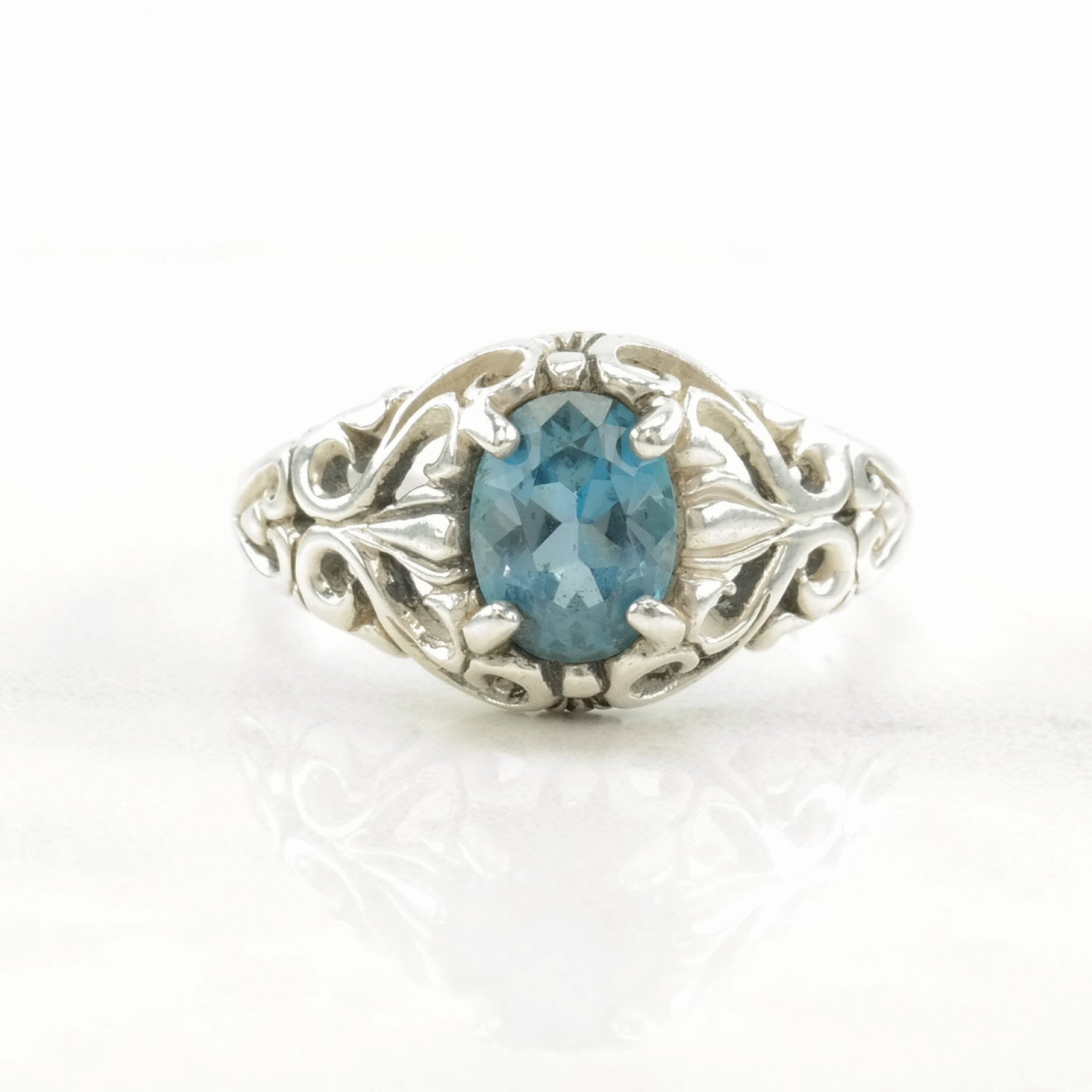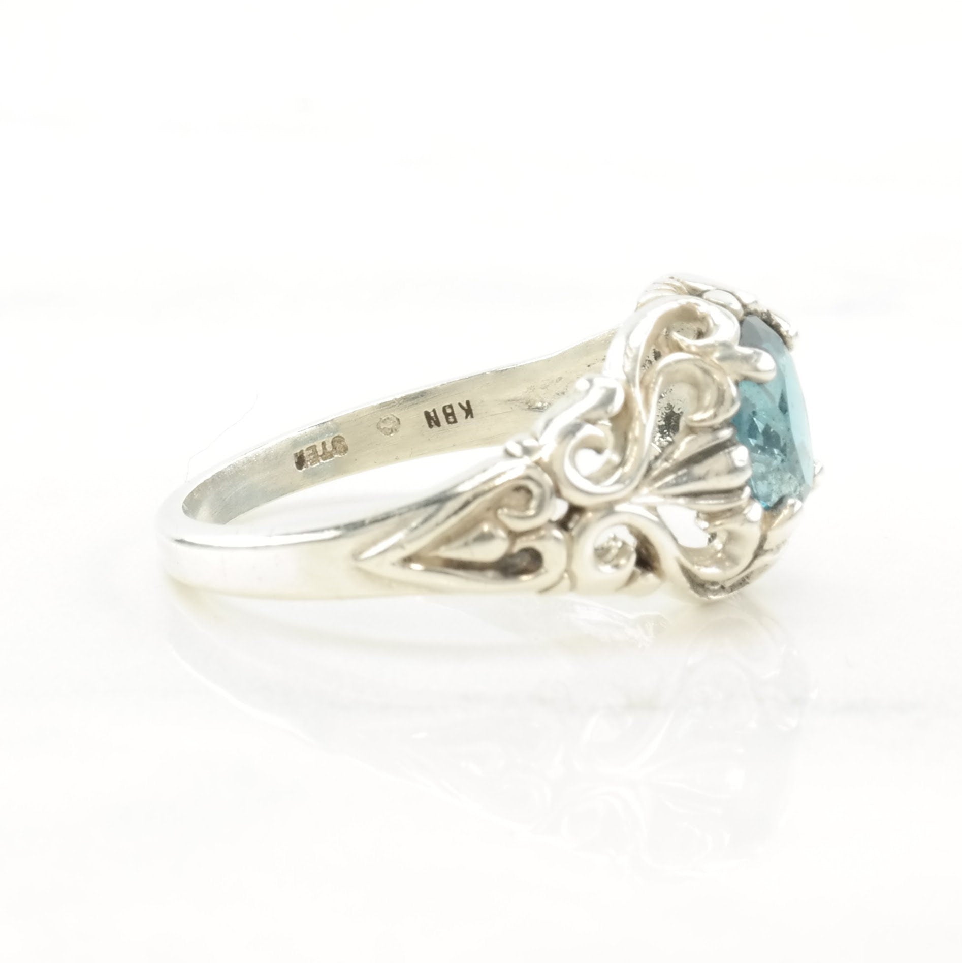Vintage Kabana Silver Ring Topaz Scroll Sterling Blue Size 8 1/4