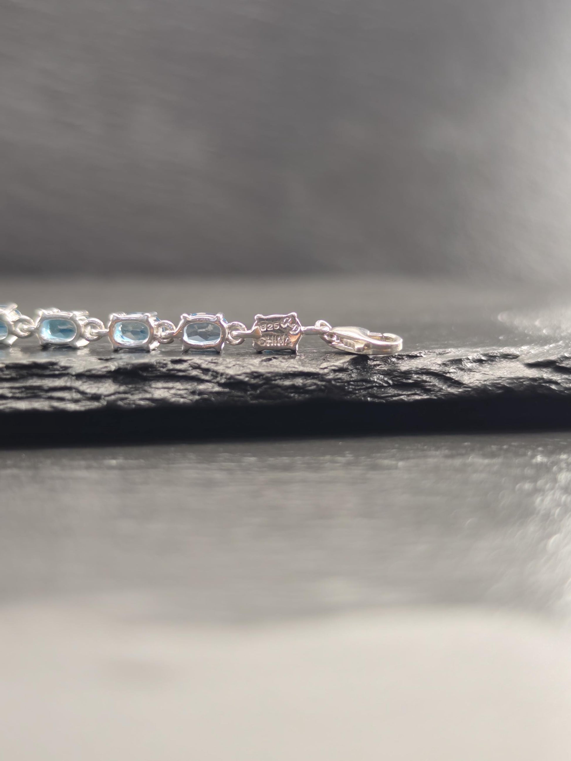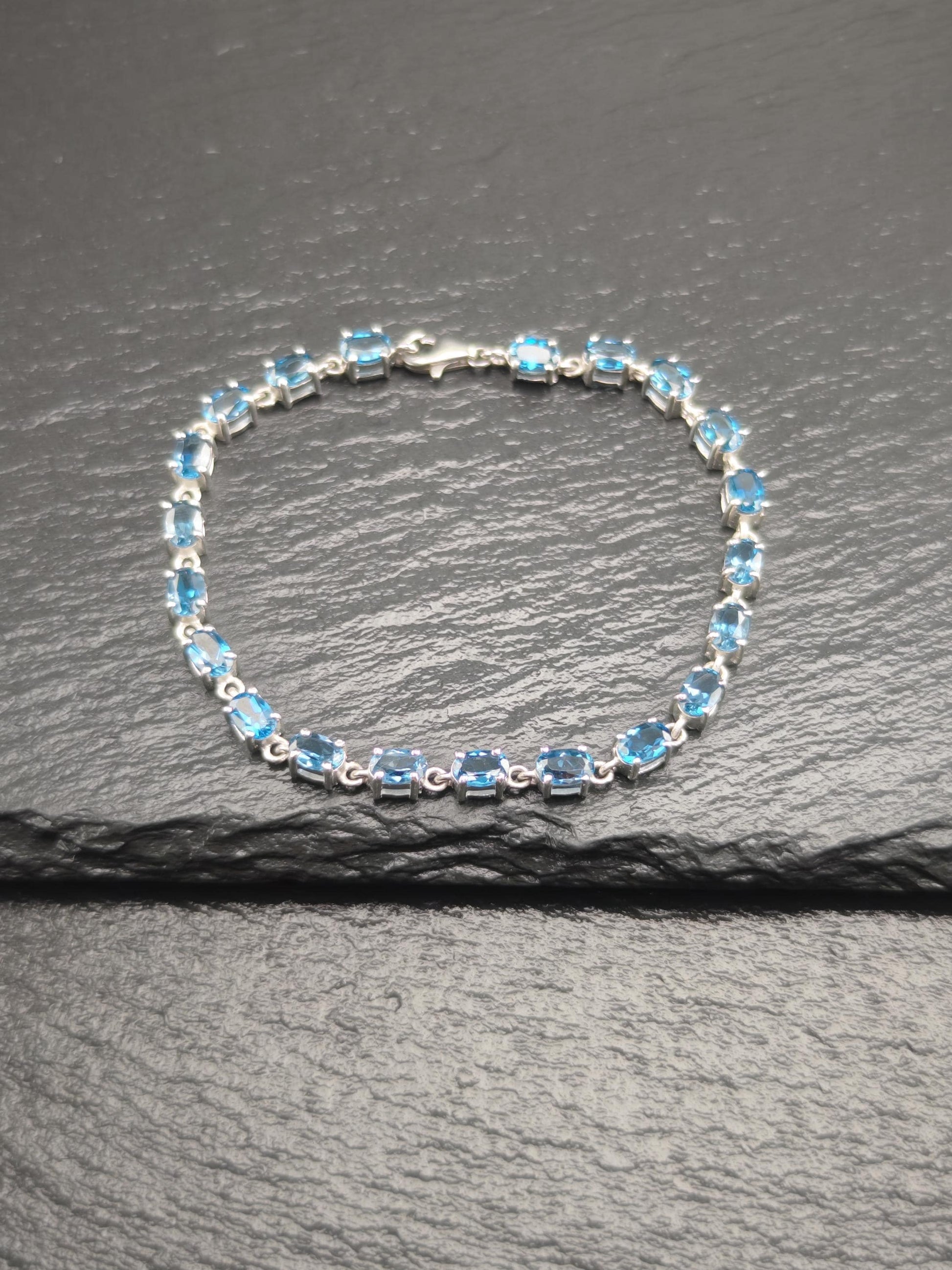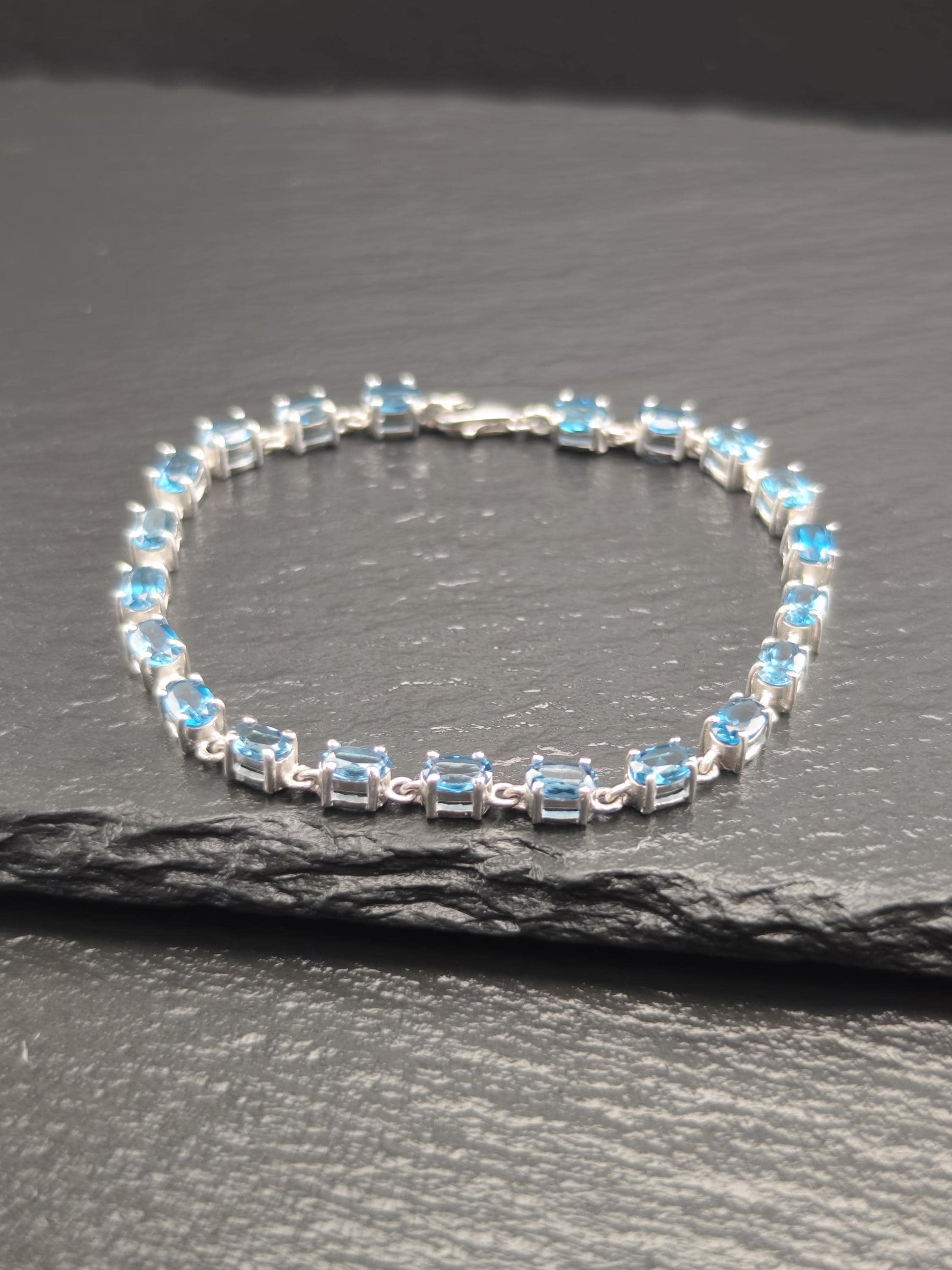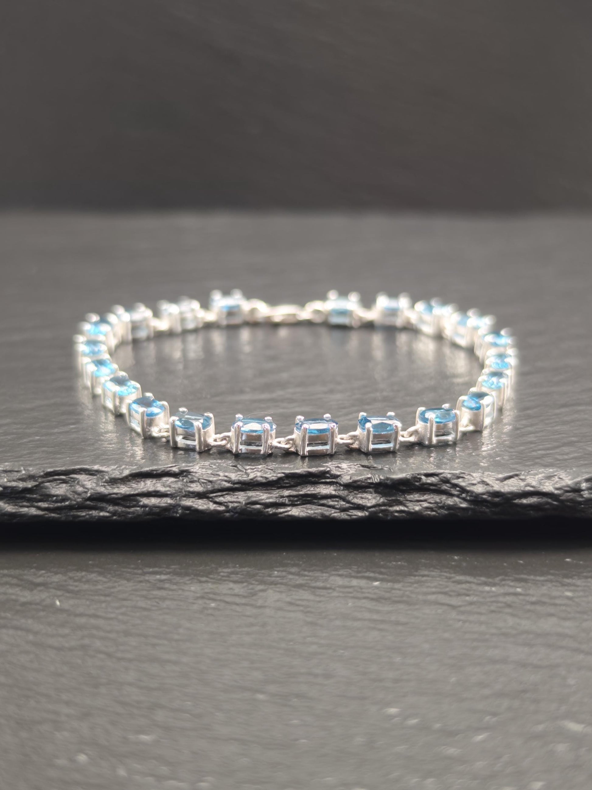 Vintage London Blue Topaz Line Bracelet Sterling Silver