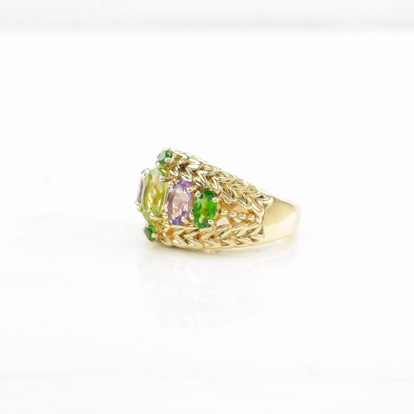 Vintage Michelle Albala Silver Ring Peridot Amethyst, Chrome Diopside Sterling Size 5