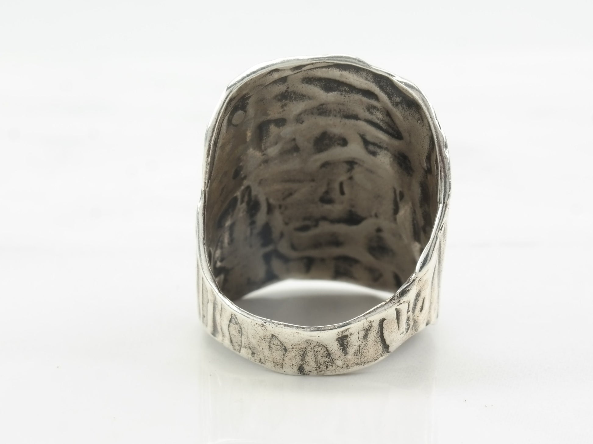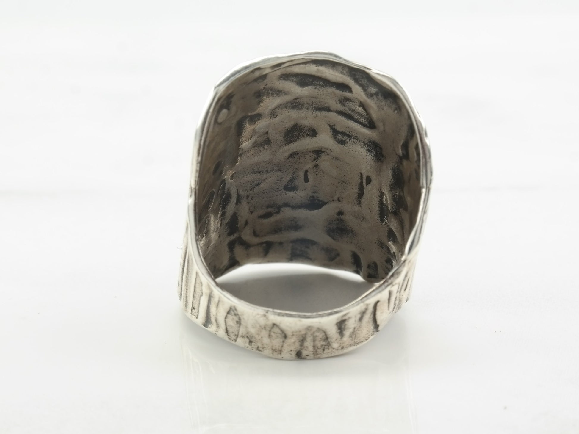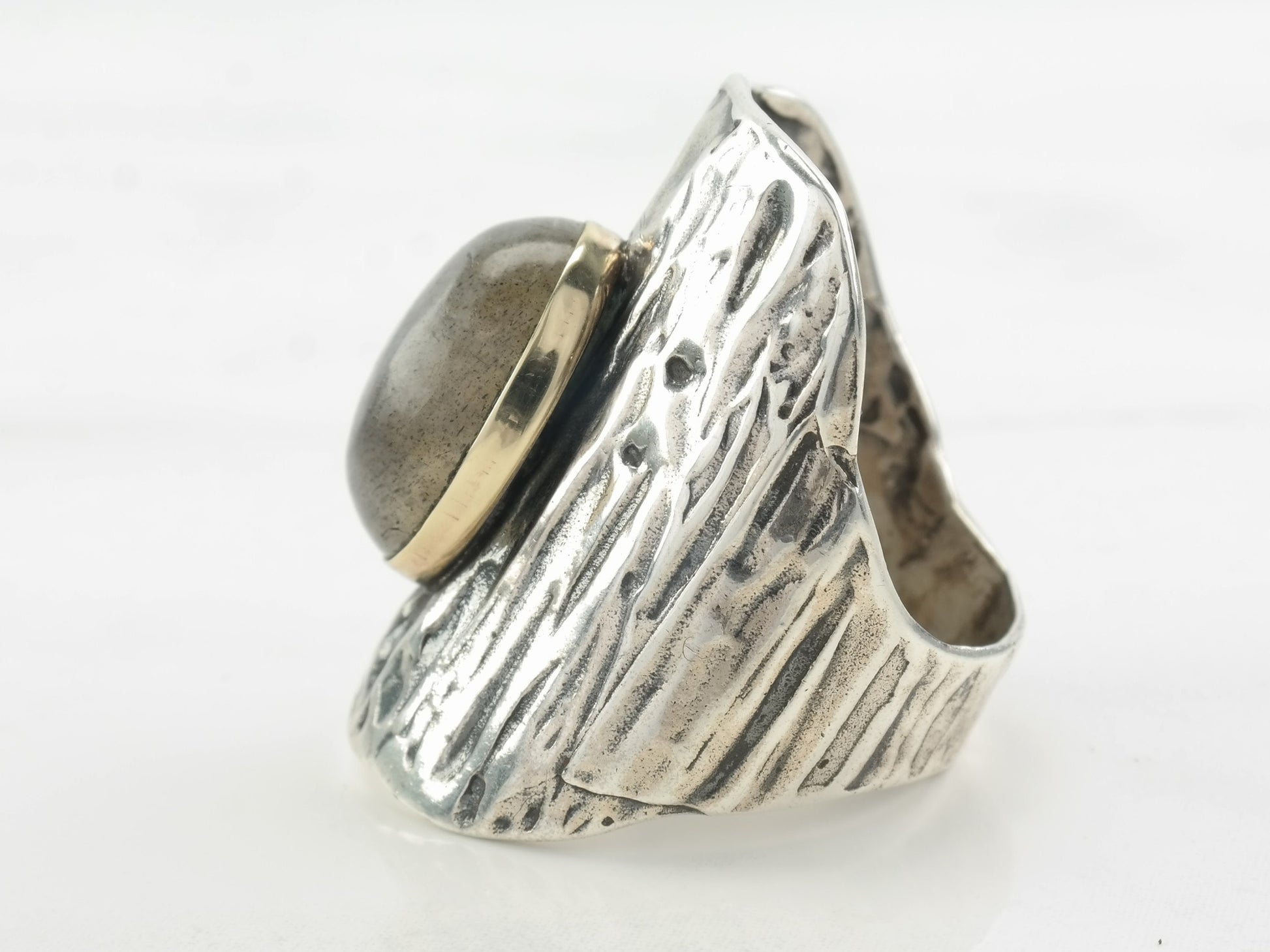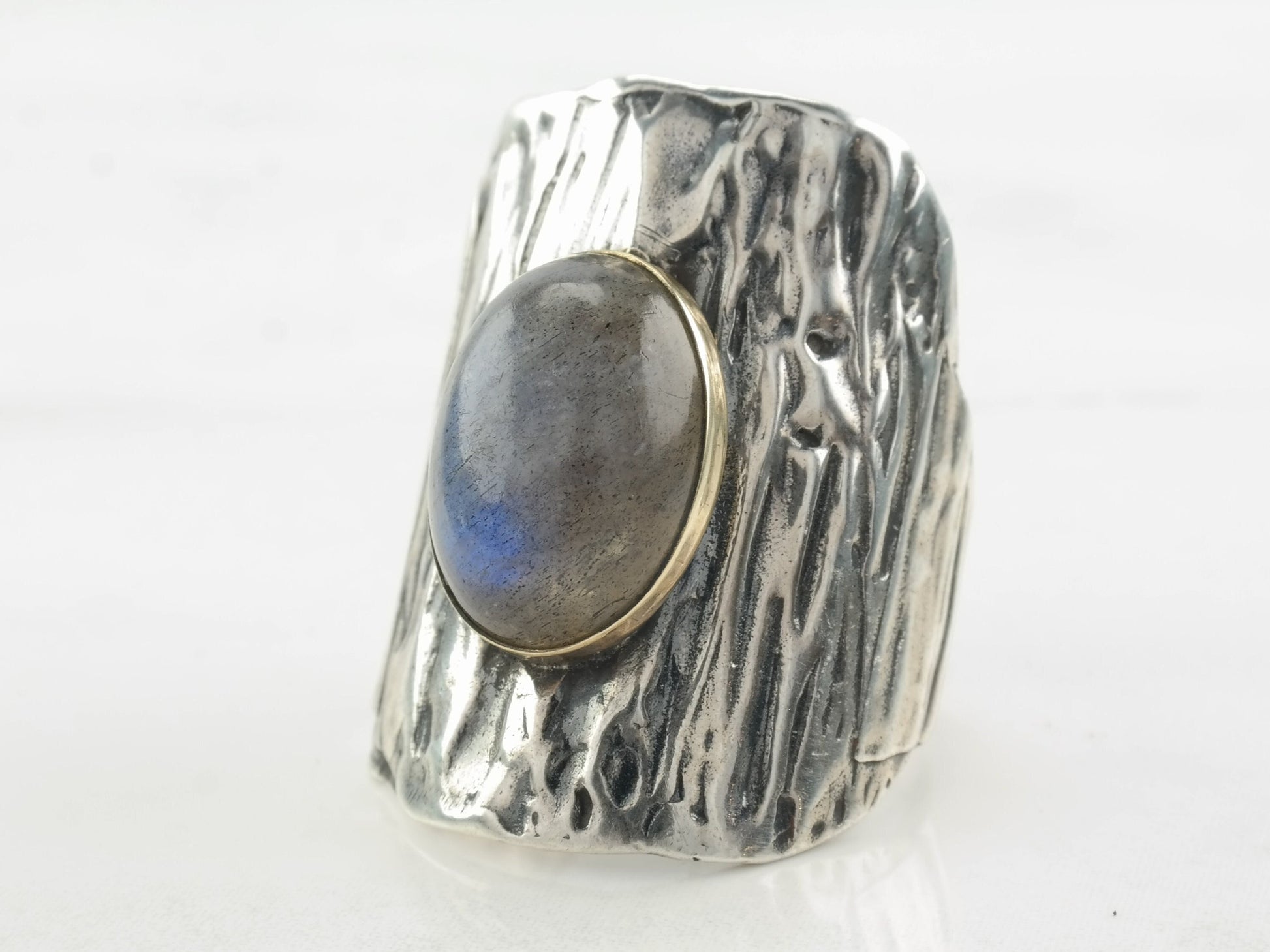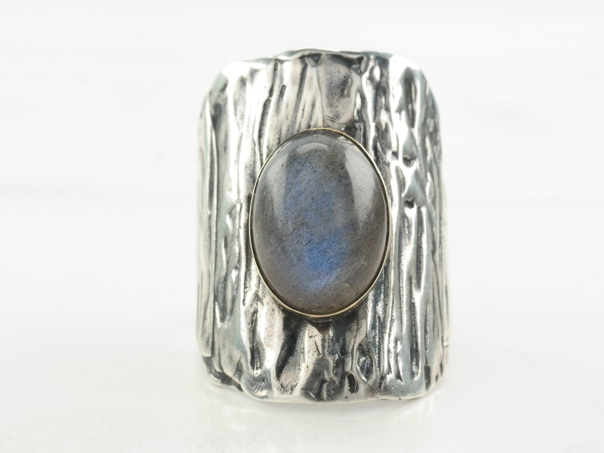 Vintage Modernist Ring Labradorite Textured Band Sterling Silver 7 1/2