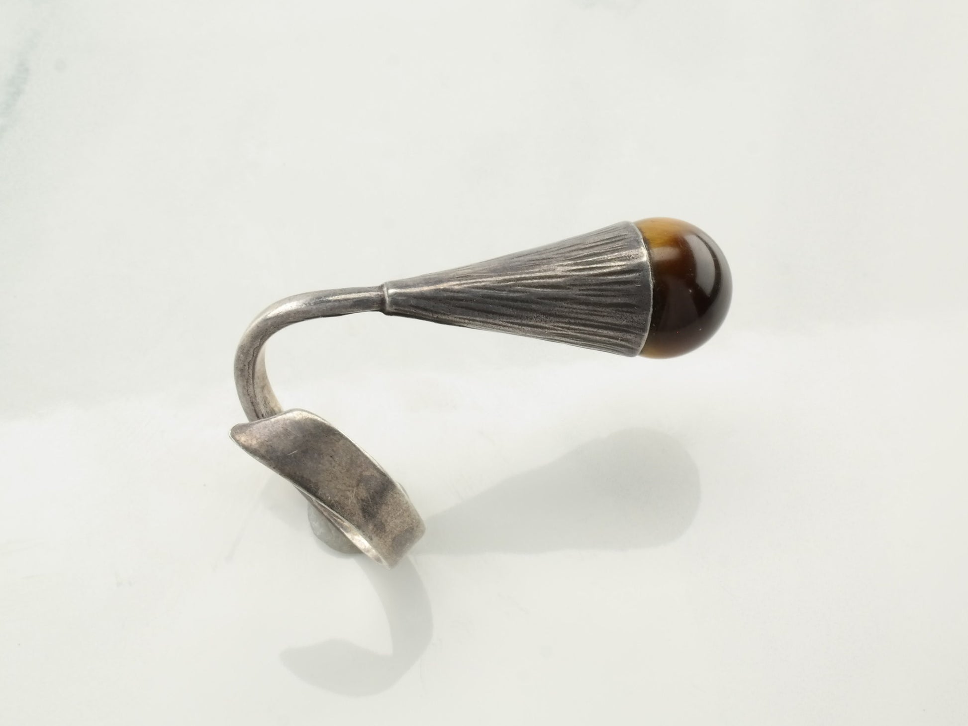 Vintage Modernist Ring Tiger's Eye Abstract Sterling Silver Size 7