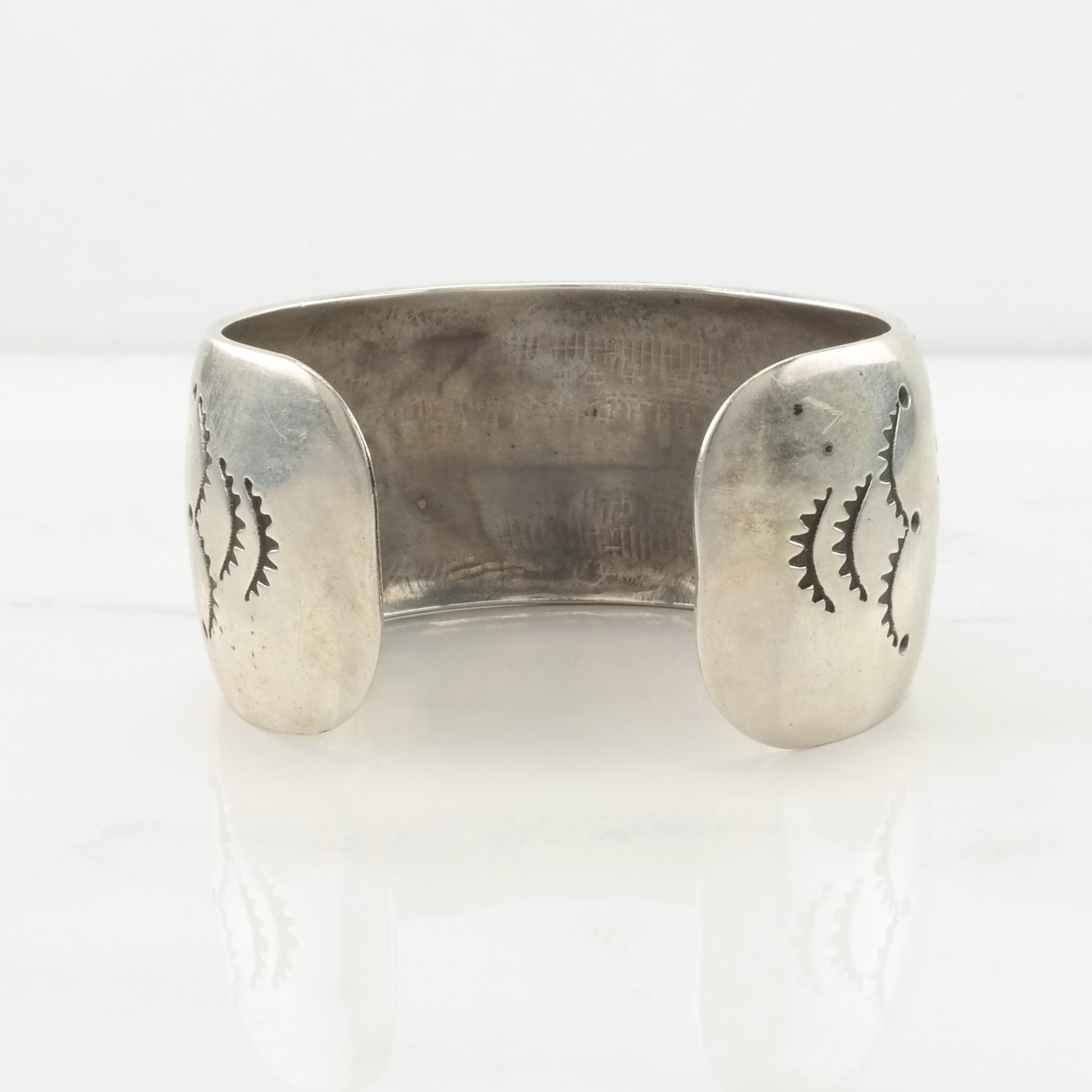 Vintage Native American, Begay Sterling Silver Cuff Bracelet Overlay Yei