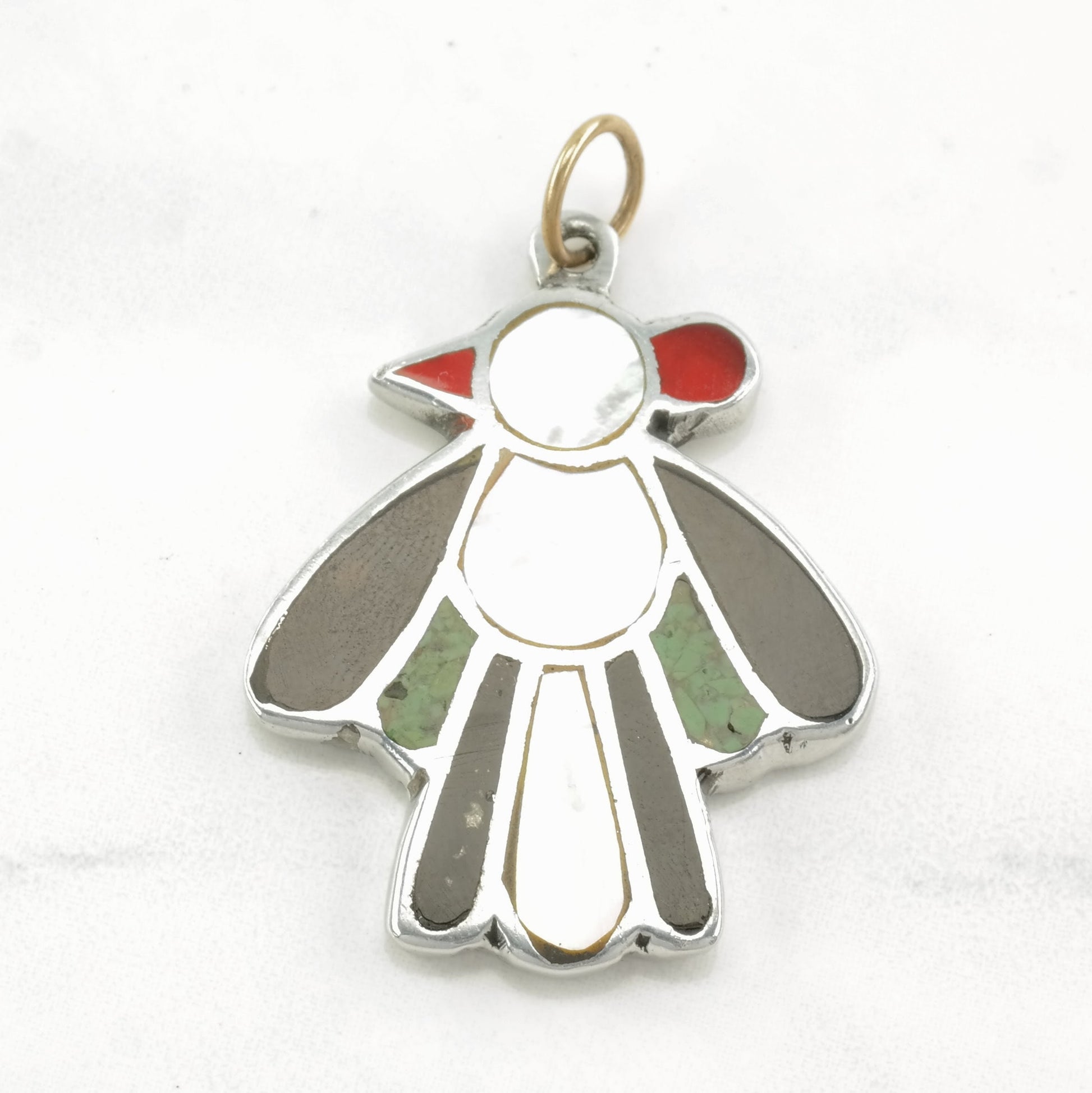 Vintage Native American Multi Gem Inlay Bird Sterling Silver Pendant