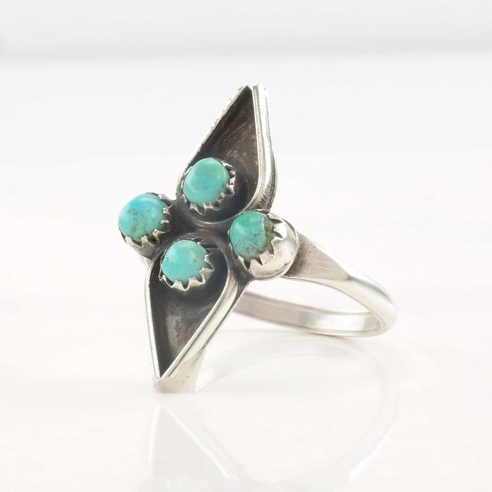 Vintage Native American Ring Turquoise Snake Eye Sterling Silver Size 6 3/4