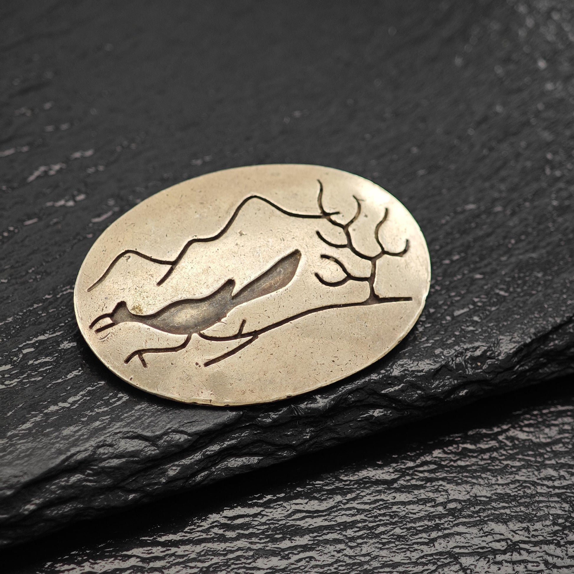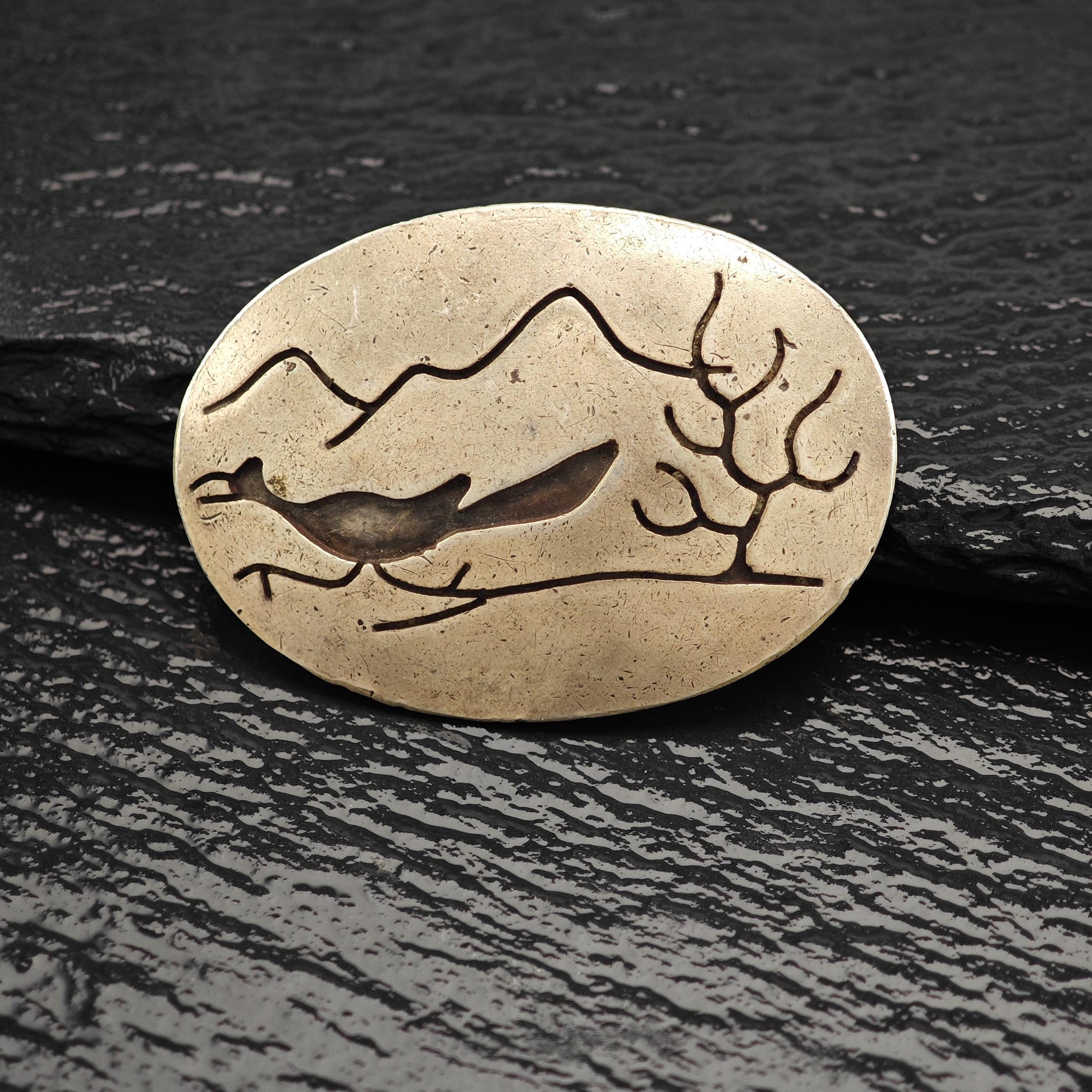 Vintage Native American, Roadrunner Overlay Pendant/Brooch Sterling Silver