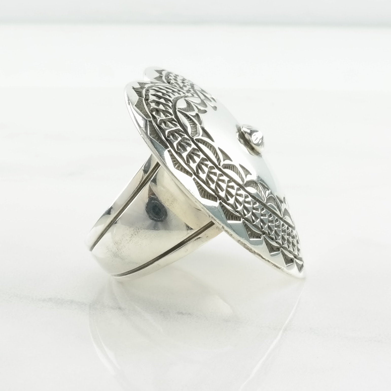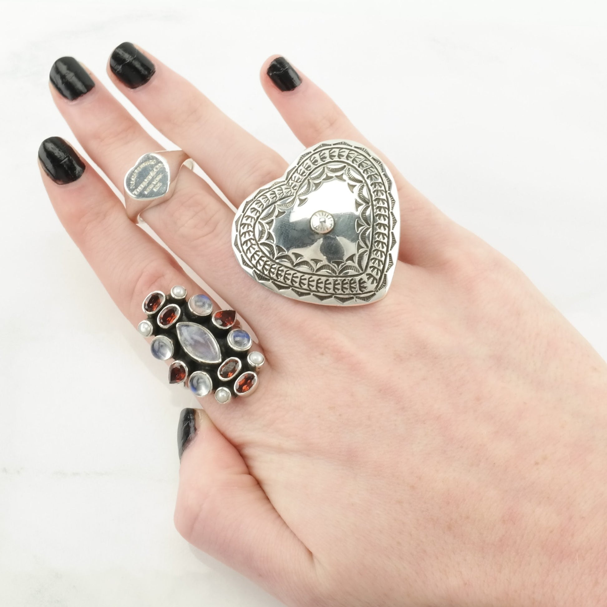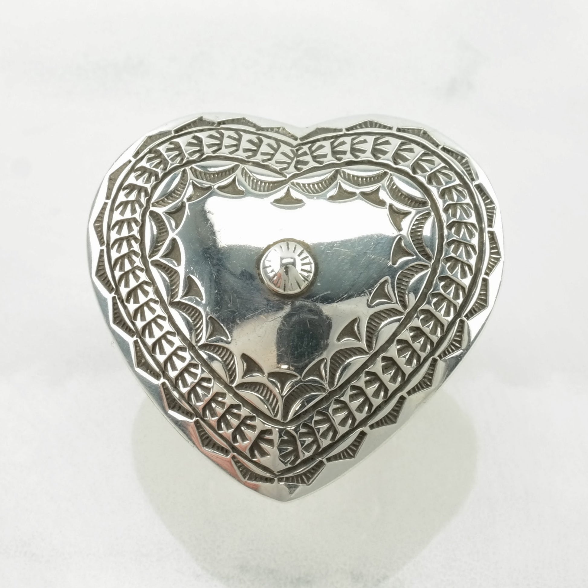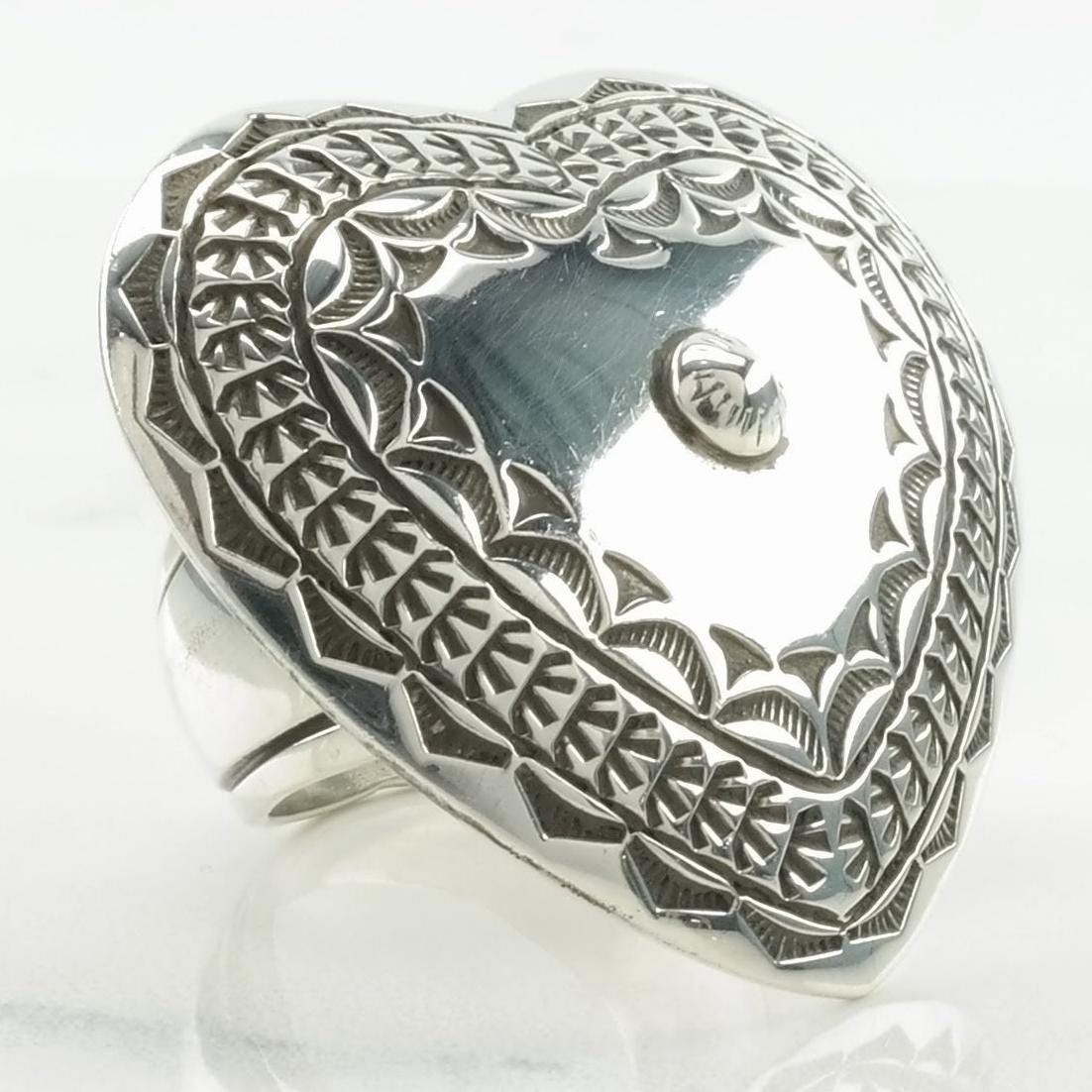 Vintage Native American Silver Ring Heart Large, Stamped, Shield Sterling Size 9