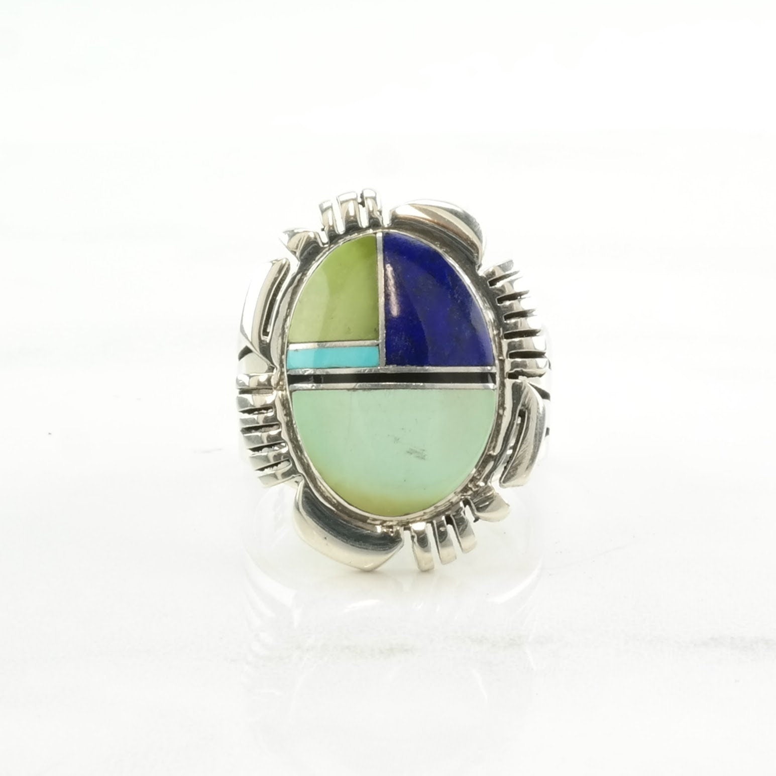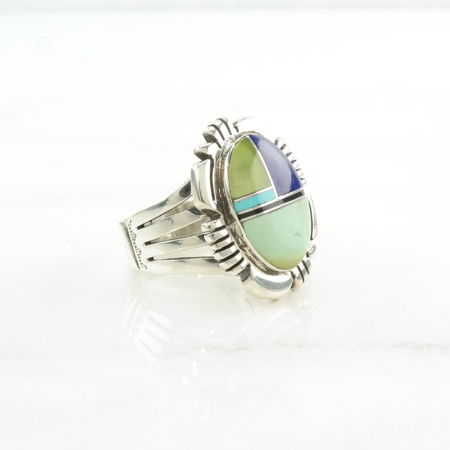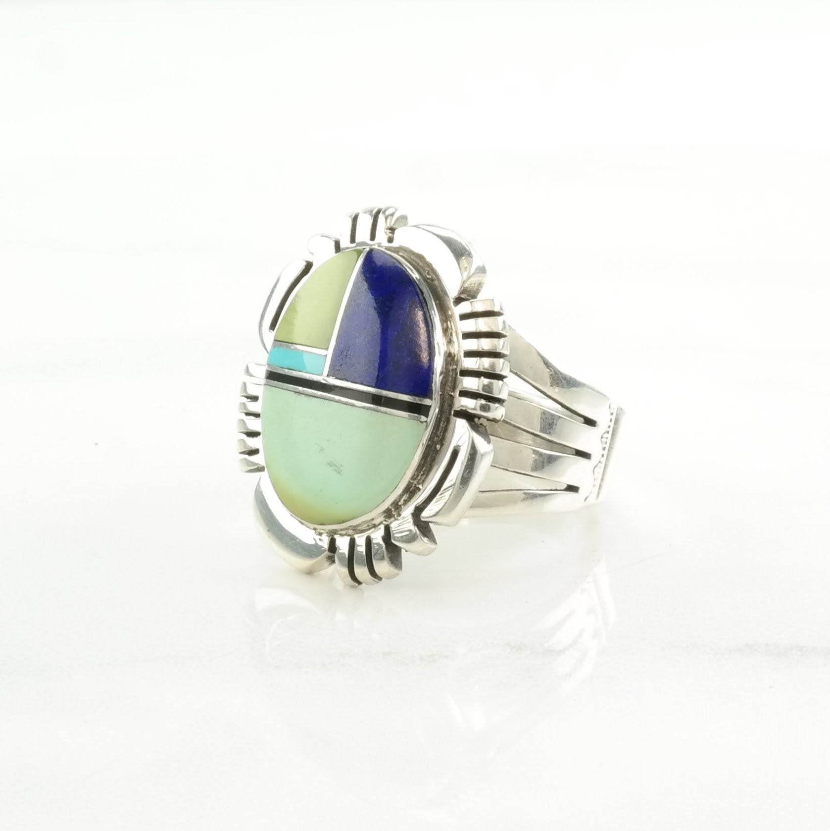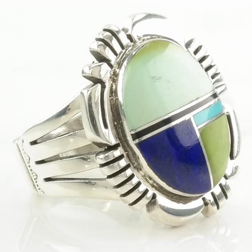Vintage Native American Silver Ring Lapis Lazuli, Turquoise Inlay Sterling Size 9 1/2