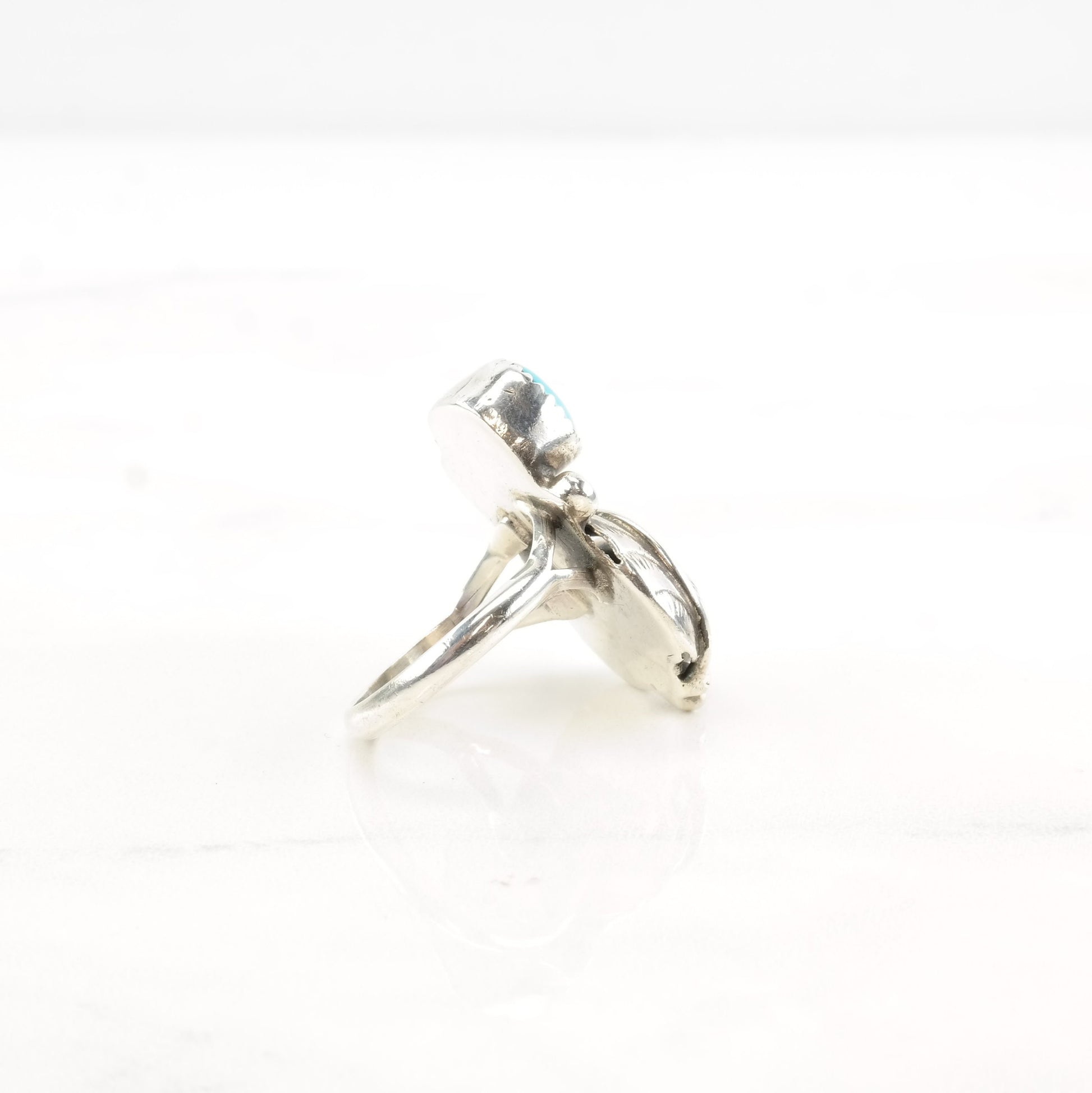 Vintage Native American Silver Ring MOP Turquoise Leaf Double Sterling Size 6 1/4