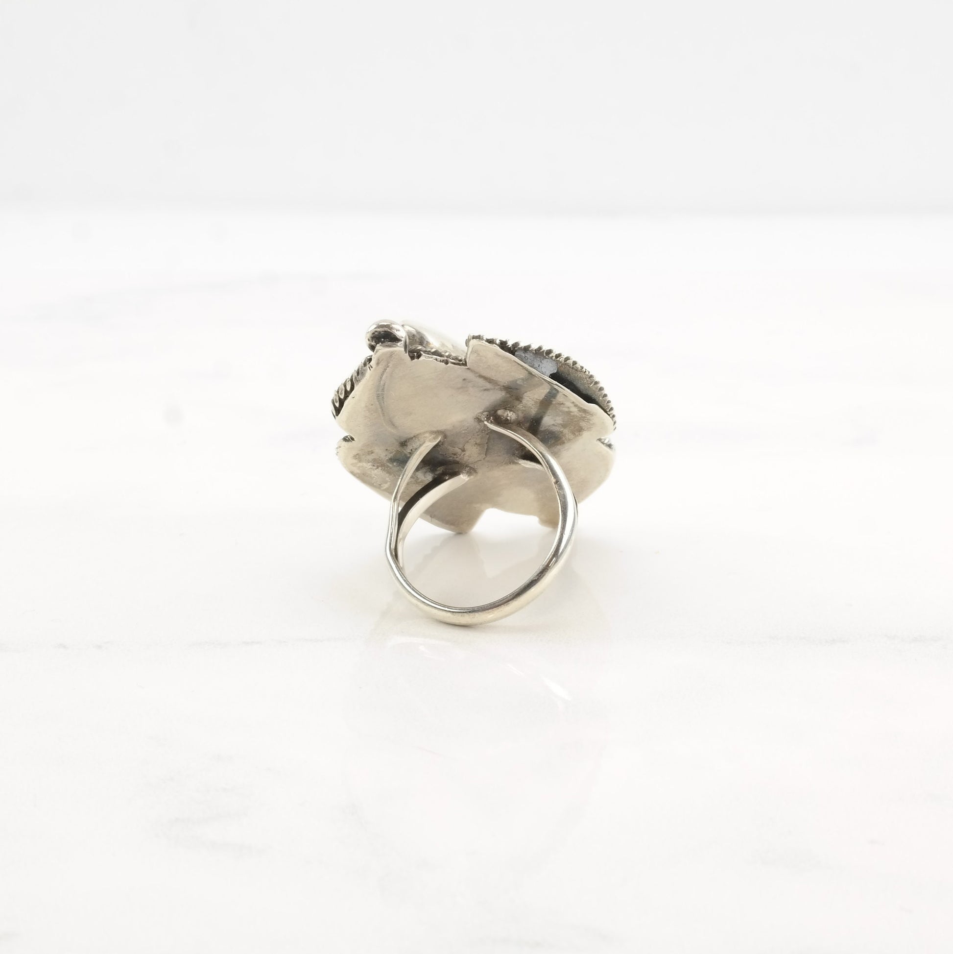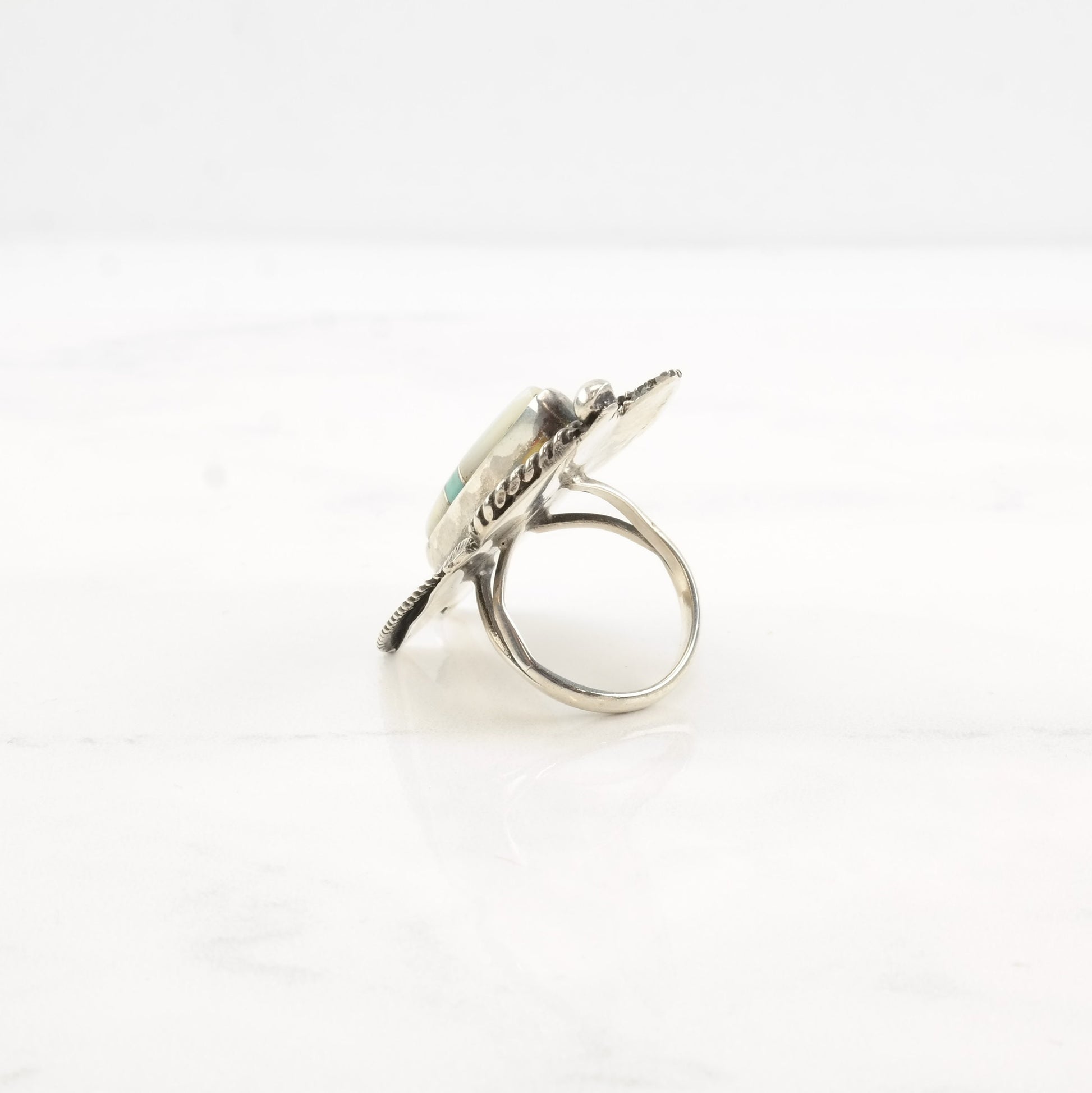 Vintage Native American Silver Ring MOP Turquoise Leaf Sterling Size 5 1/2