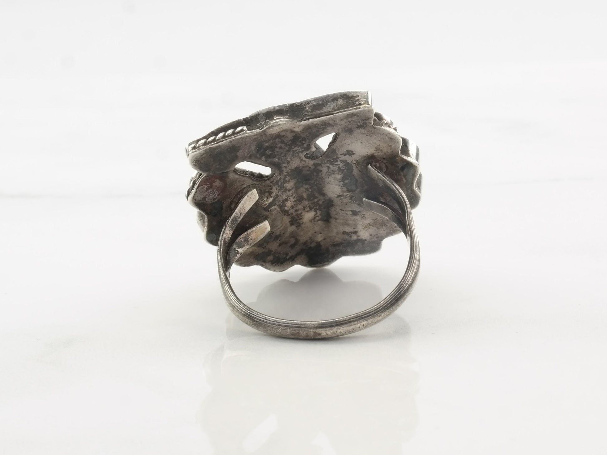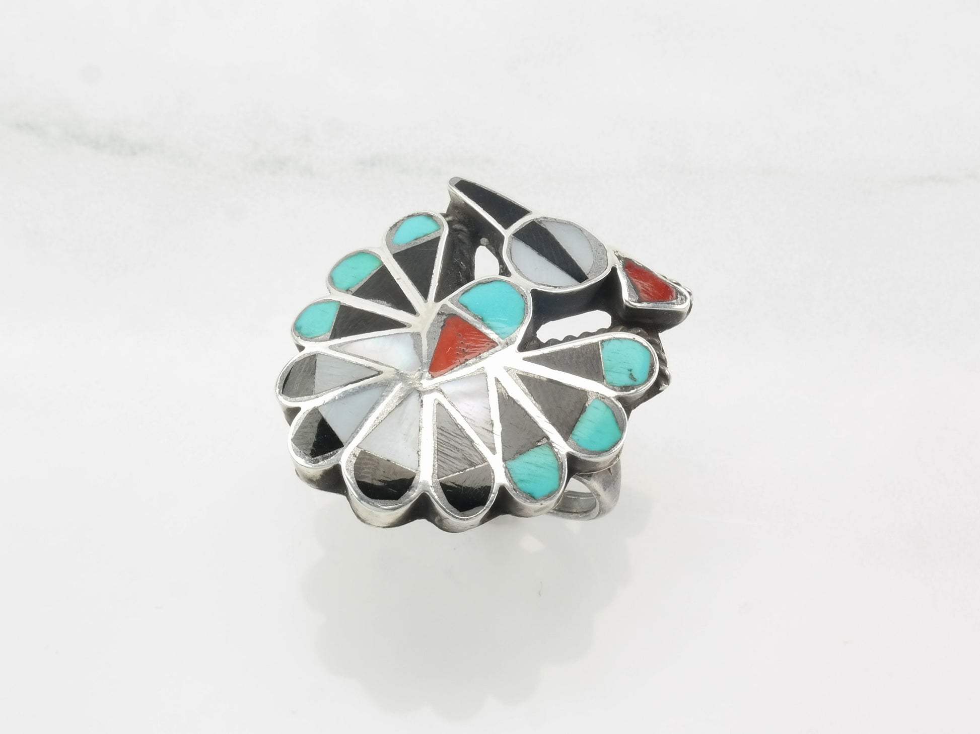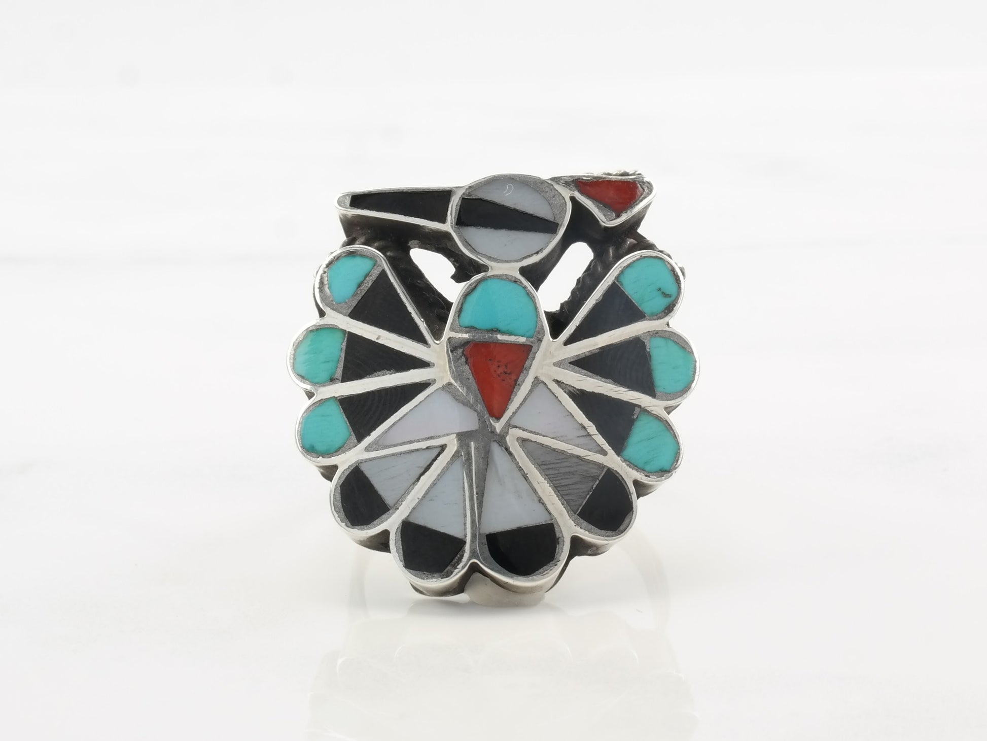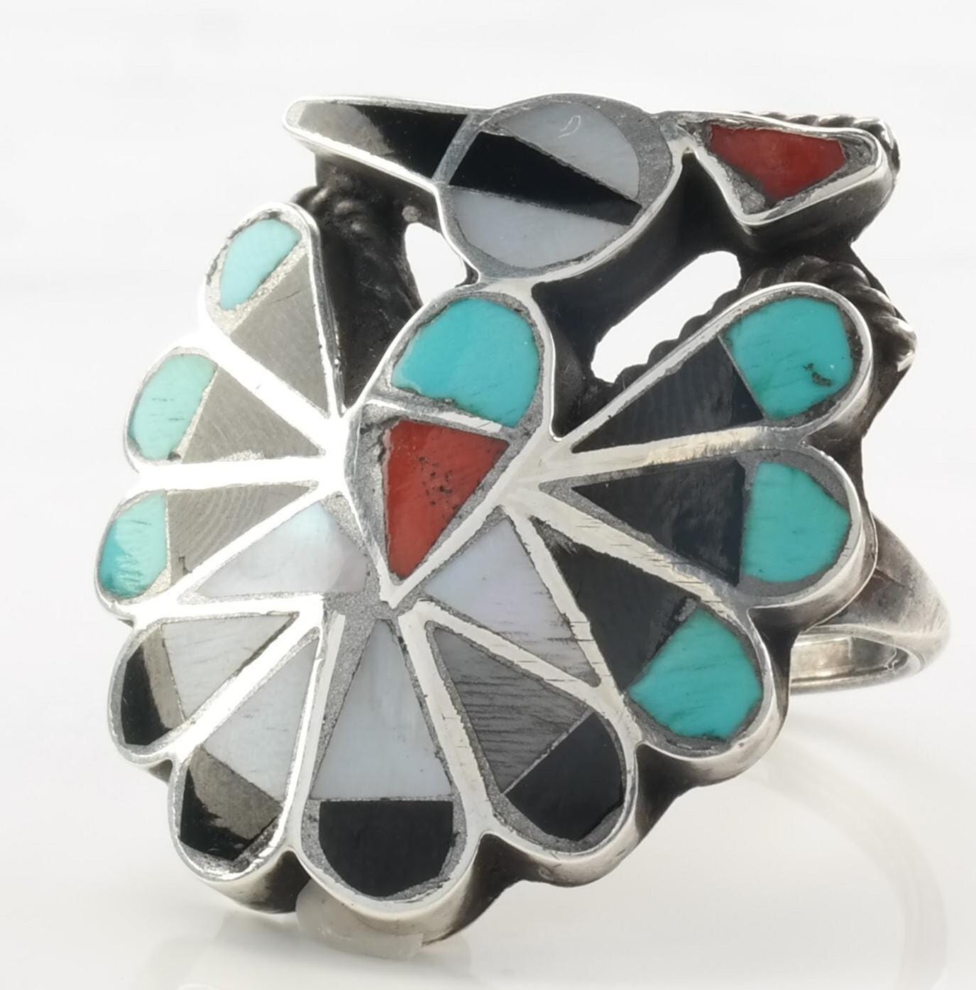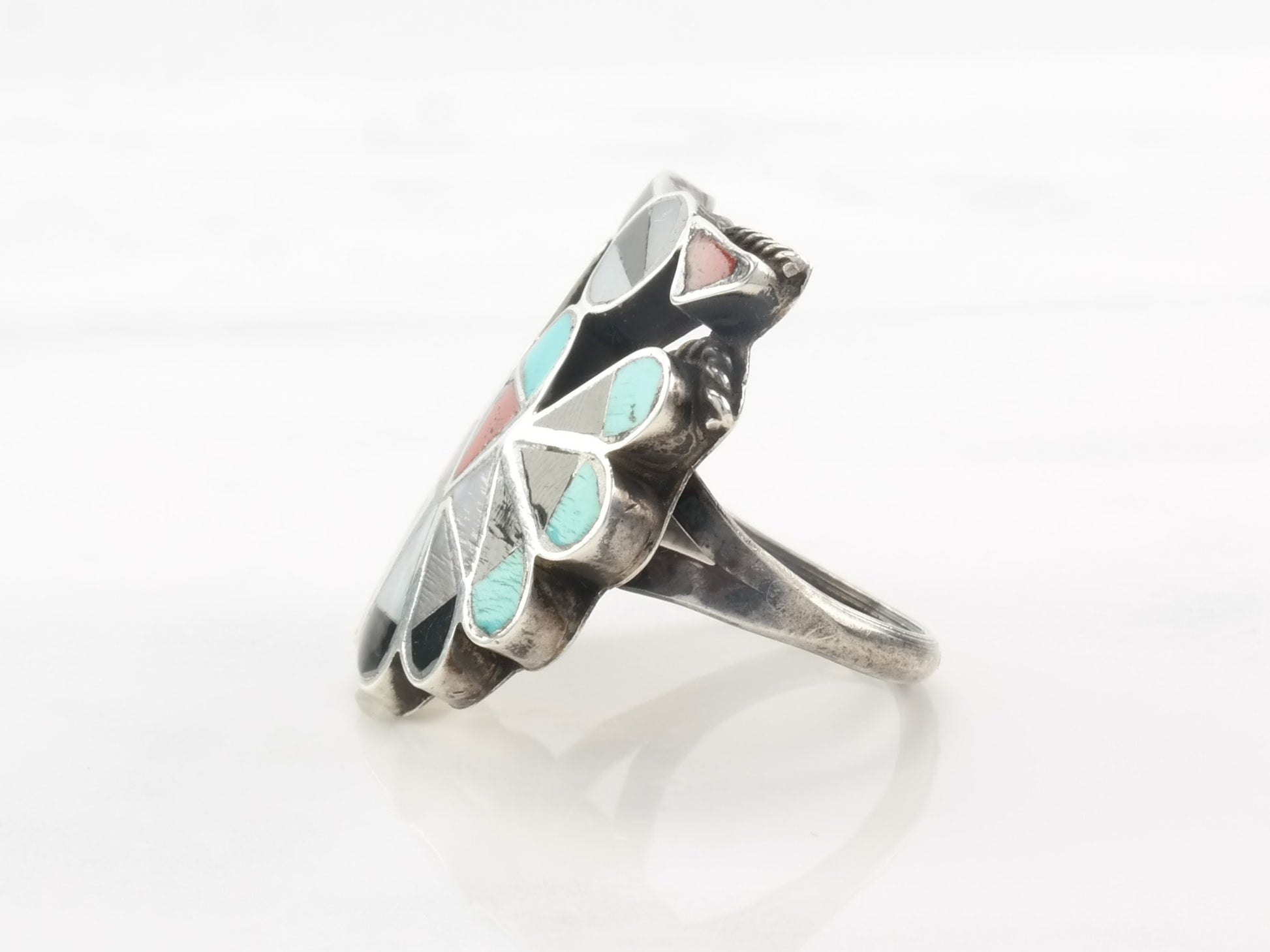Vintage Native American Silver Ring Peyote Inlay, Bird Sterling Size 8 3/4