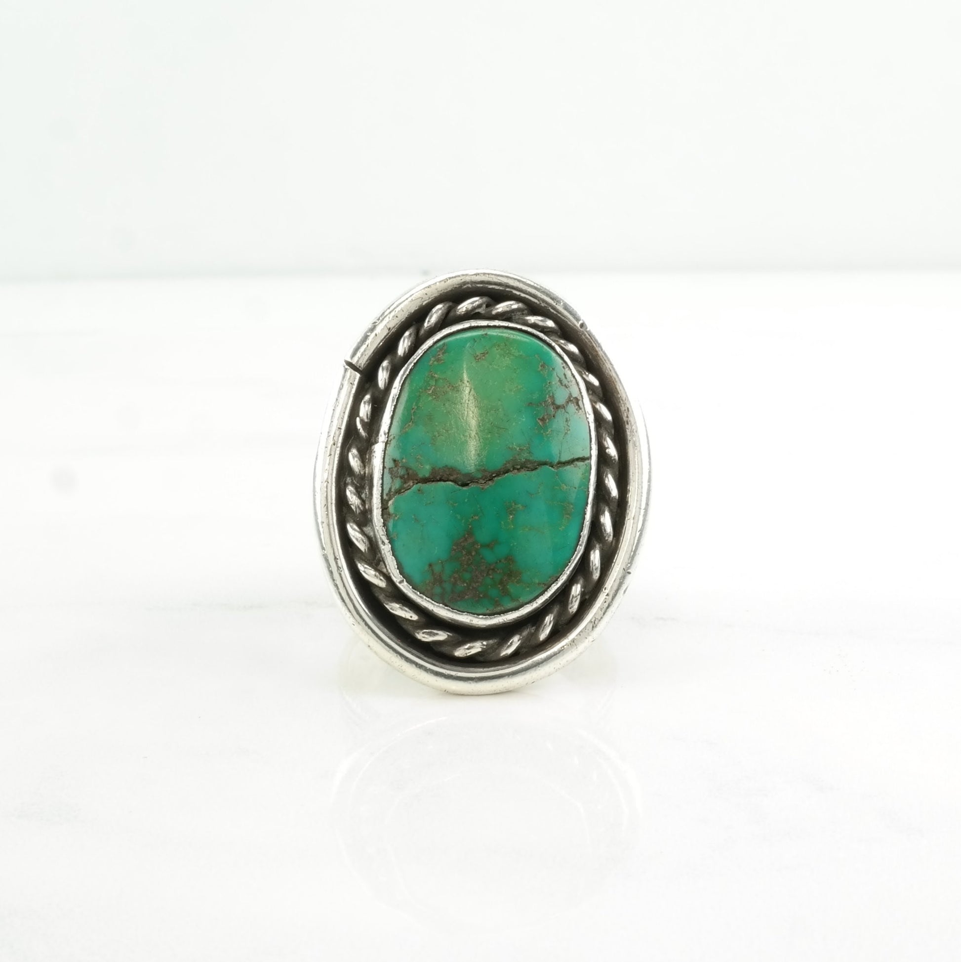 Vintage Native American Silver Ring Turquoise Large Sterling Green Size 14