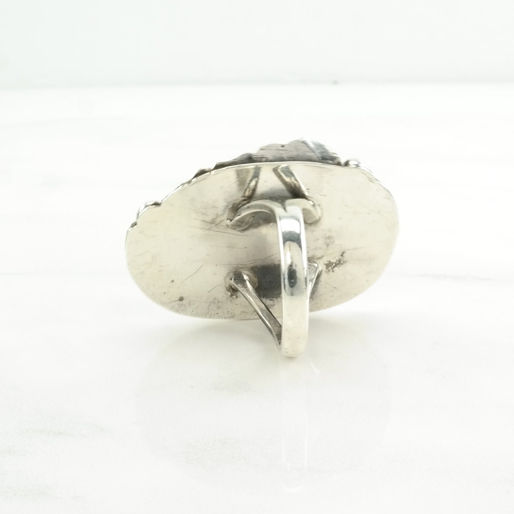 Vintage Native American Silver Ring Turquoise Leaf, Large Sterling Blue Size 6 3/4