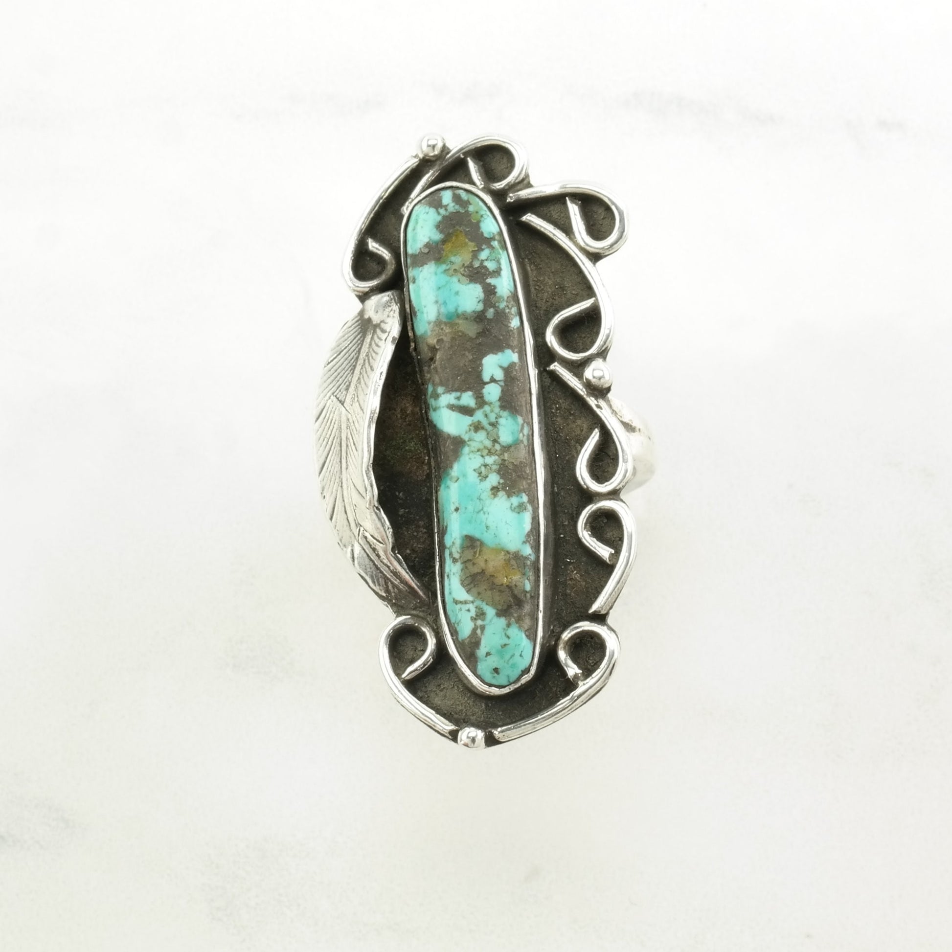 Vintage Native American Silver Ring Turquoise Leaf, Large Sterling Blue Size 6 3/4