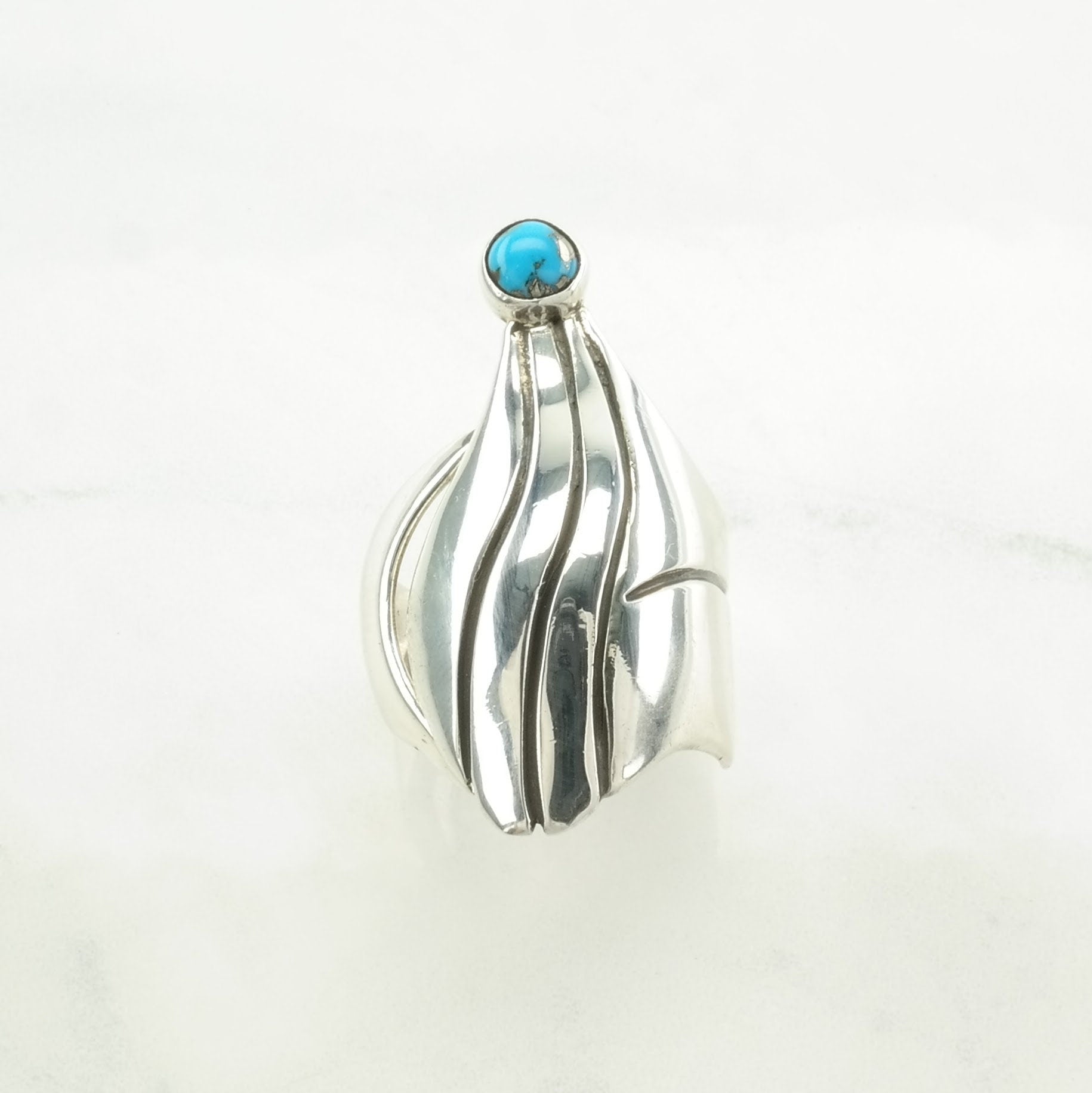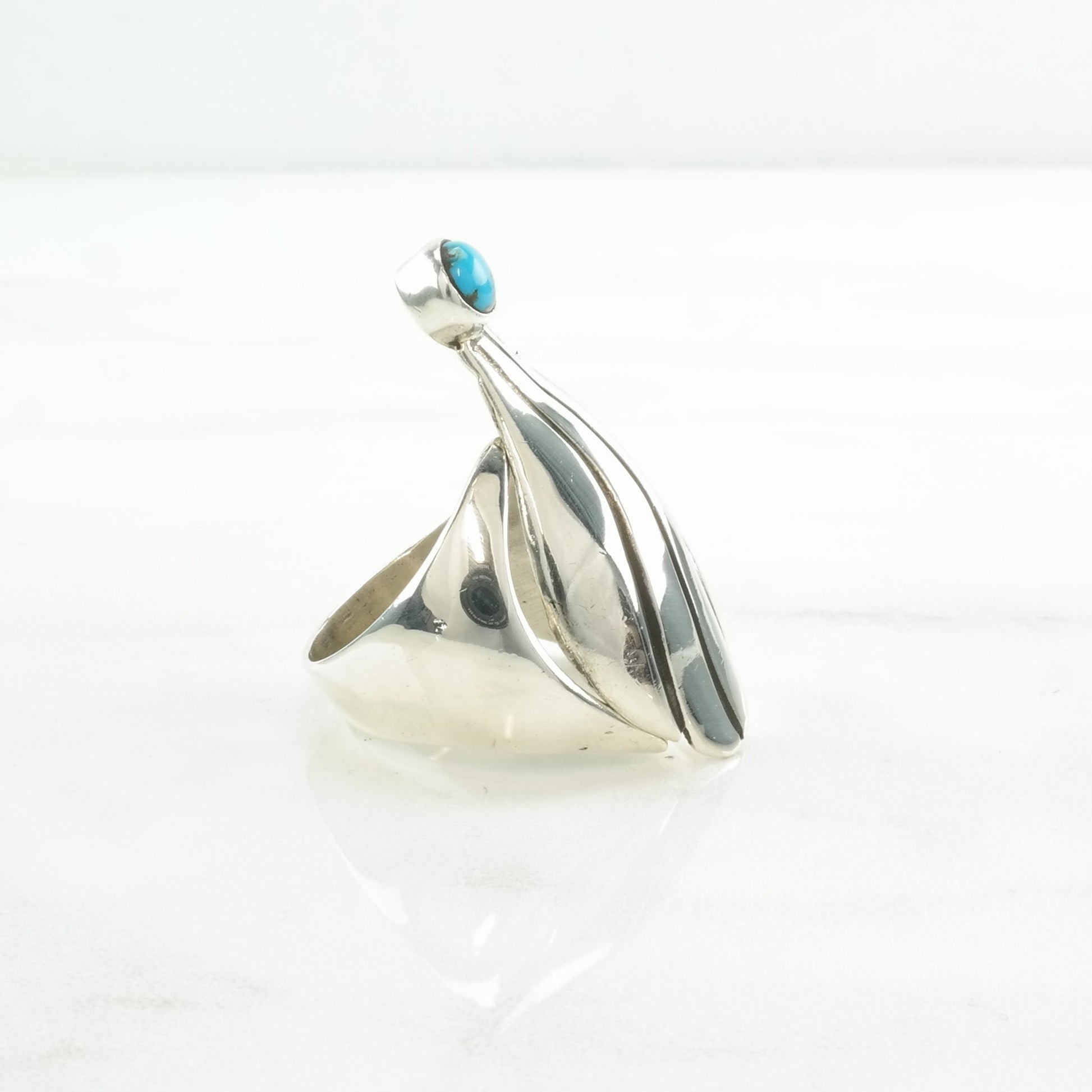Vintage Native American Silver Ring Turquoise Modernist Sterling Blue Size 10 1/2