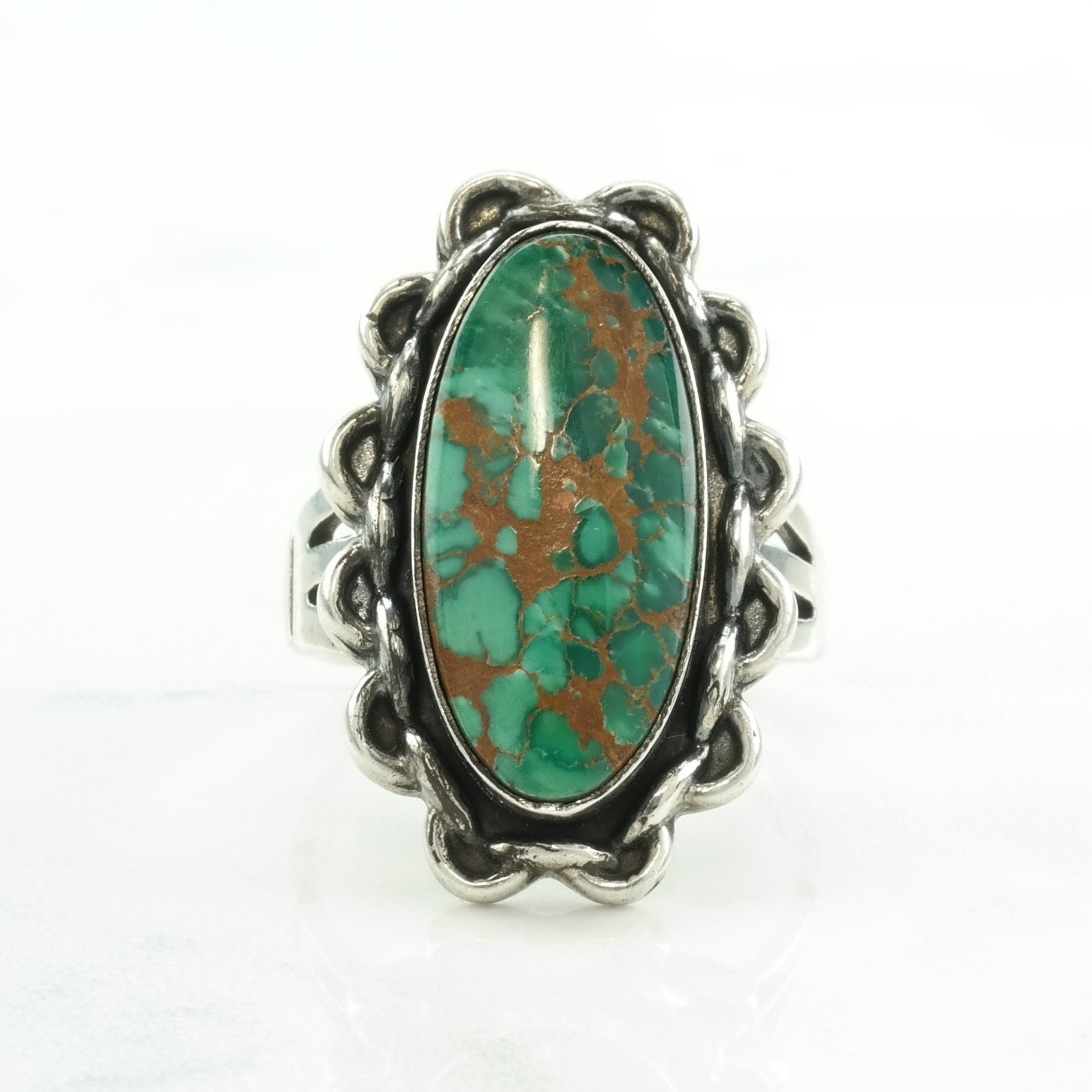 Vintage Native American Silver Ring Turquoise Oval Sterling Size 7 1/4