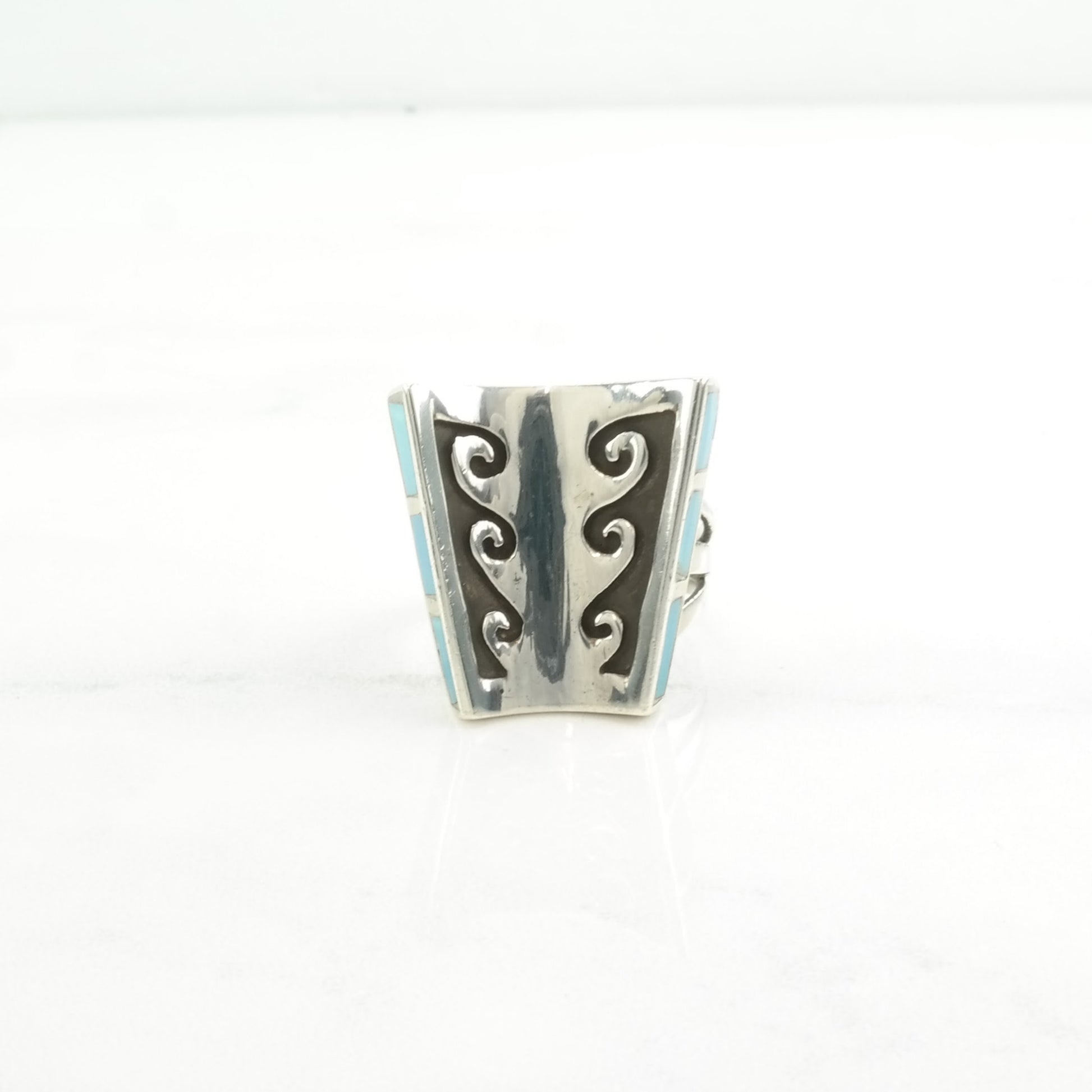 Vintage Native American Silver Ring Turquoise Overlay Sterling Blue Size 6 1/2