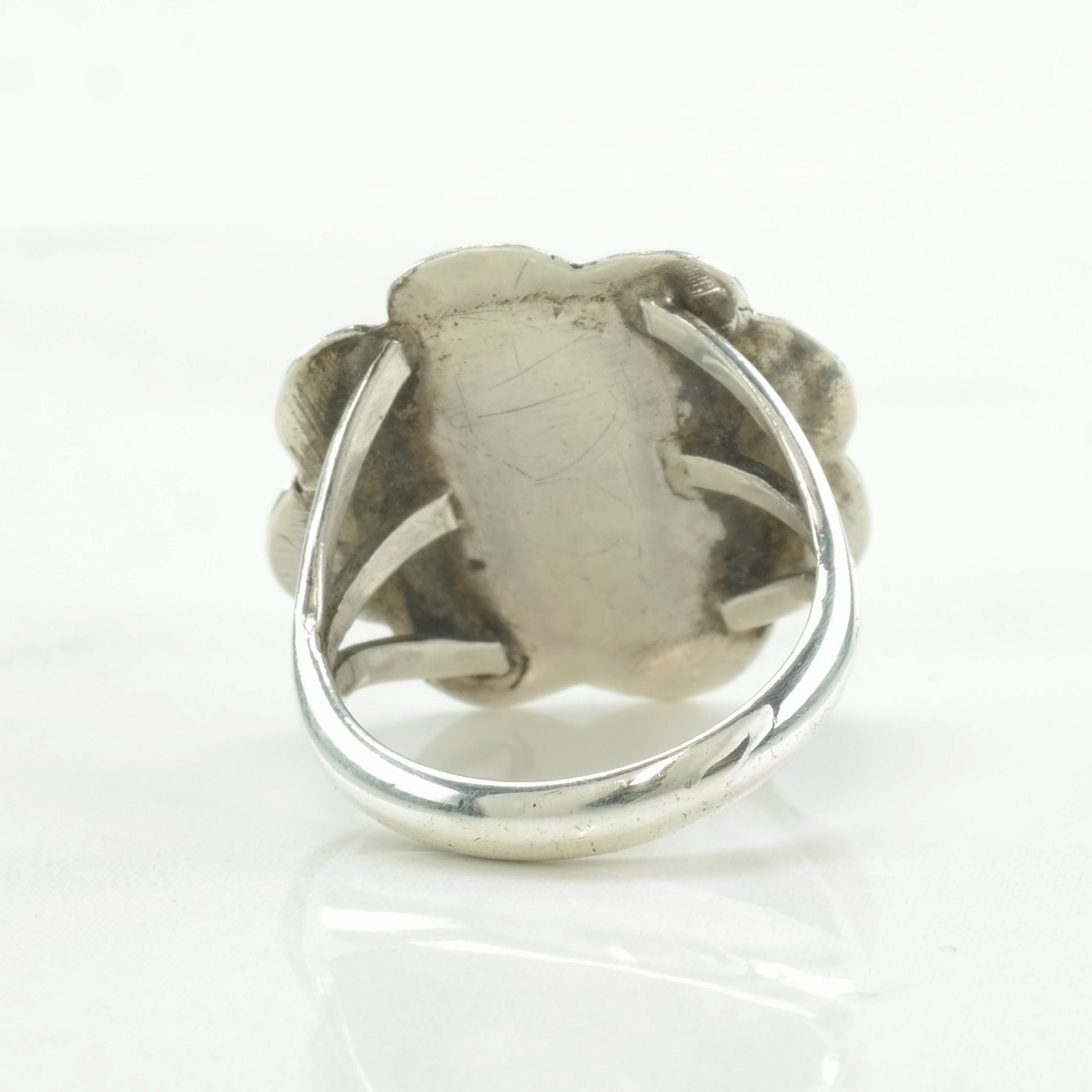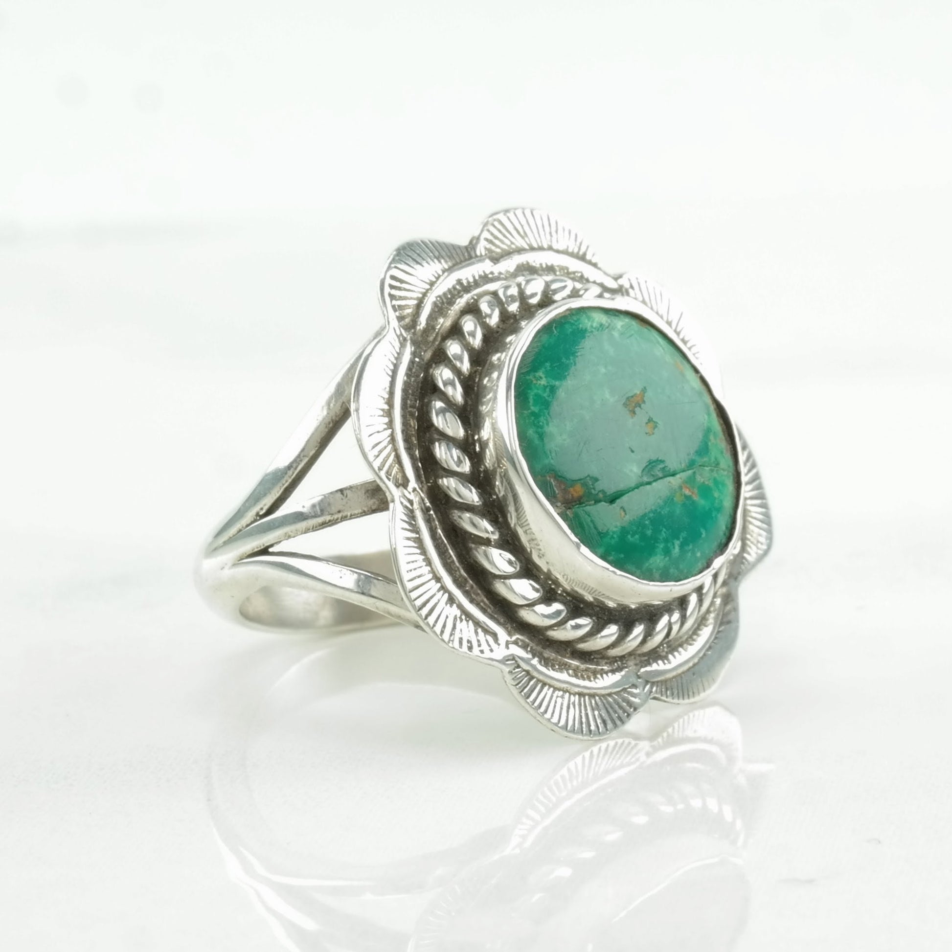 Vintage Native American Silver Ring Turquoise Scallop Sterling Size 6