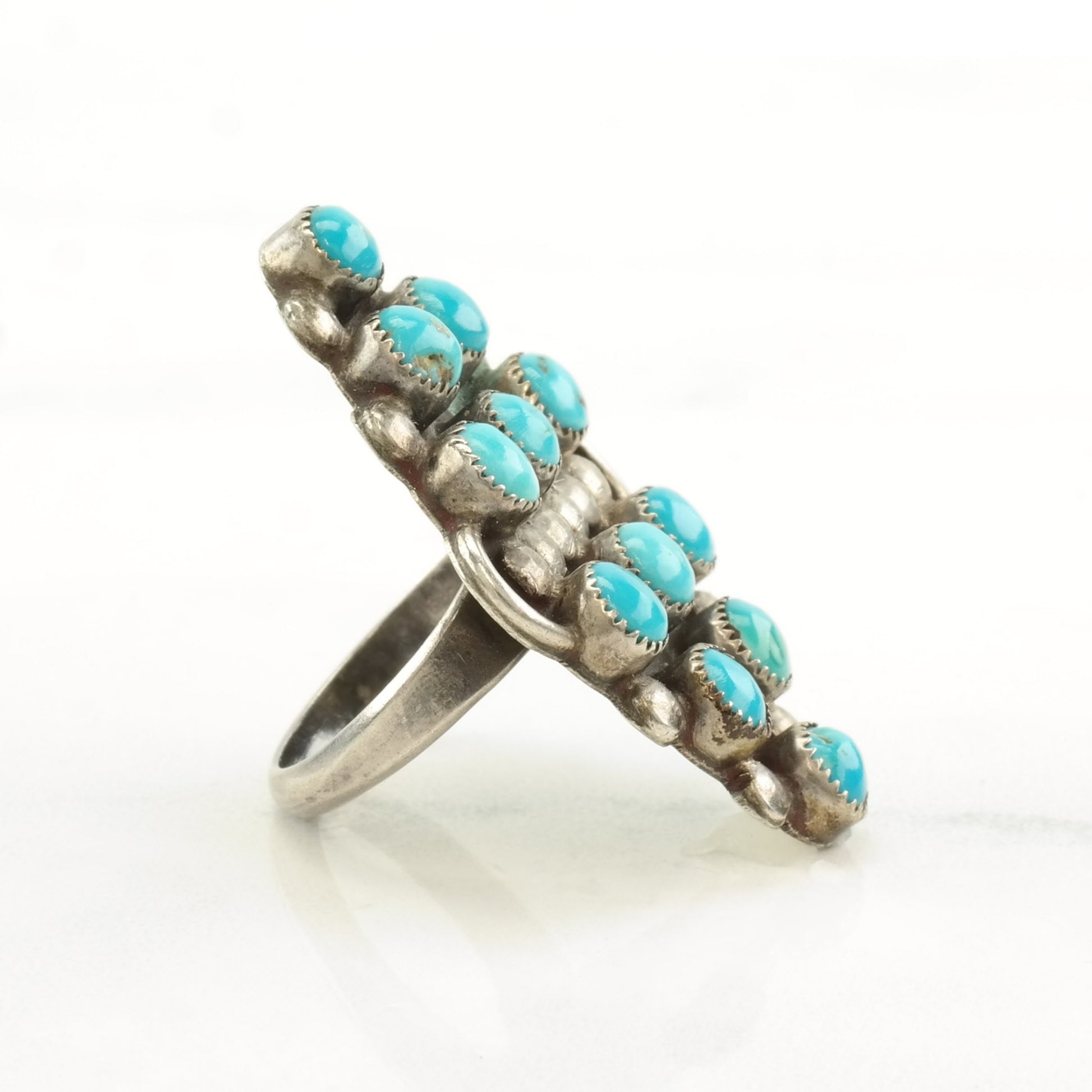 Vintage Native American Silver Ring Turquoise Snake Eye Sterling Size 4 1/4