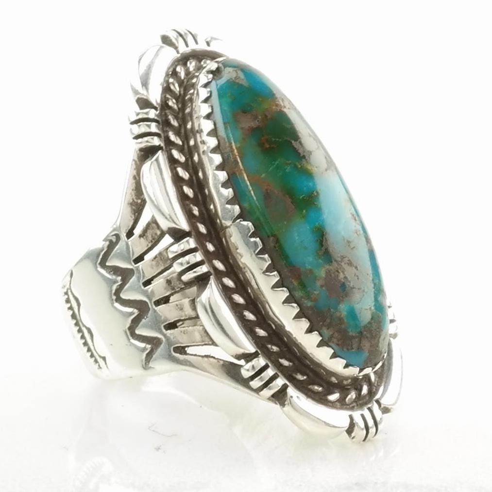 Vintage Native American Silver Ring Turquoise Stamped Sterling Blue Size 6 1/2