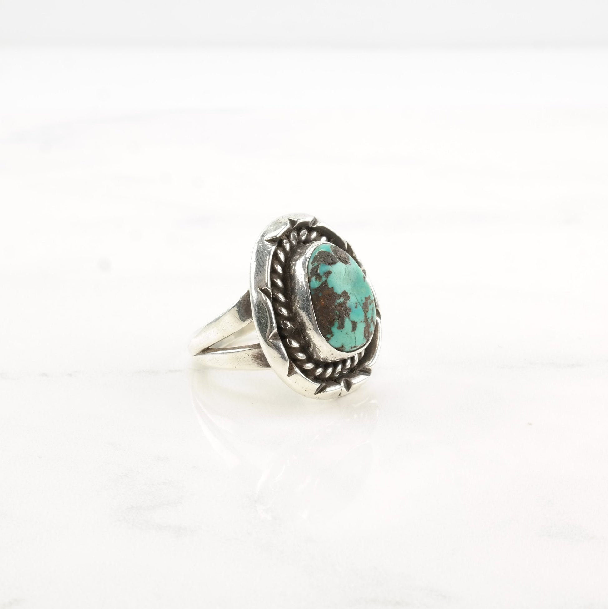 Vintage Native American Silver Ring Turquoise Sterling Size 8 1/4