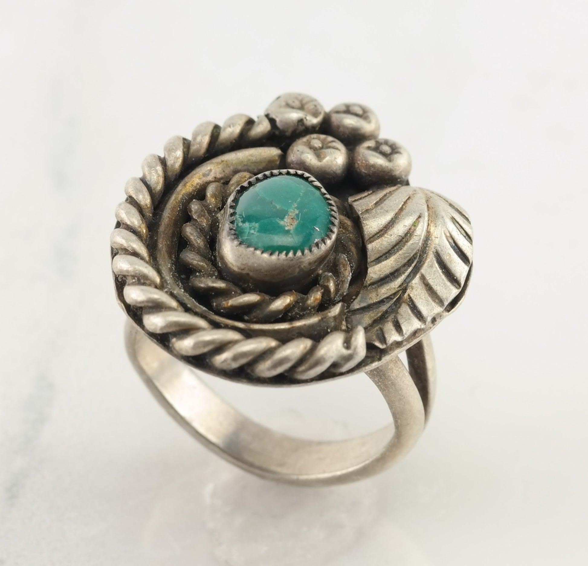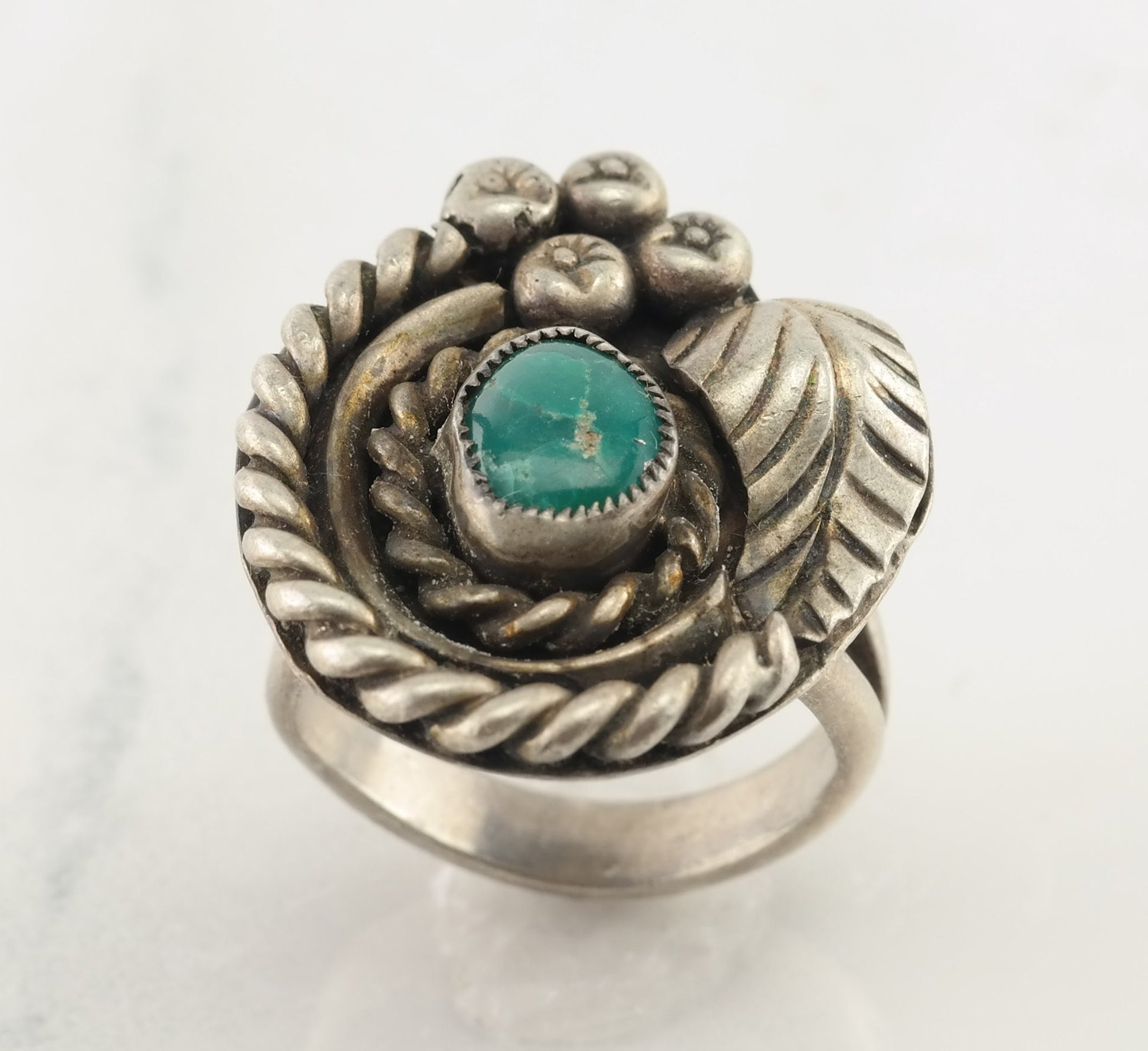 Vintage Native American Silver Ring Turquoise Triangle Sterling Size 6