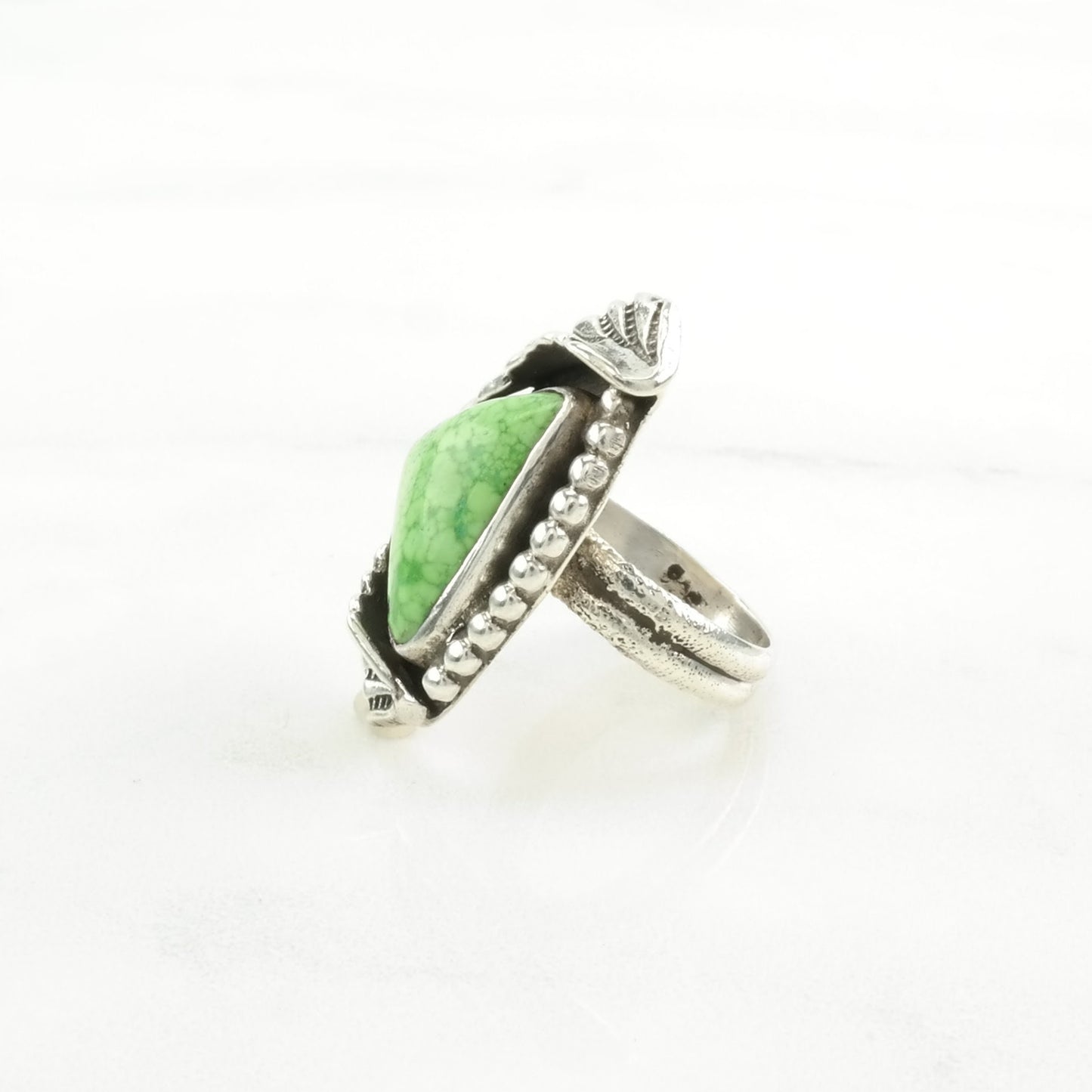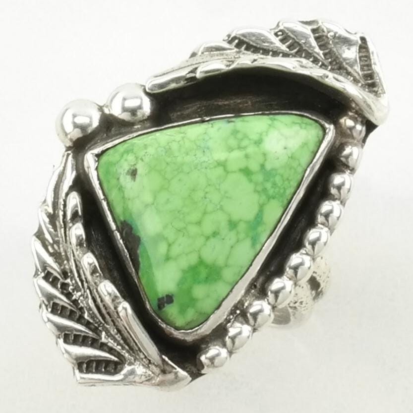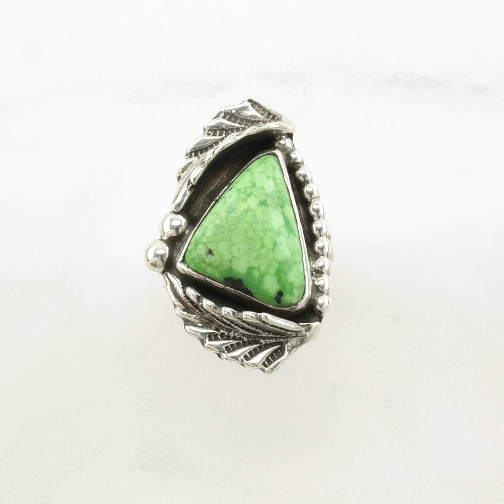 Vintage Native American Silver Ring Variscite Leaf Sterling Green Size 5 1/4