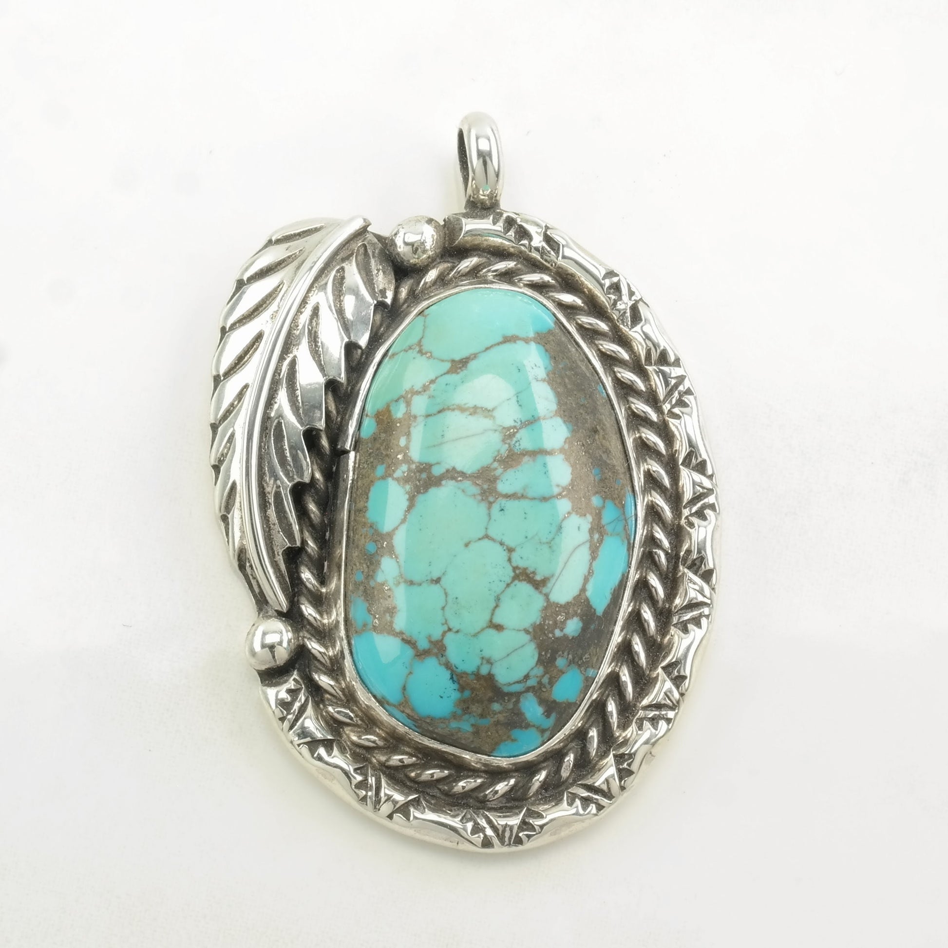 Vintage Native American Spiderweb Turquoise Feather Sterling Silver Pendant
