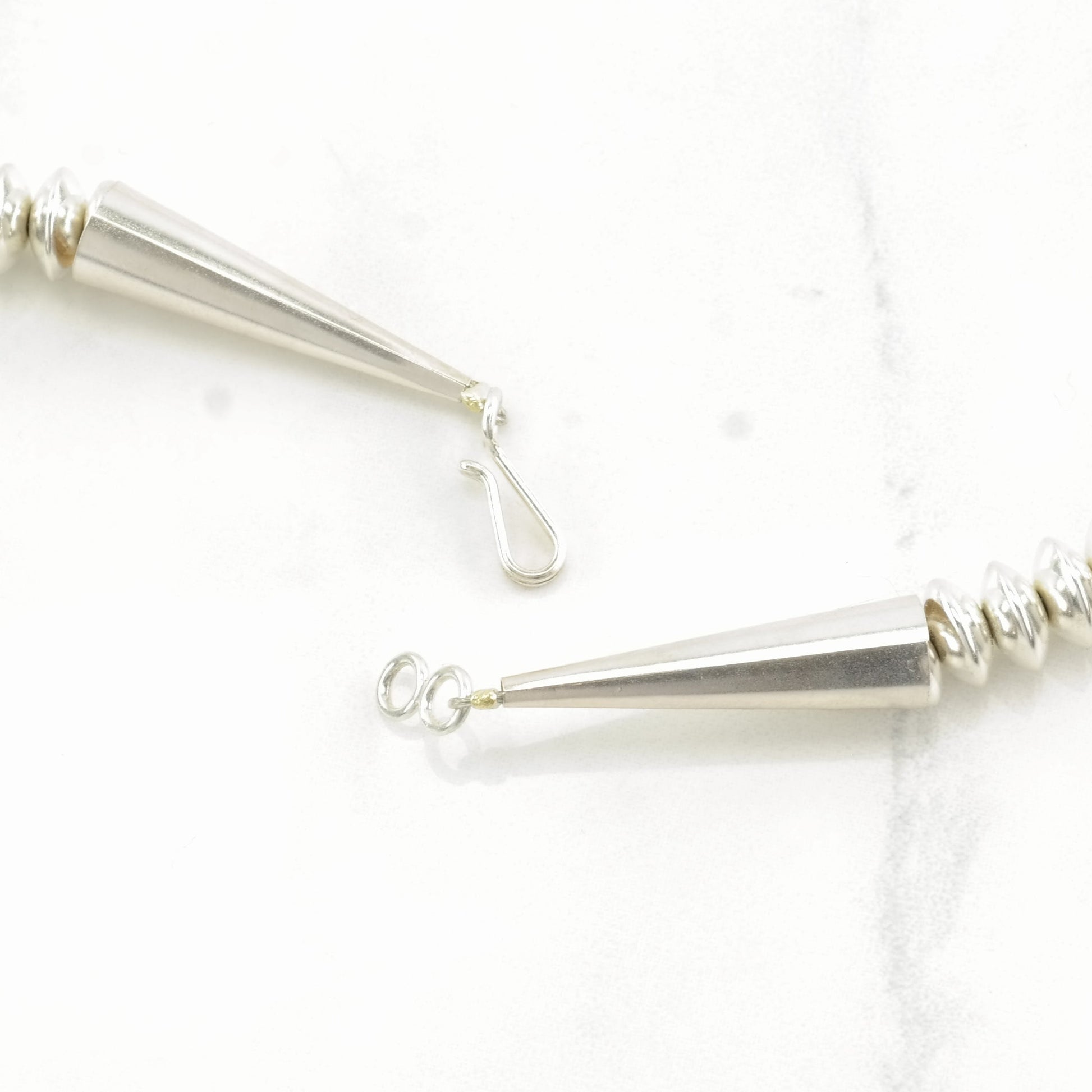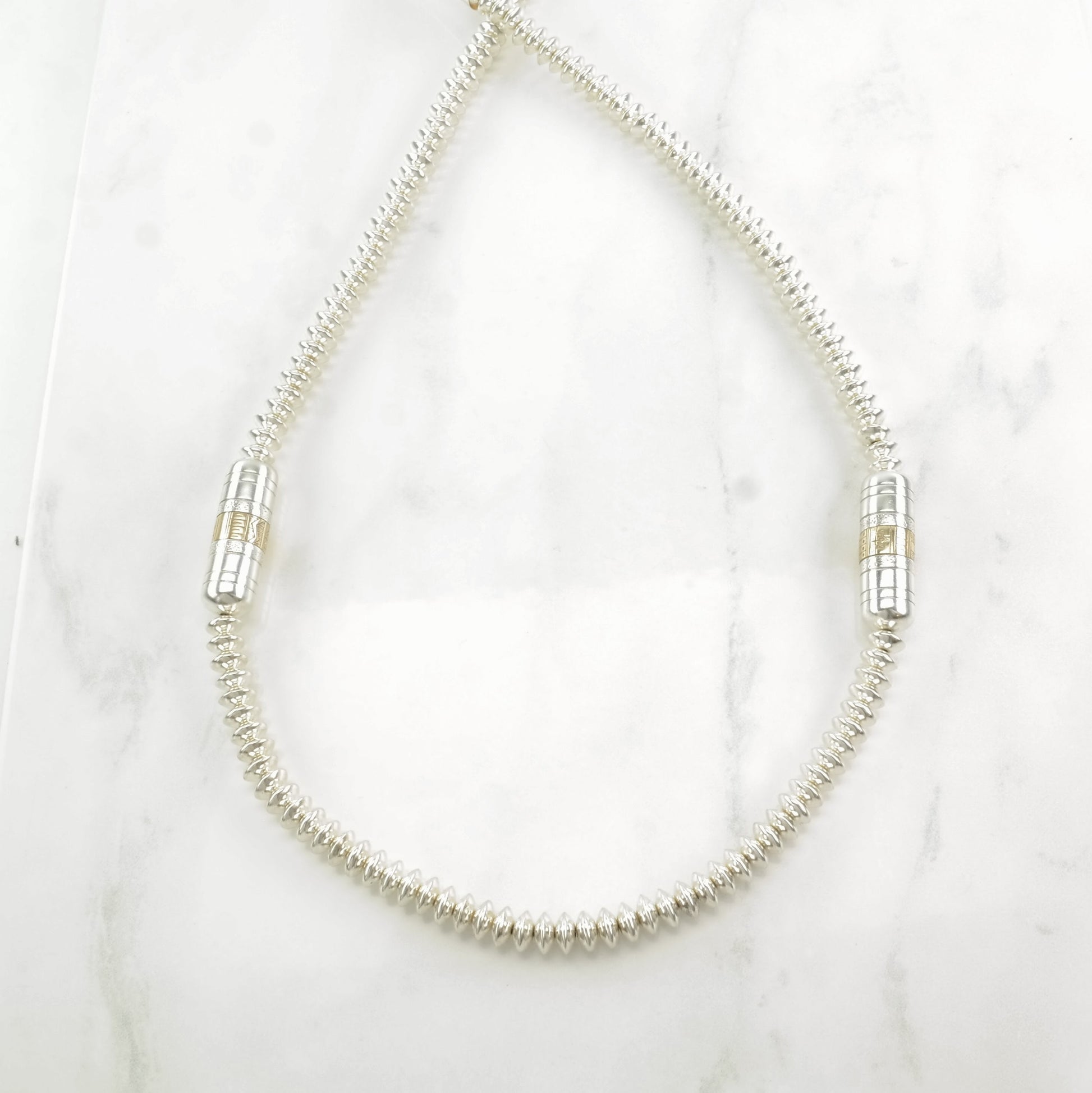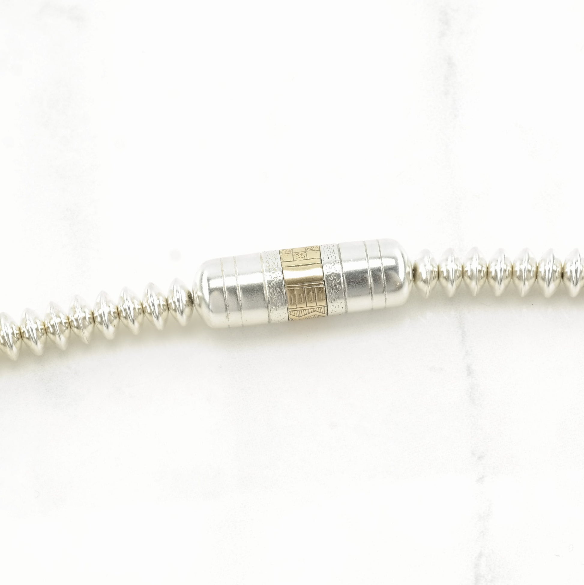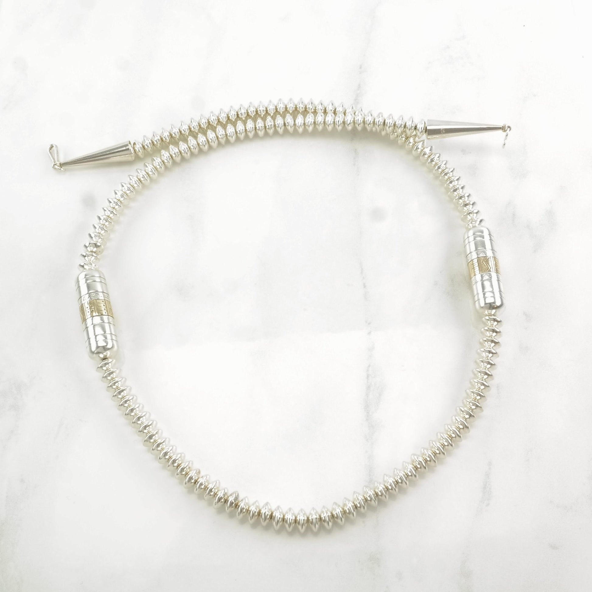 Vintage Native American Sterling Silver Beaded 14k Gold Accents Necklace