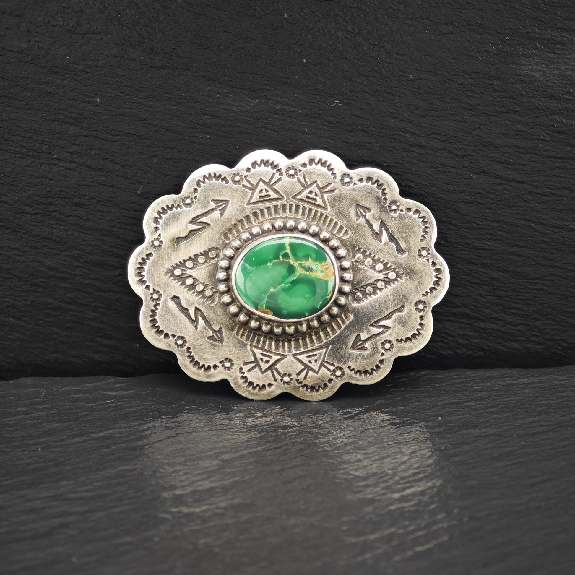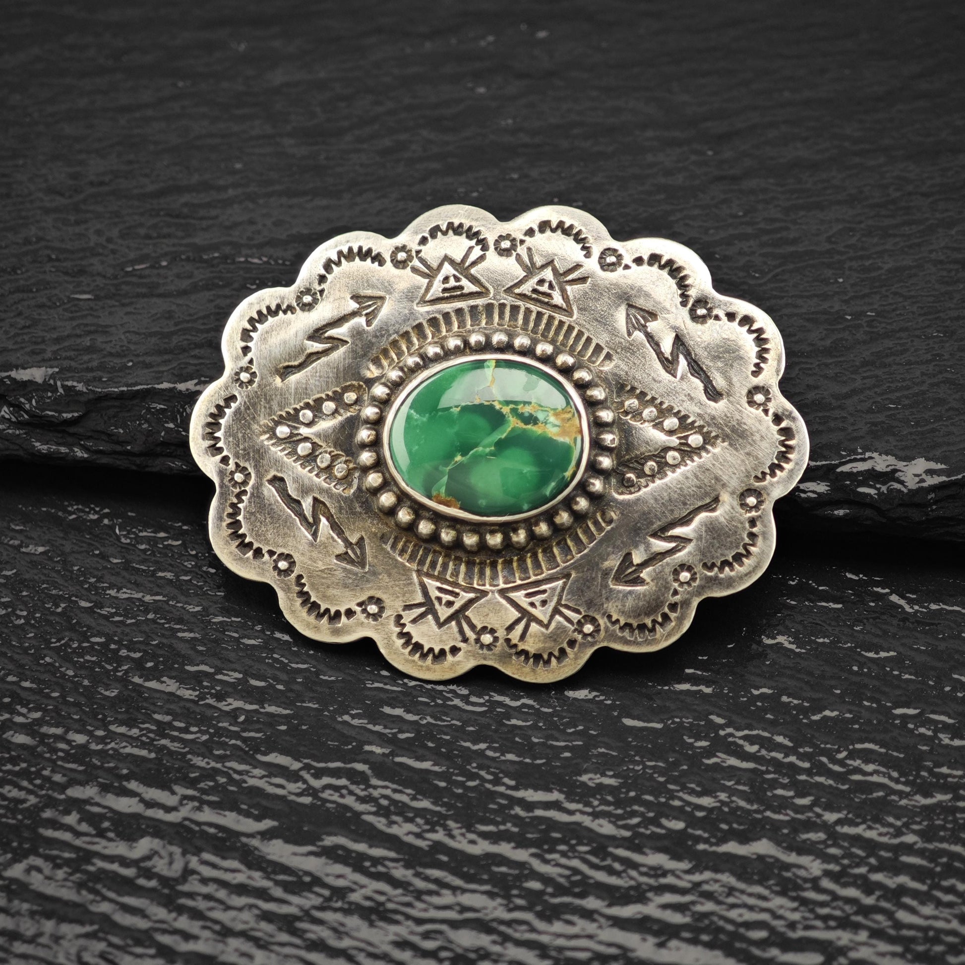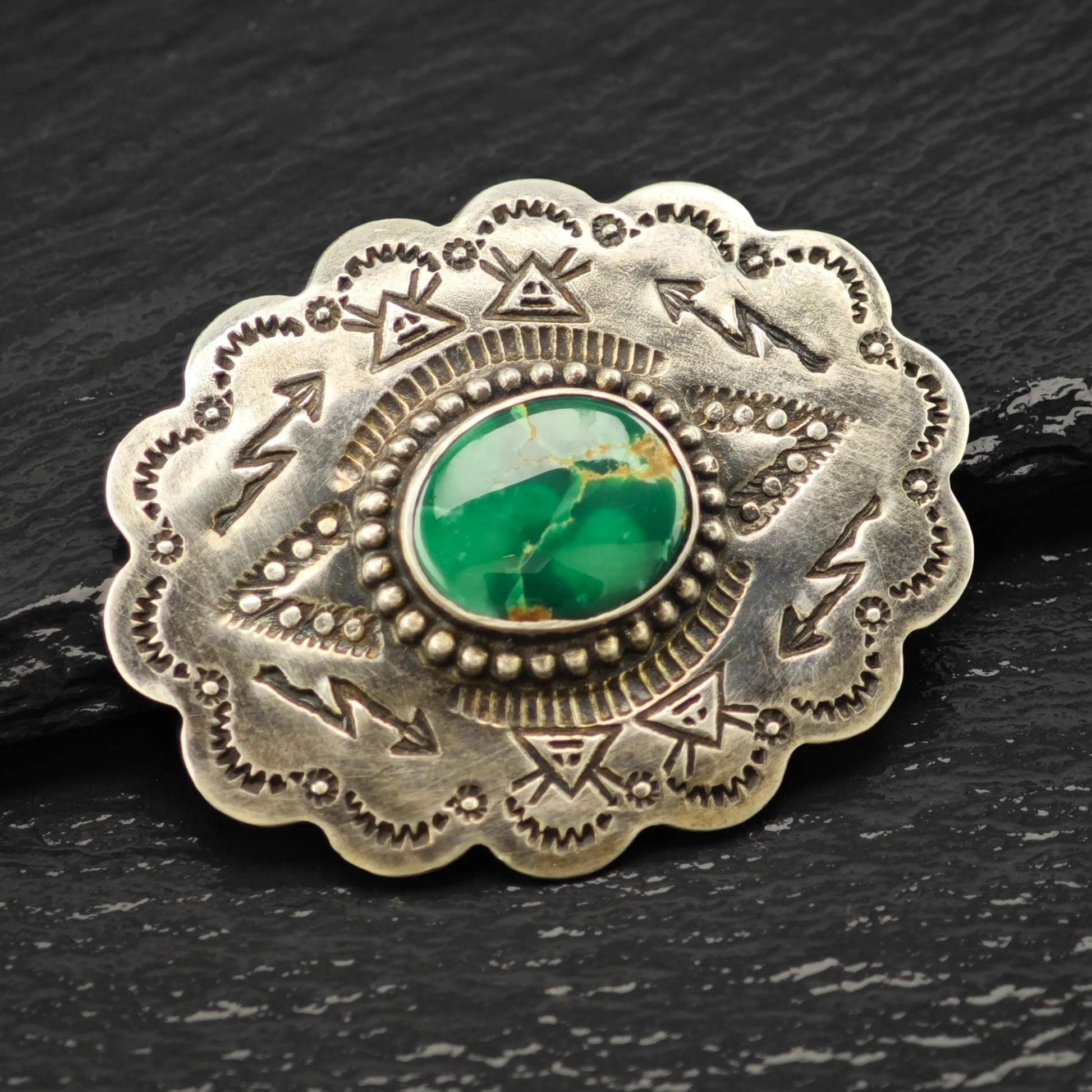 Discover the timeless elegance of this vintage sterling silver brooch, a perfect addition for lovers of silver brooch jewelry. Crafted with care, this piece features a stunning green turquoise stamped design that captures the spirit of Native American artistry. Whether you're searching for a unique vintage brooch or a thoughtful holiday gift, this sterling silver treasure offers both beauty and history.