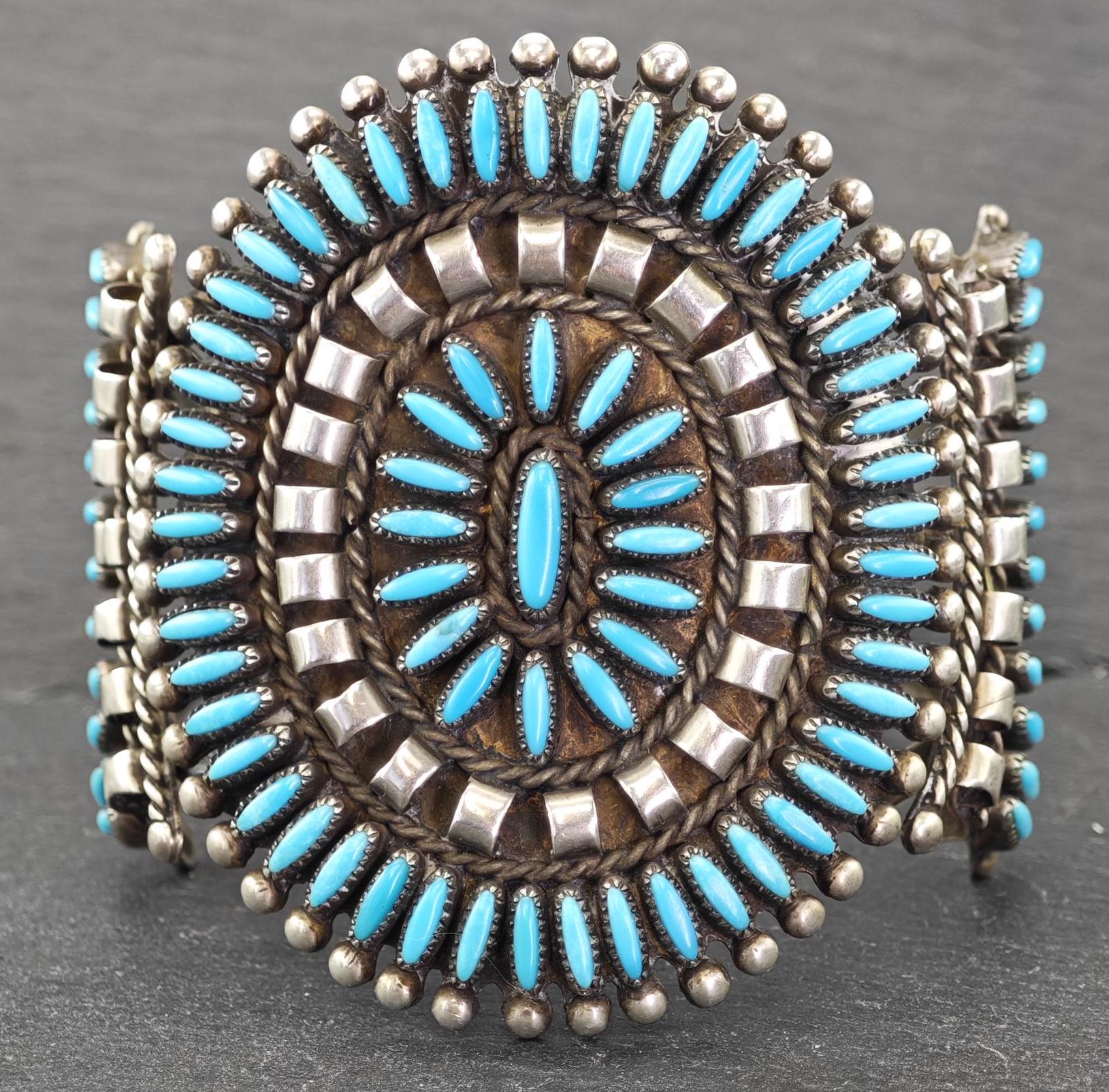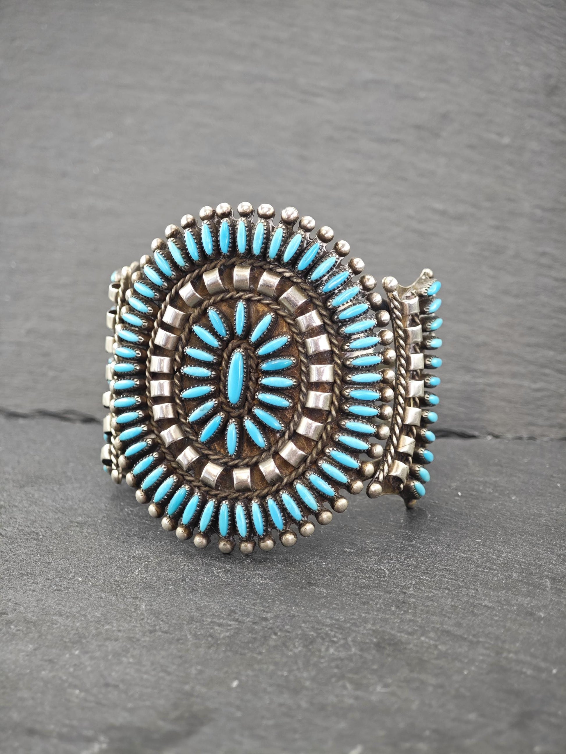 The stones or design is Turquoise Needlepoint Cluster, Natural, industry standard treatment if any