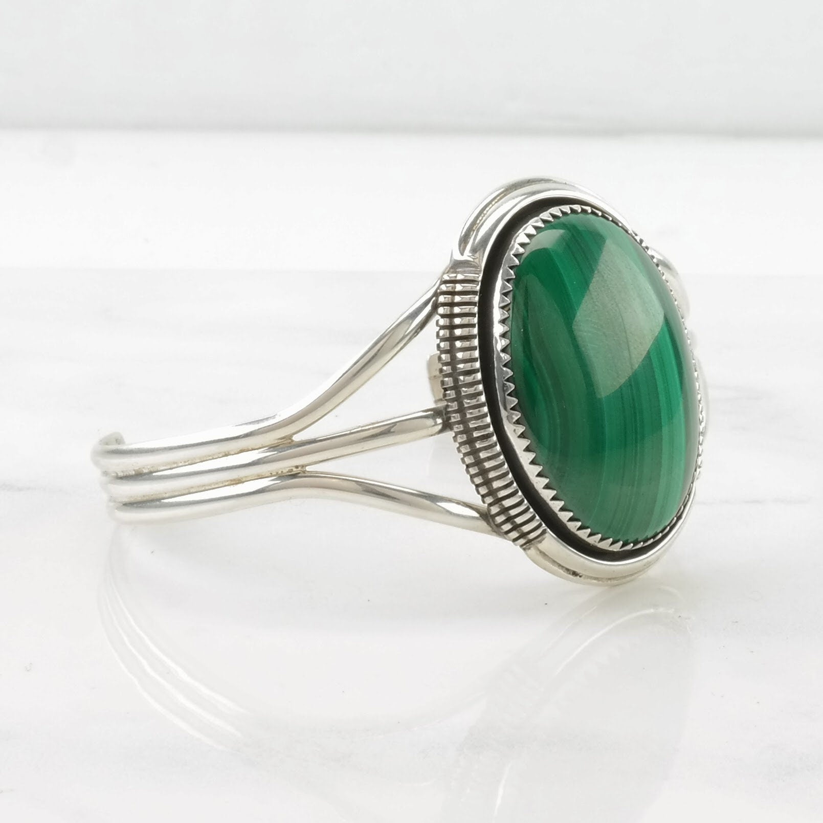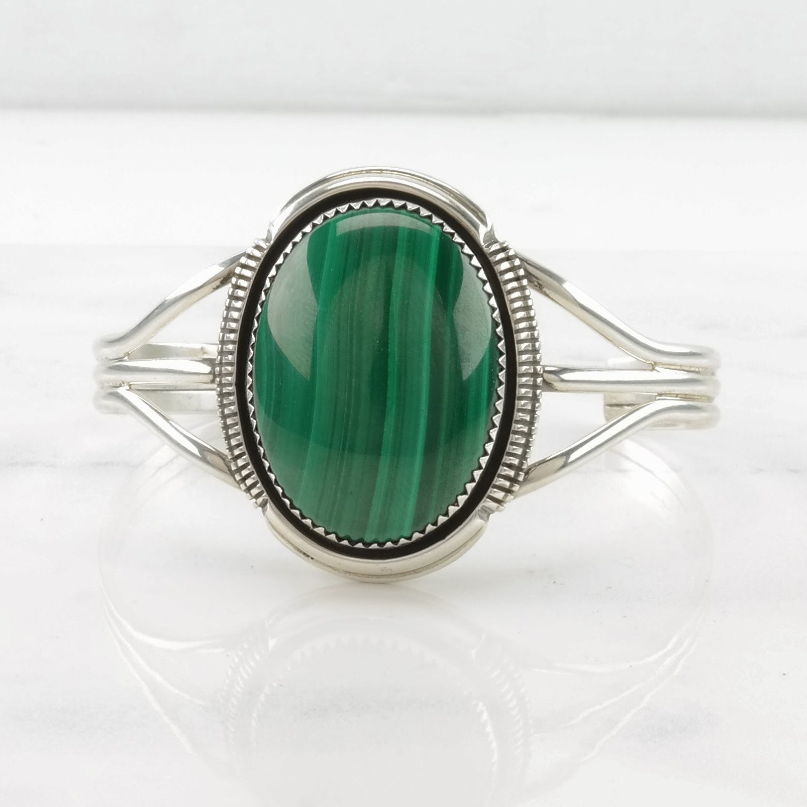 Vintage Native American Sterling Silver Cuff Bracelet Green Malachite