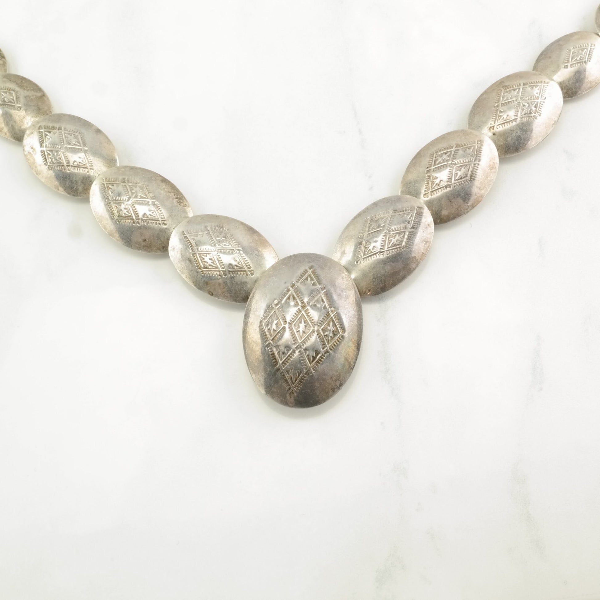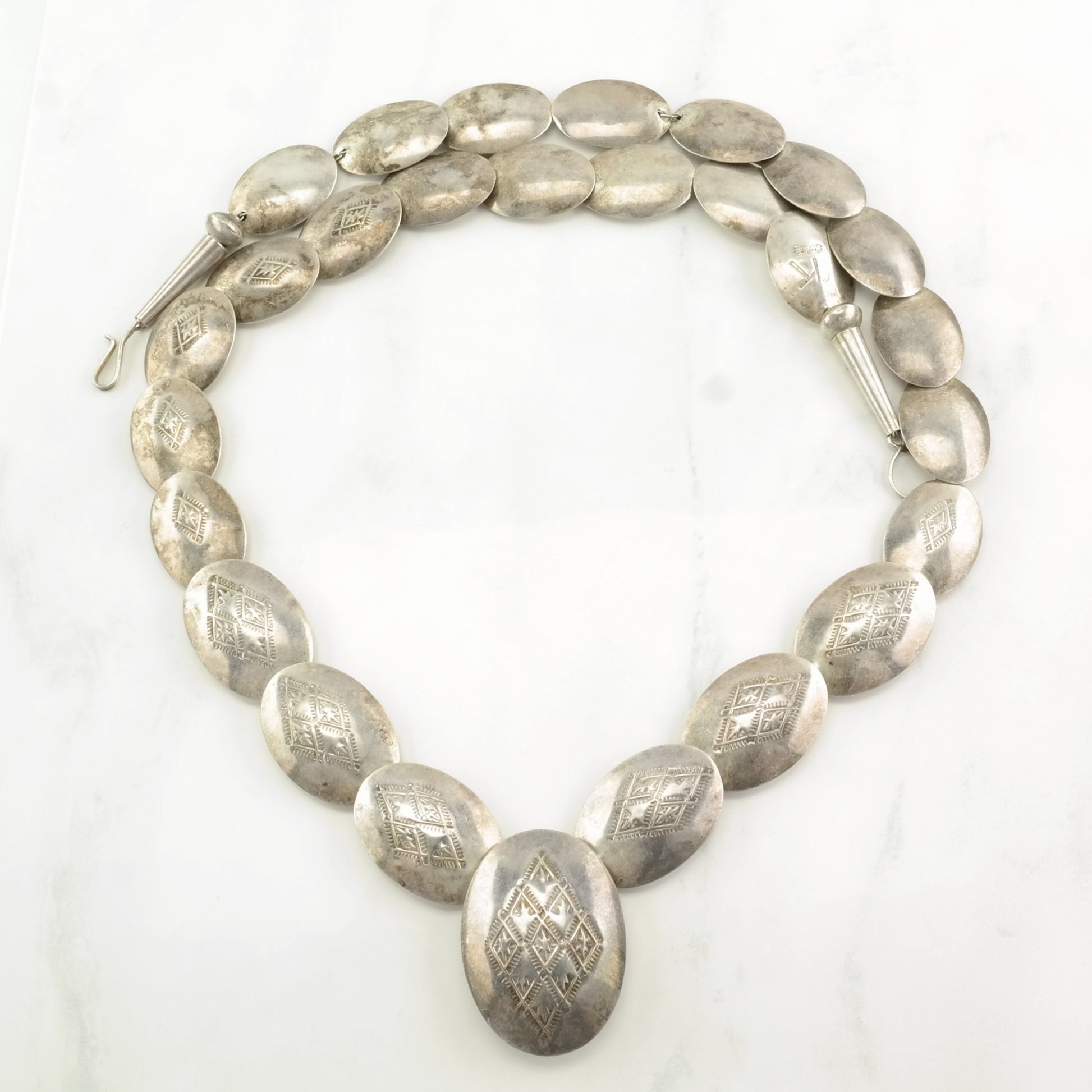 Vintage Native American Sterling Silver Flat Beads Stamped Necklace
