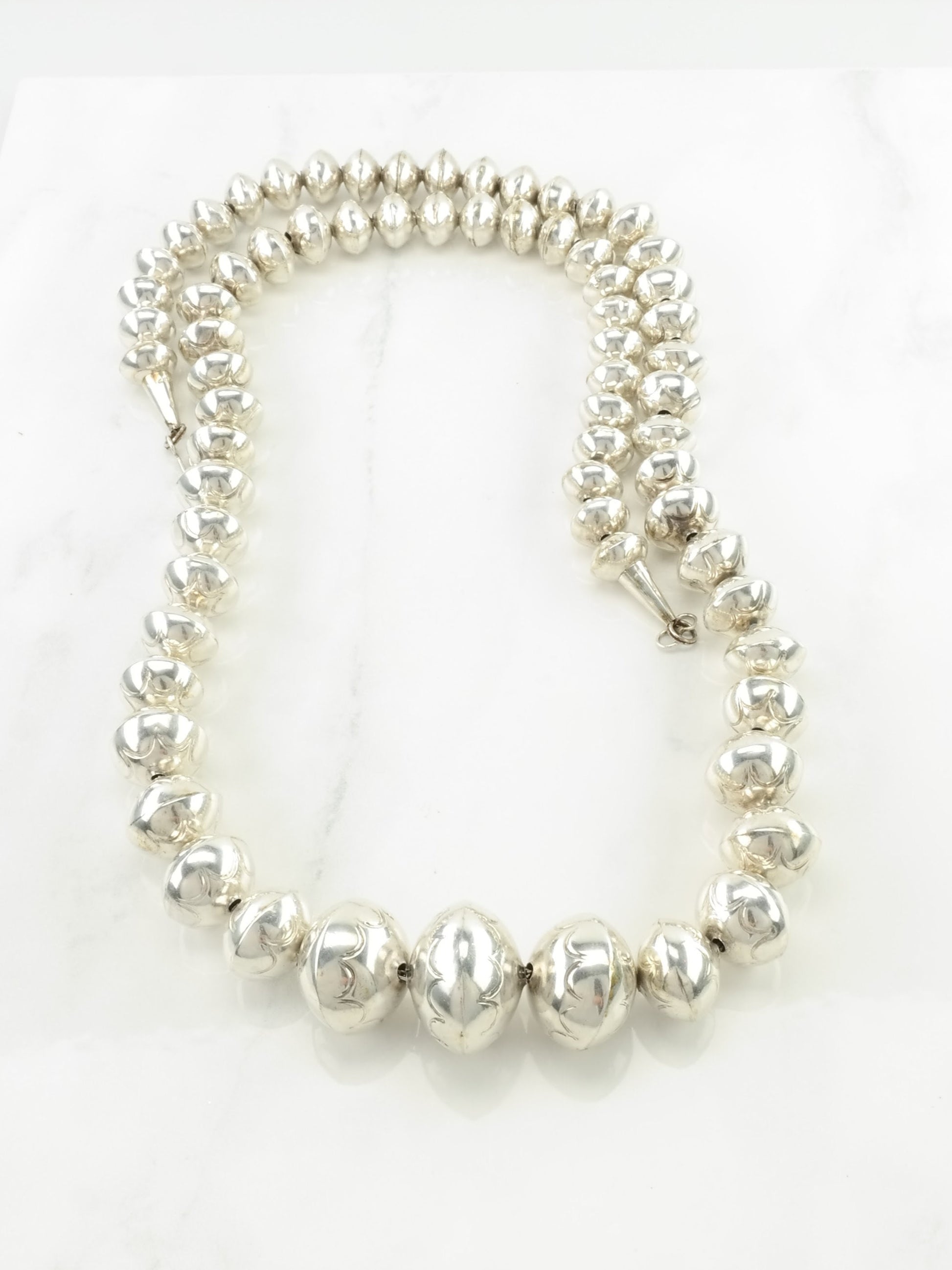 Vintage Native American Sterling Silver Hand Stamped, Navajo Pearls Graduating Bead Necklace