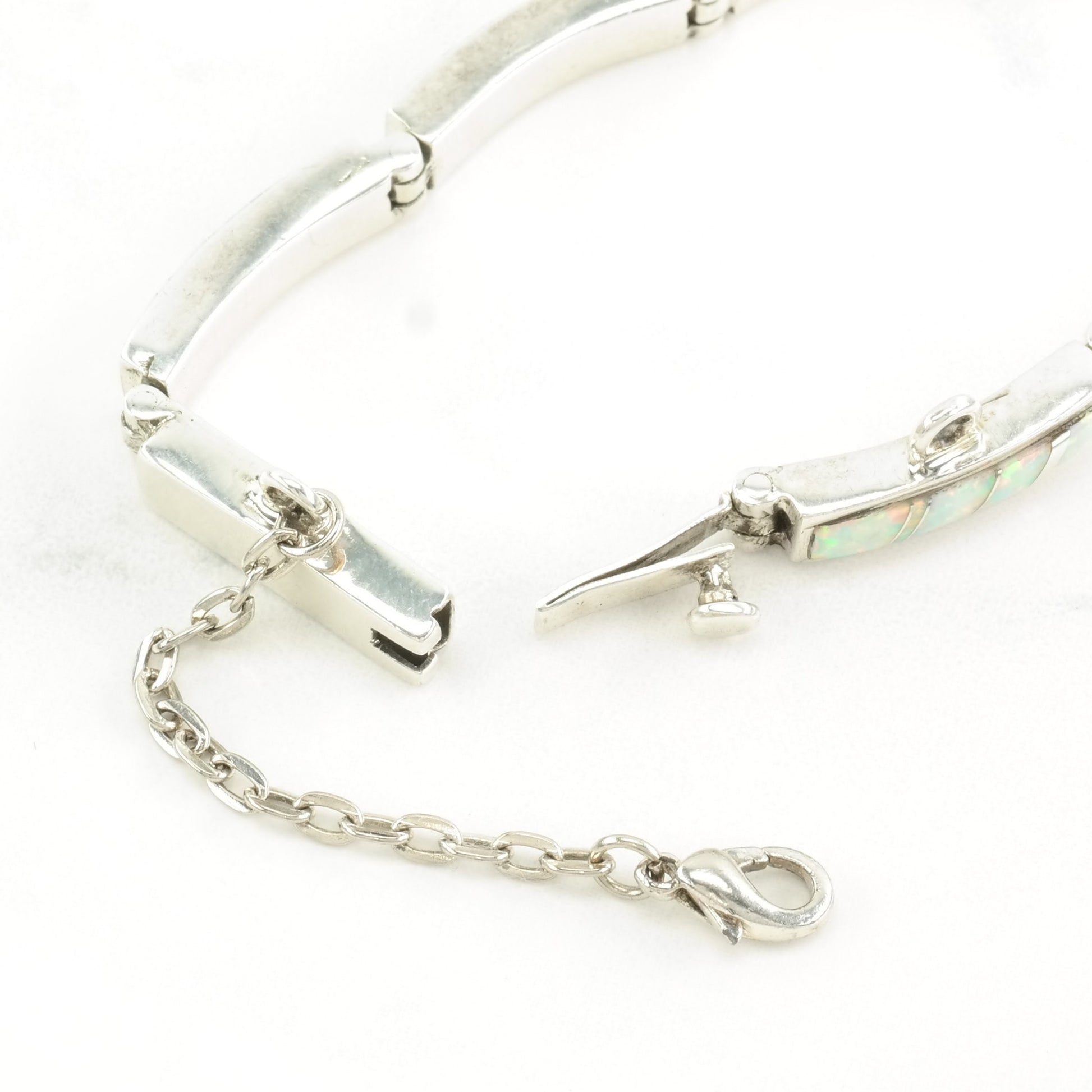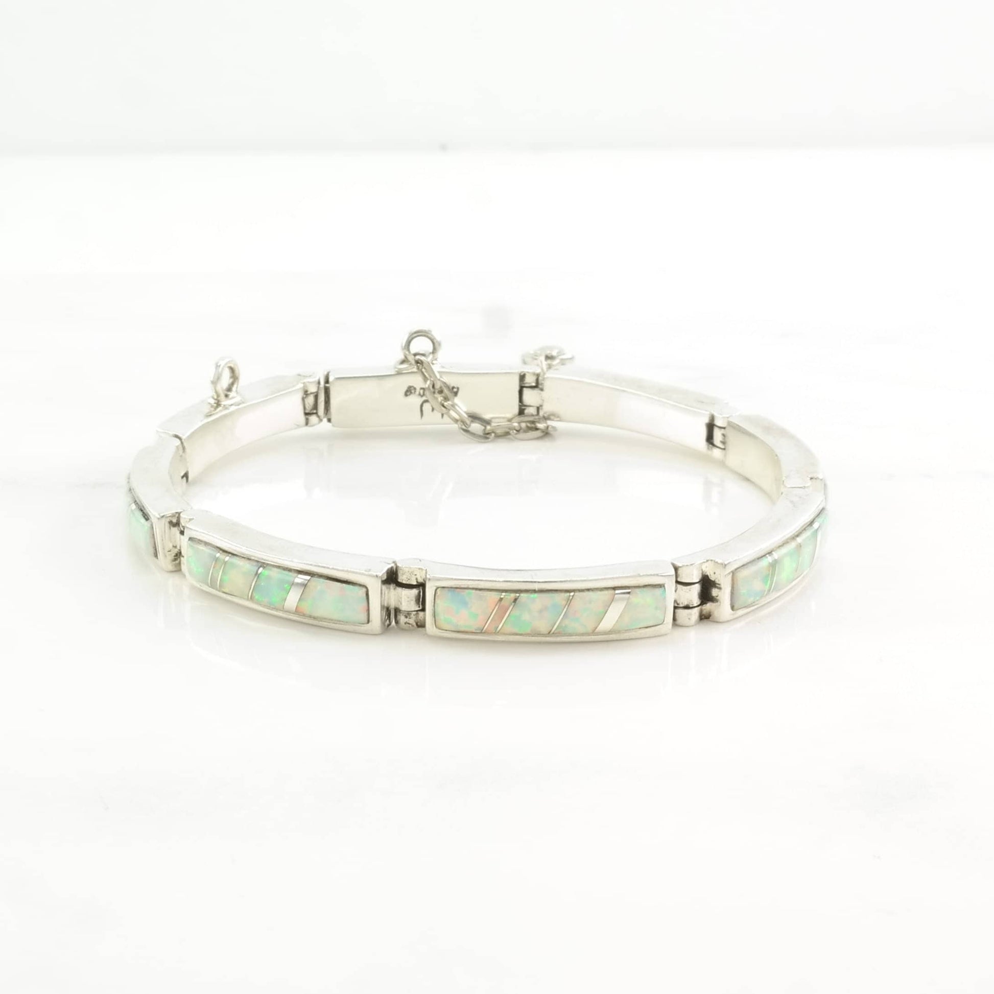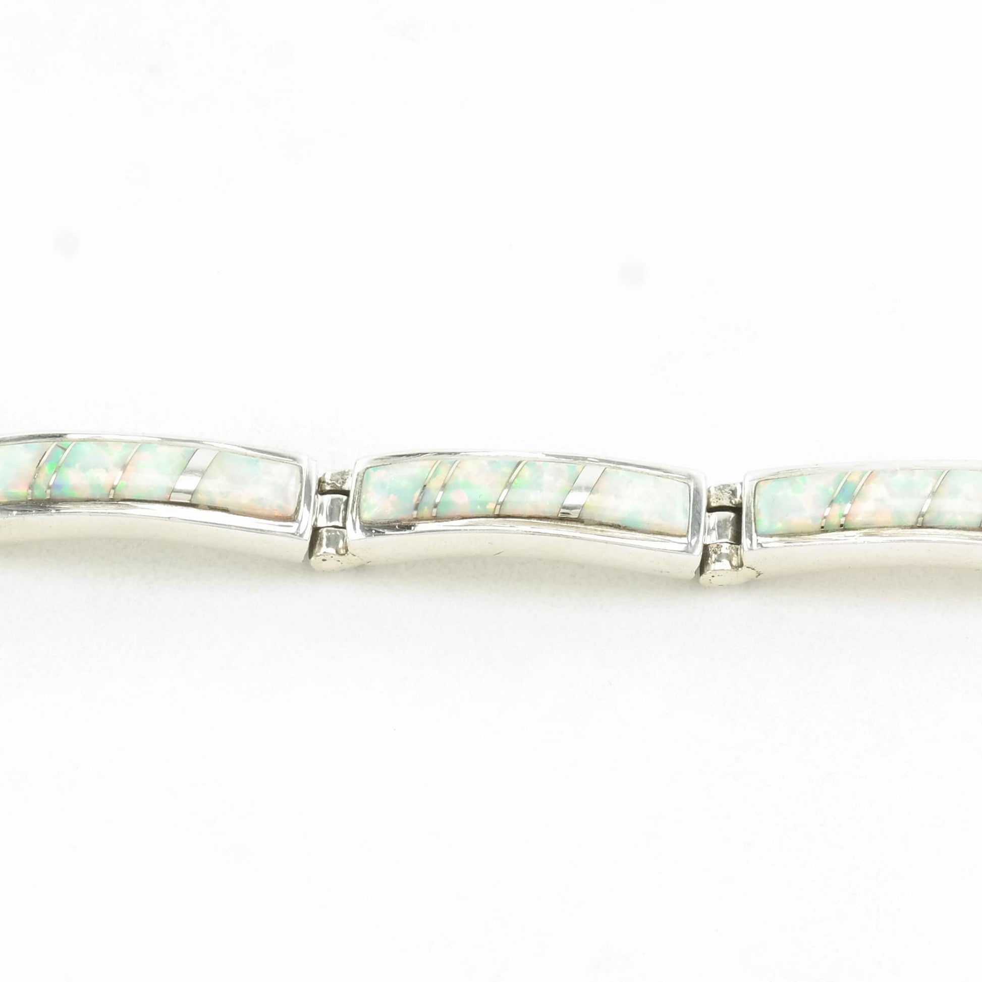 Vintage Native American Sterling Silver Line Bracelet Lab Opal Inlay