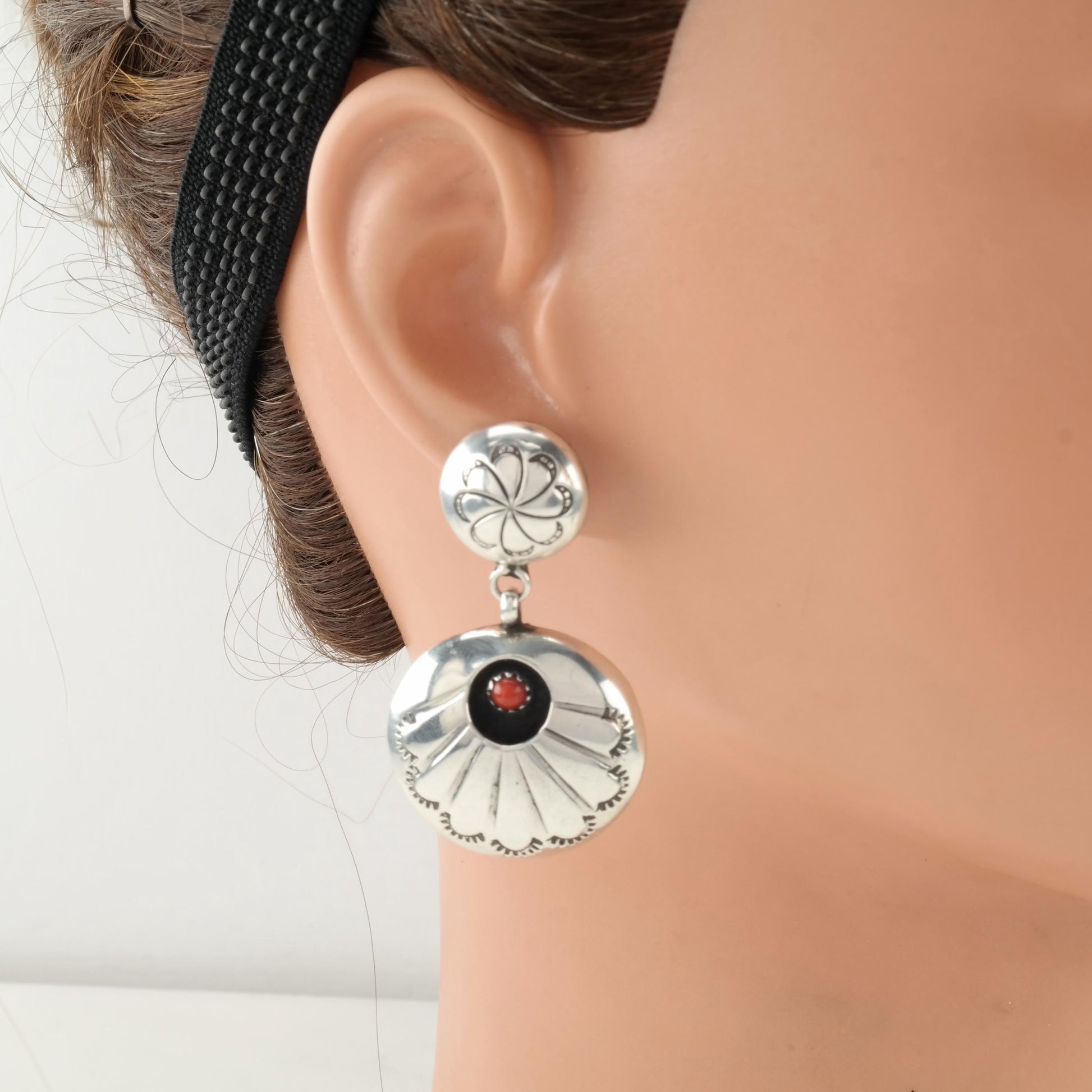 Vintage Native American Sterling Silver Pierced Dangle Earrings