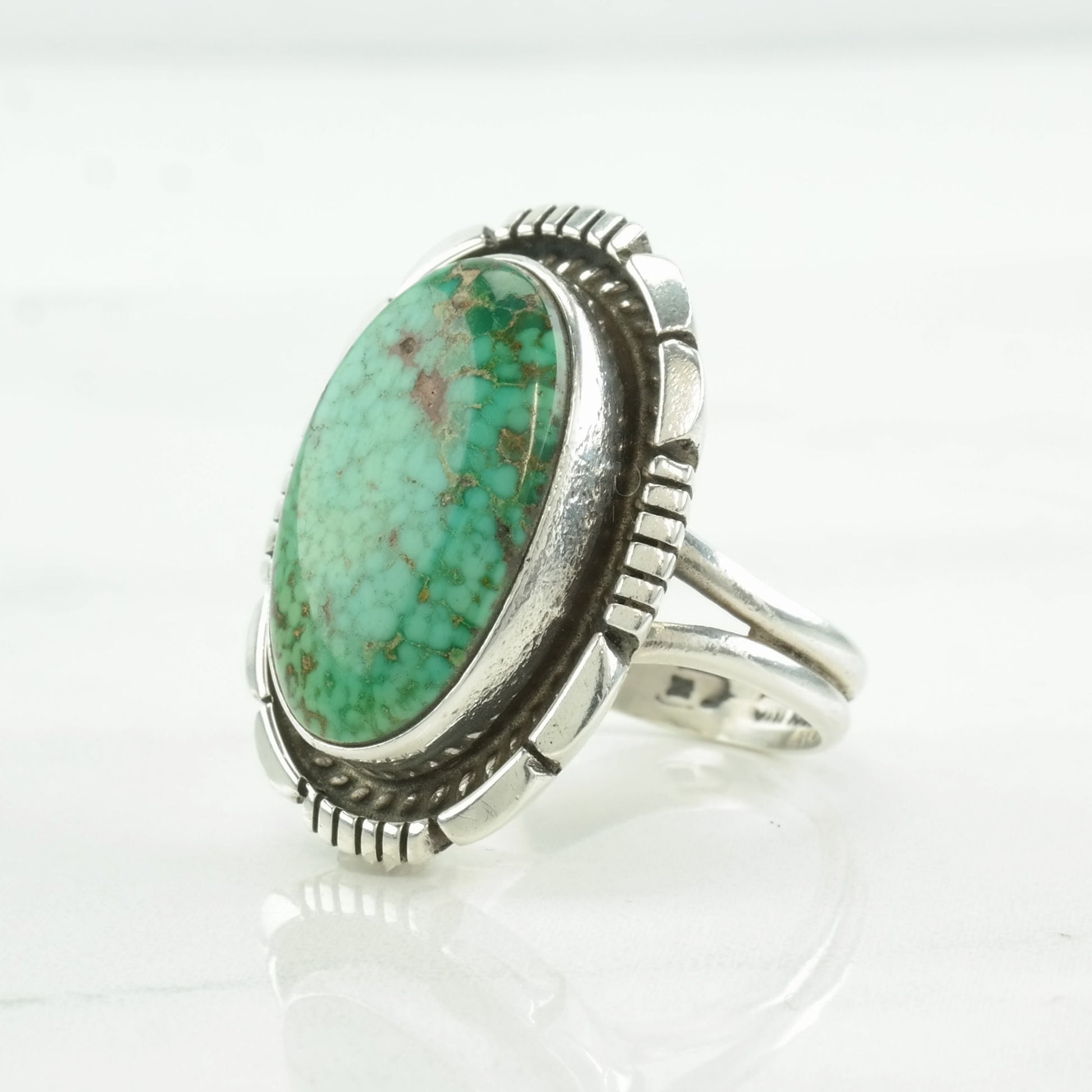 Vintage Native American Sterling Silver Ring with Green Waterweb Turquoise, Size 6 1/2