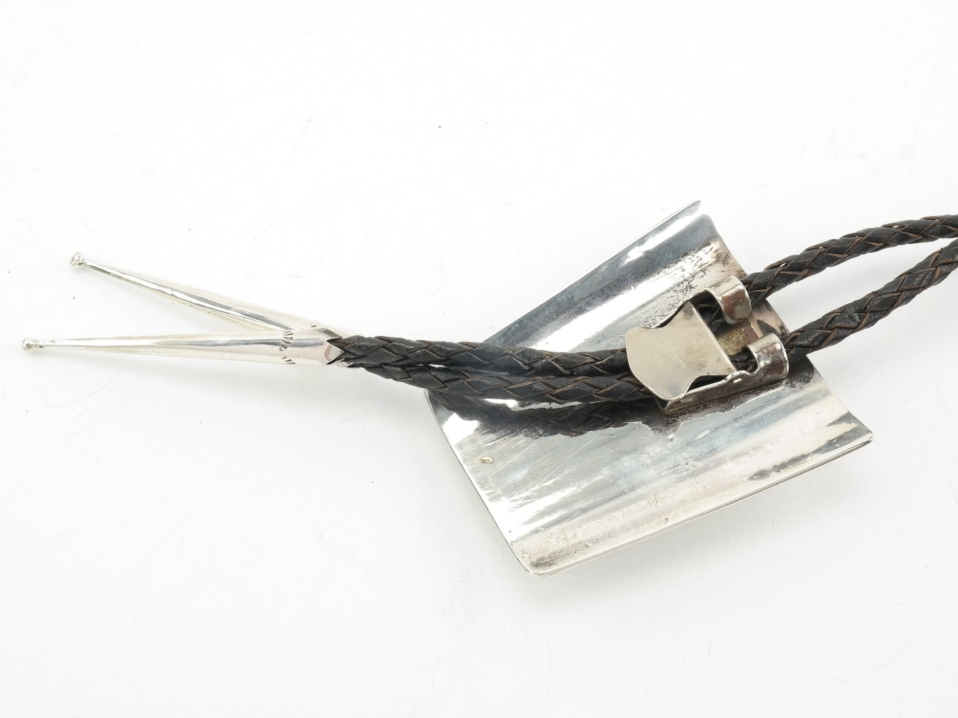 The design of this tie is unique, with a stylish triangular pattern. Made out of sterling silver and turquoise,