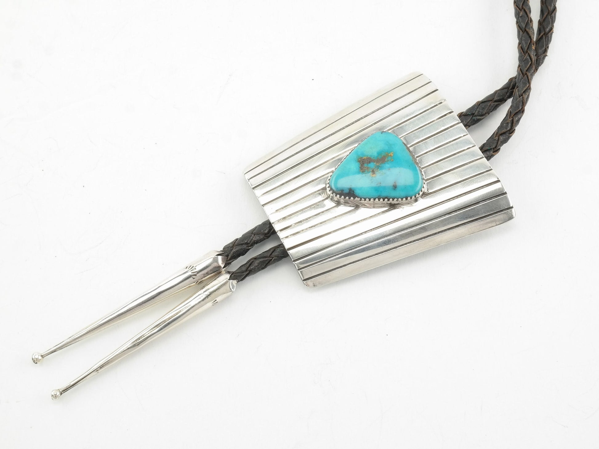 Vintage Native American Sterling Silver Turquoise Blue Gem Bolo Tie